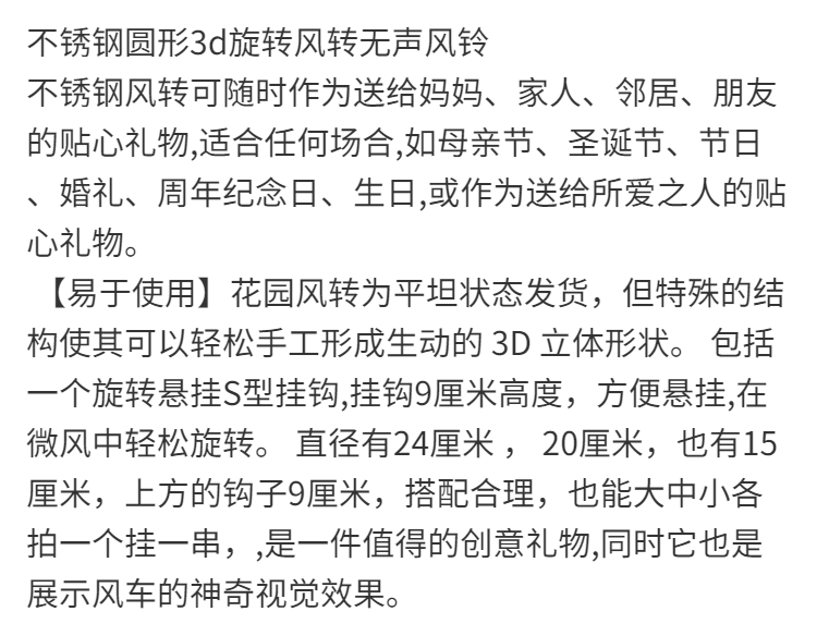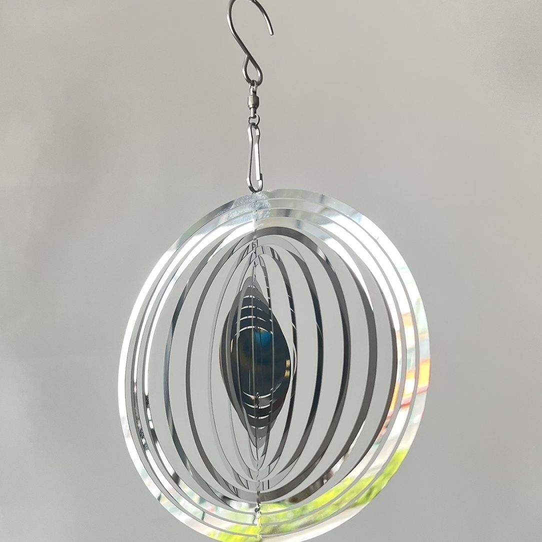 圆形不锈钢风转3d立体风铃家居室内户外阳台花园树木挂饰挂件吊坠