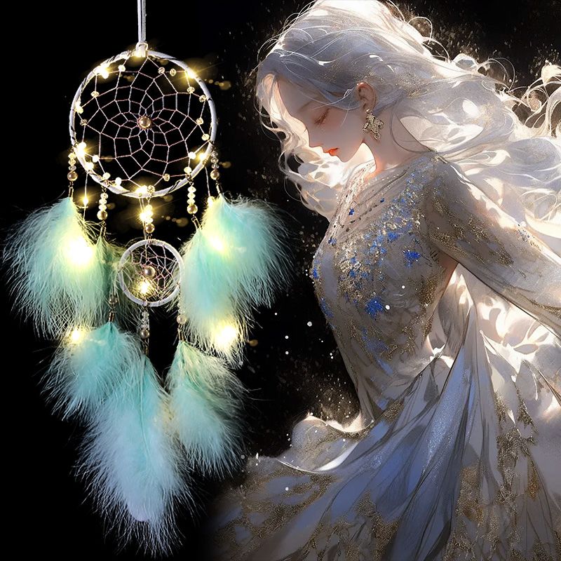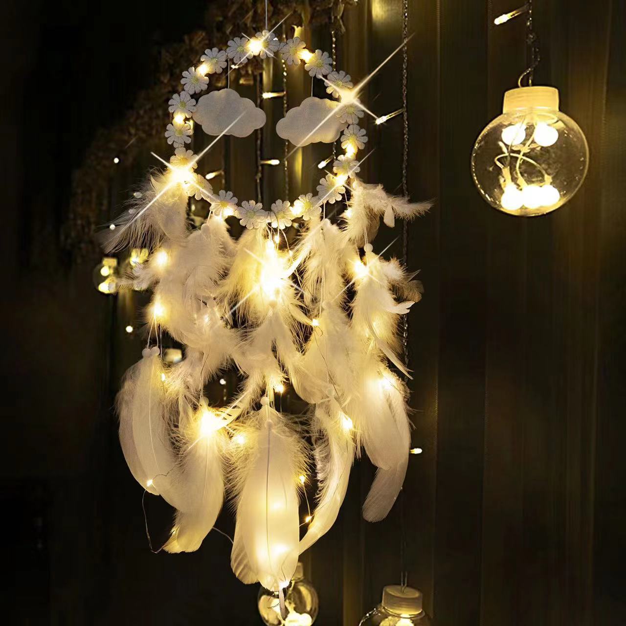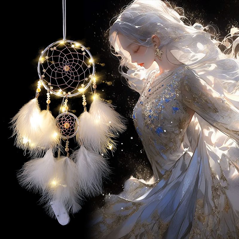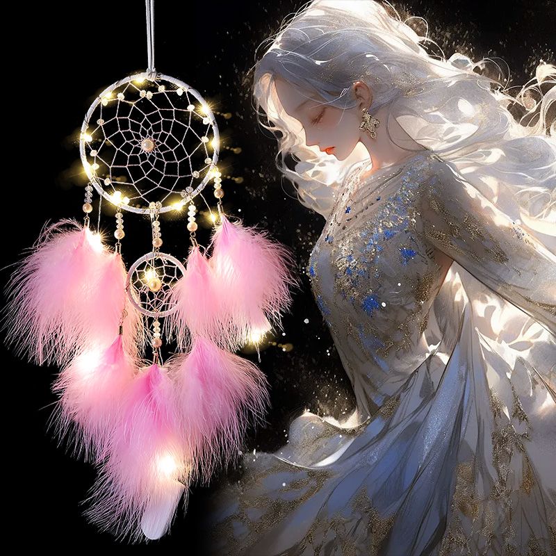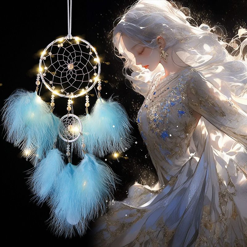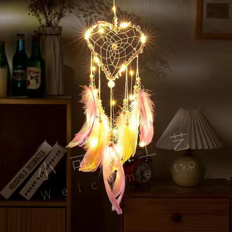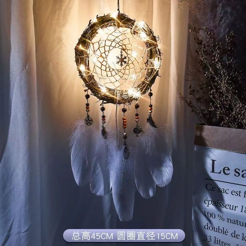 印第安捕梦网吊饰房间挂饰少女心风铃饰品挂件送同学生日礼物带灯