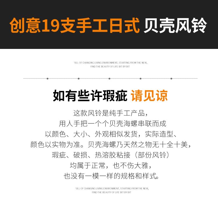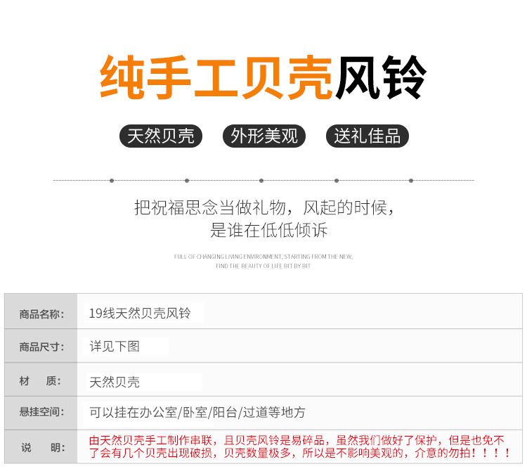 创意19线日式手工贝壳风铃男女生节日礼物卧室阳台装饰品挂件门饰