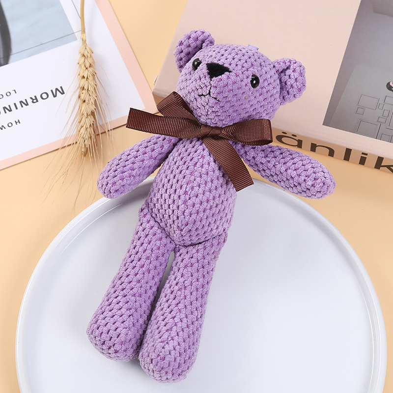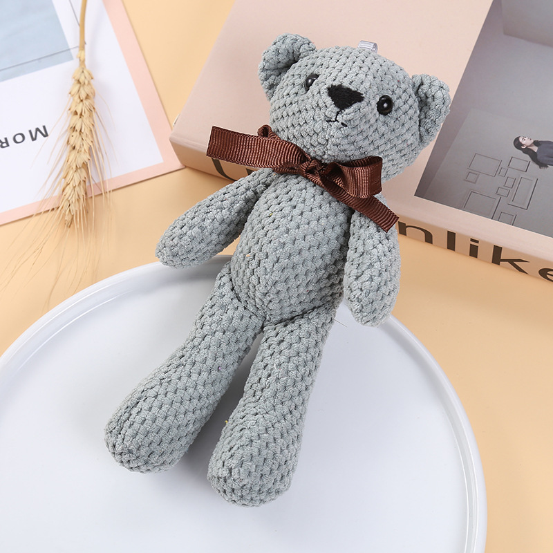 定制大号菠萝格泰迪熊小熊钥匙扣公仔棉布领结长脚熊毛绒挂件批发
