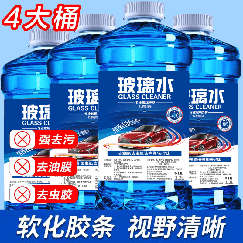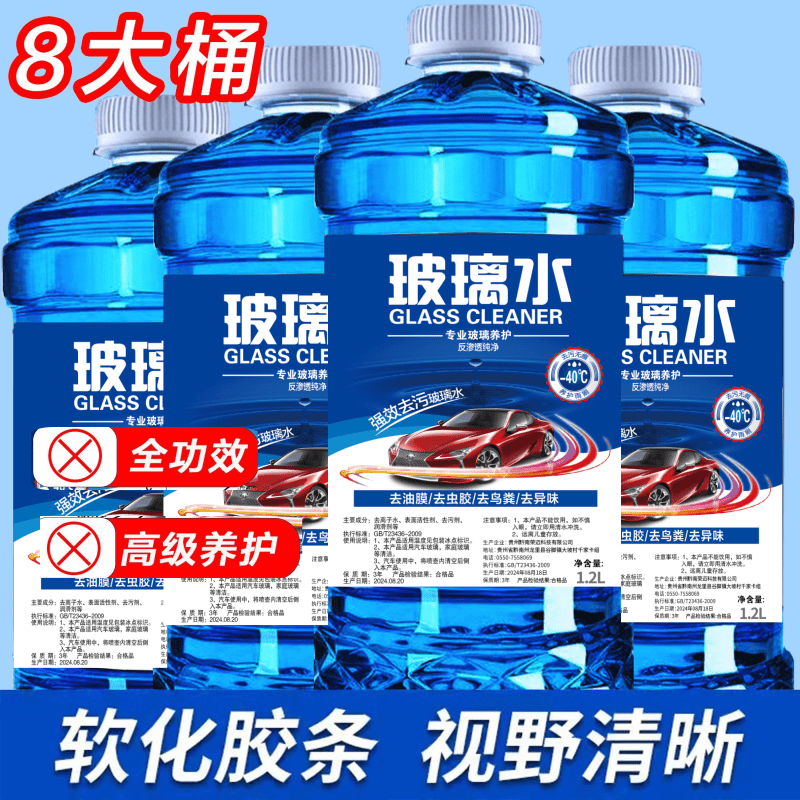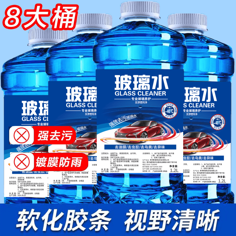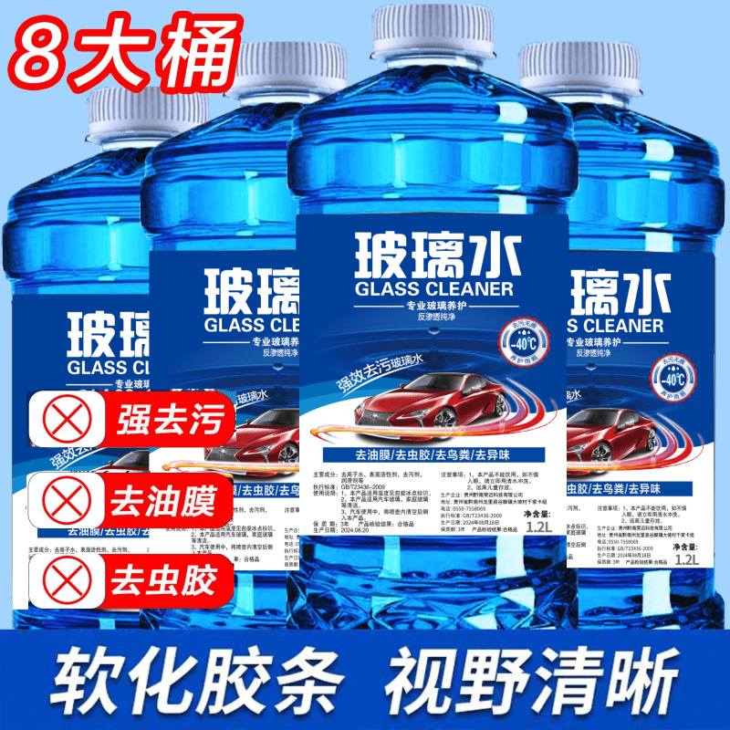 【8大桶】汽车玻璃水四季通用防冻去油膜虫胶镀膜防雨夏季雨刮水