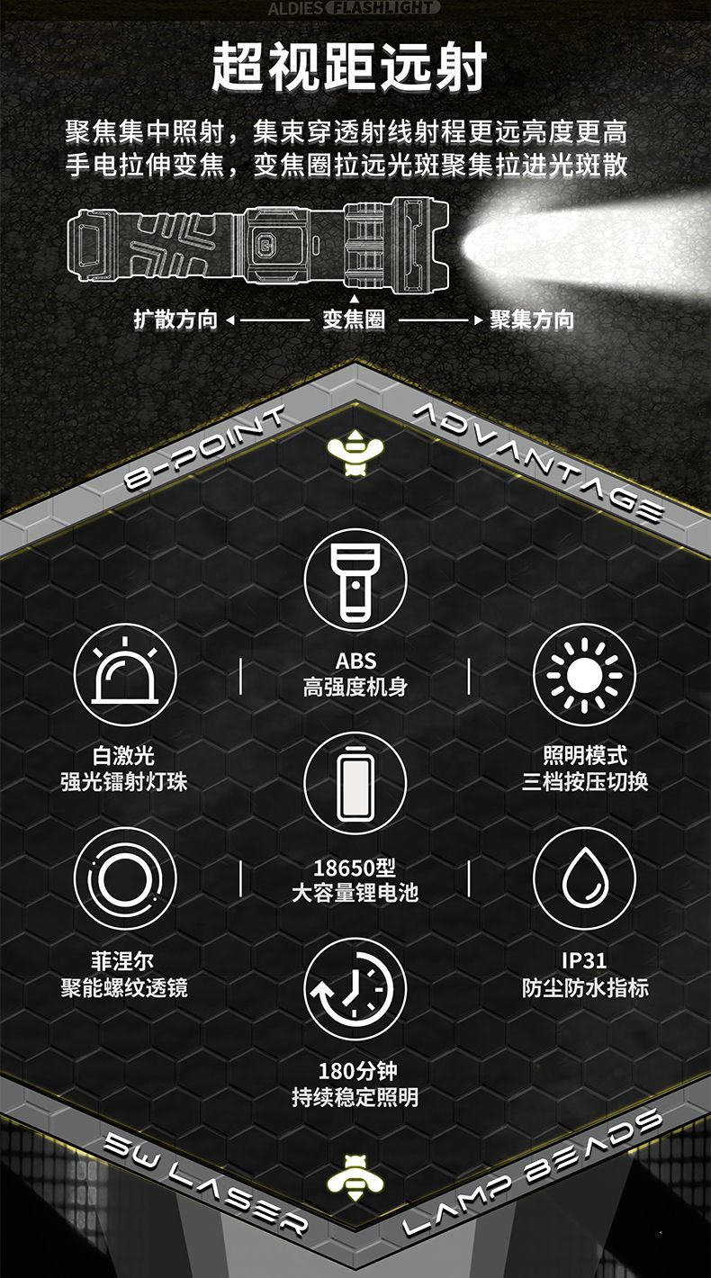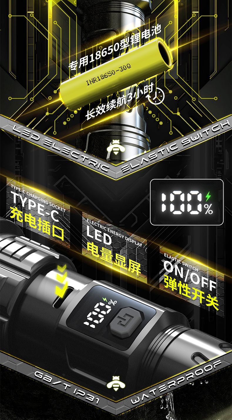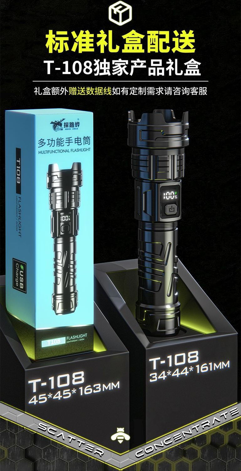 特种兵手电筒强光可充电超亮户外应急照明灯激光灯续航超长led灯