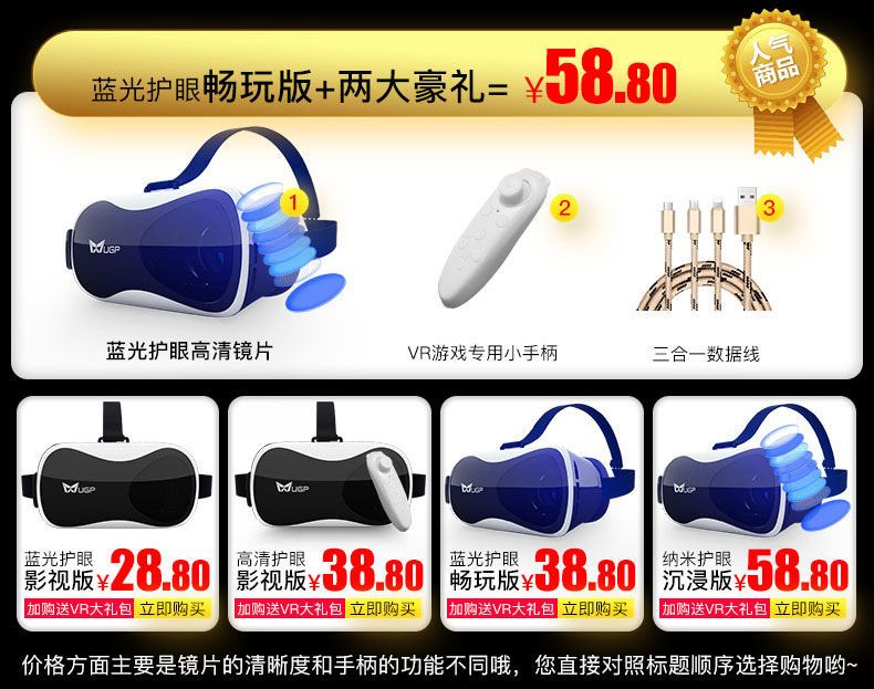 UGP一体机VR眼镜4k玩游戏机虚拟现实3d头戴式vip影院