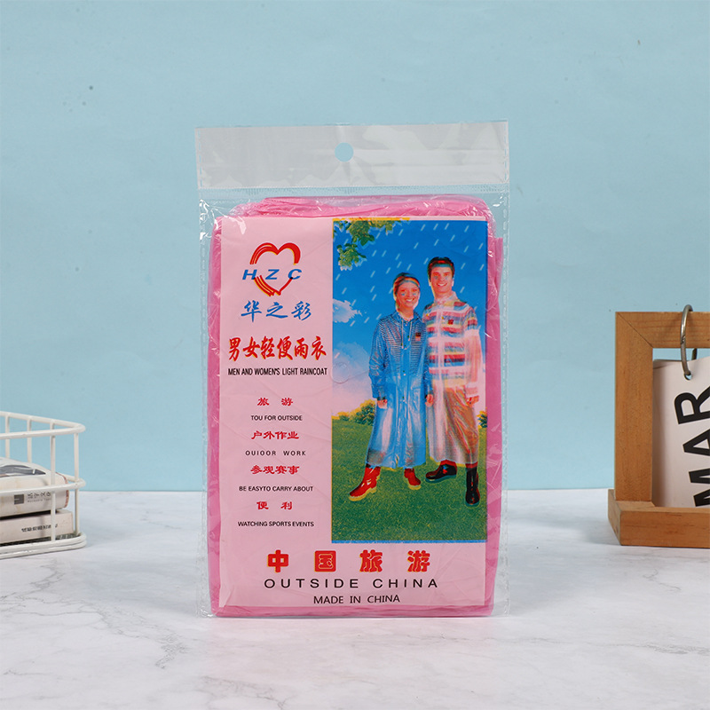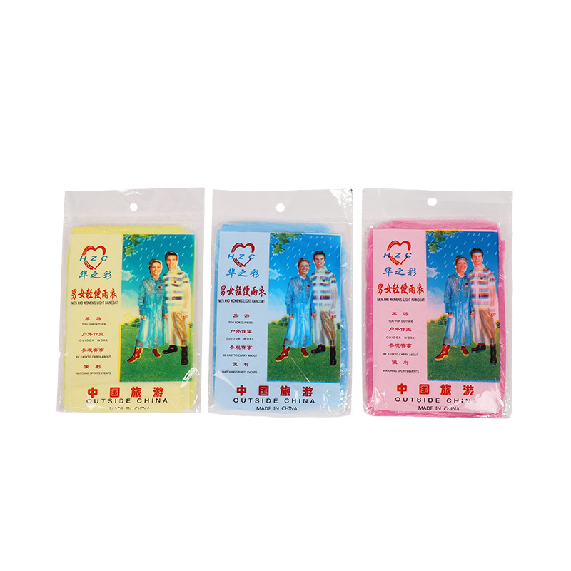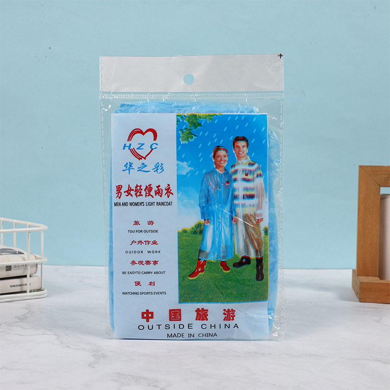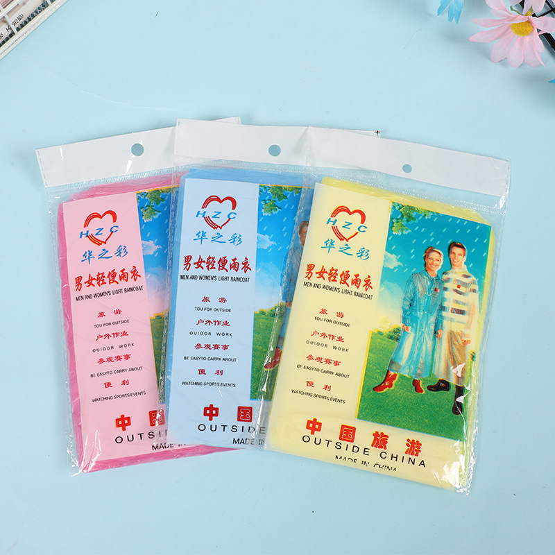 工厂现货华彩雨衣 便携式轻便户外旅游雨衣 PE成人雨披一次性雨衣
