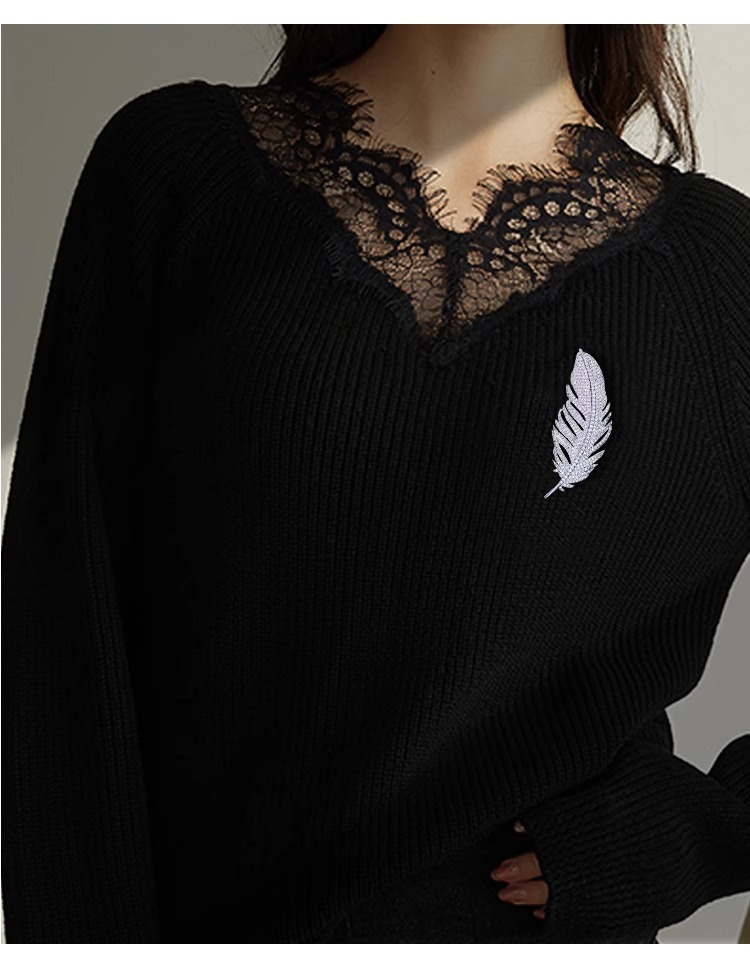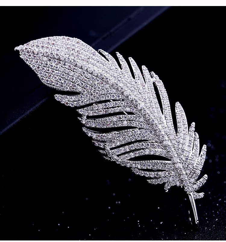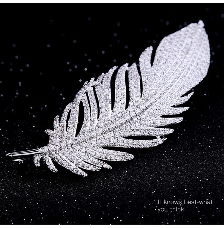 精致满钻经典羽毛胸针女高档气质时尚优雅胸花高档西服配饰别针扣