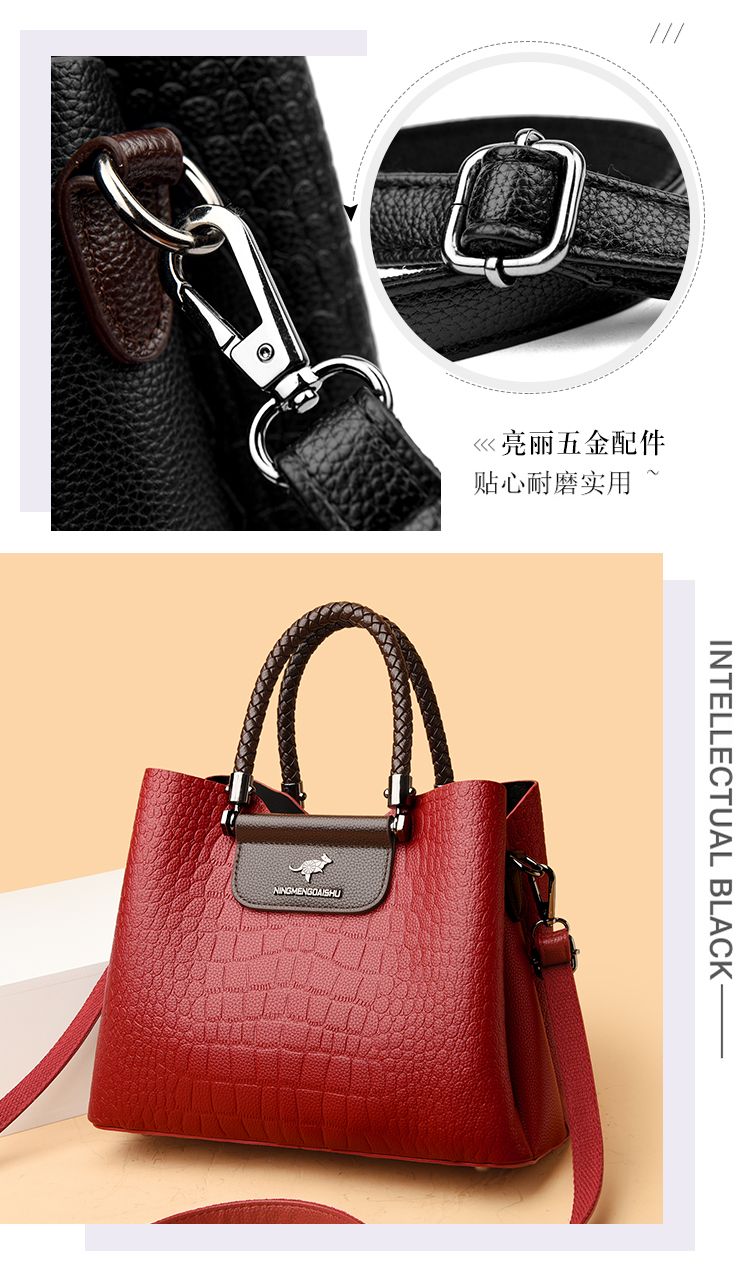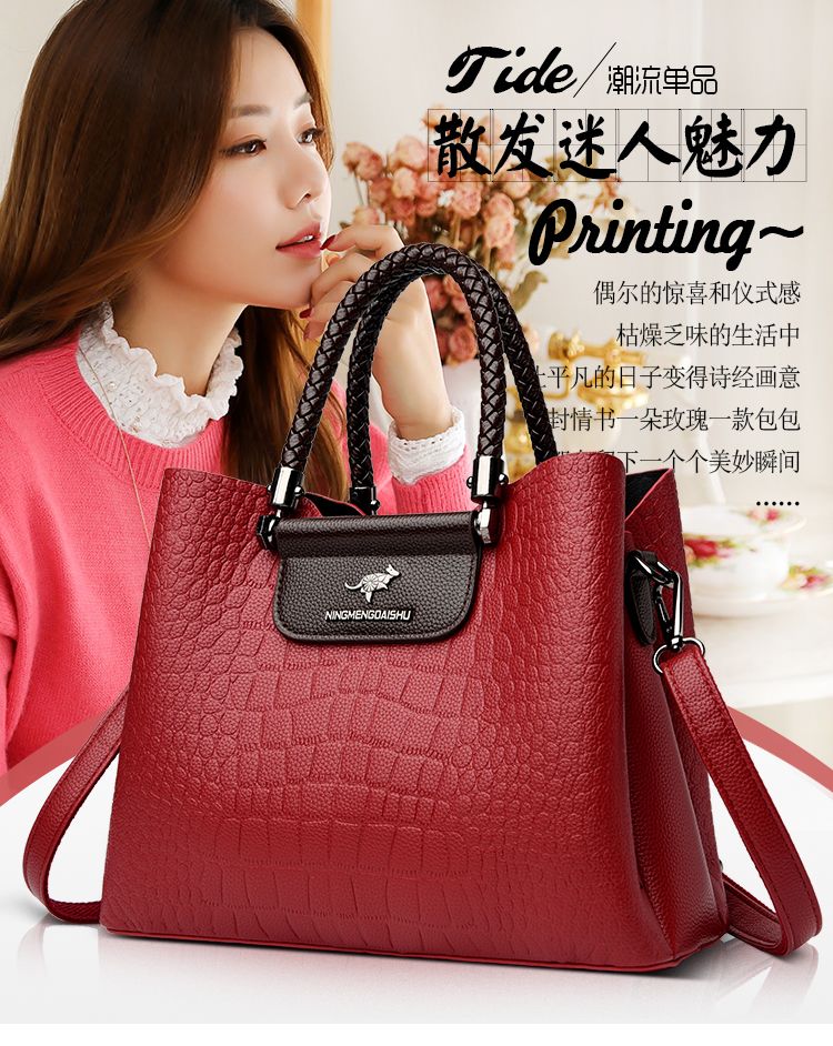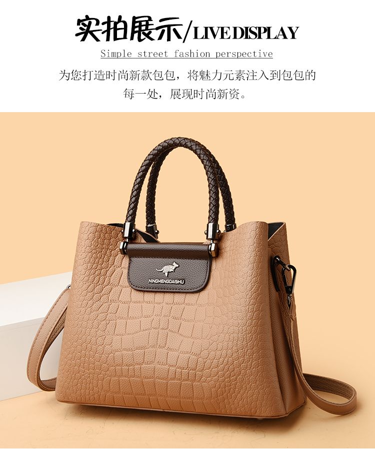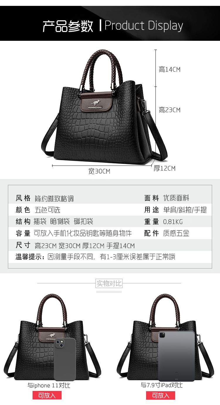 正品真皮手提包2023新款高级时尚中年女士妈妈大容量三层手提包包
