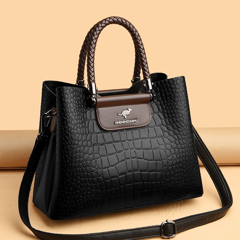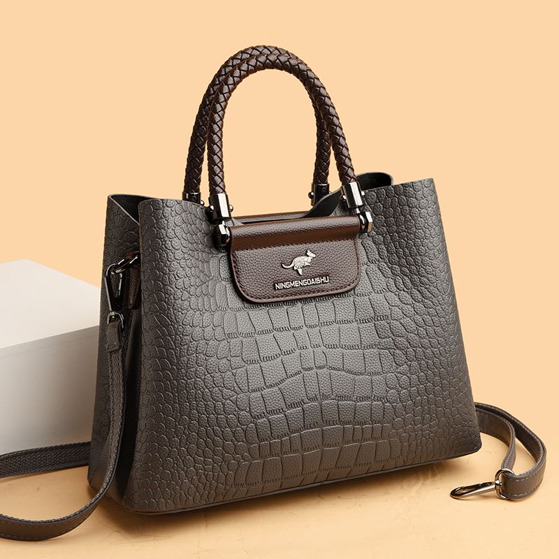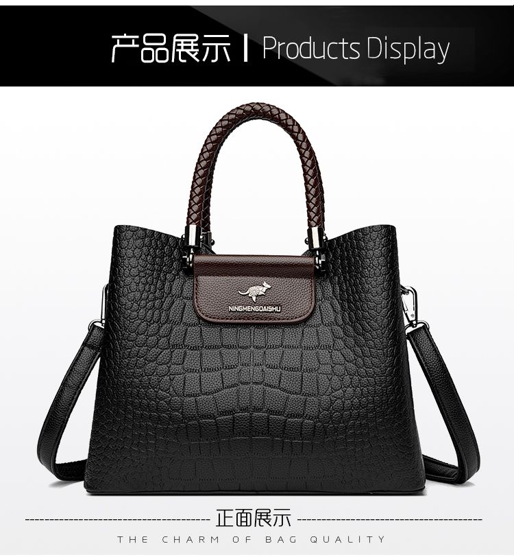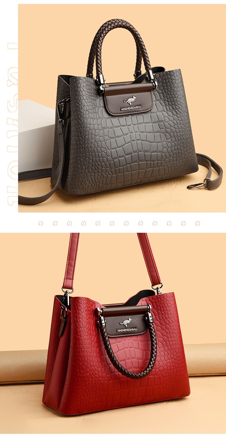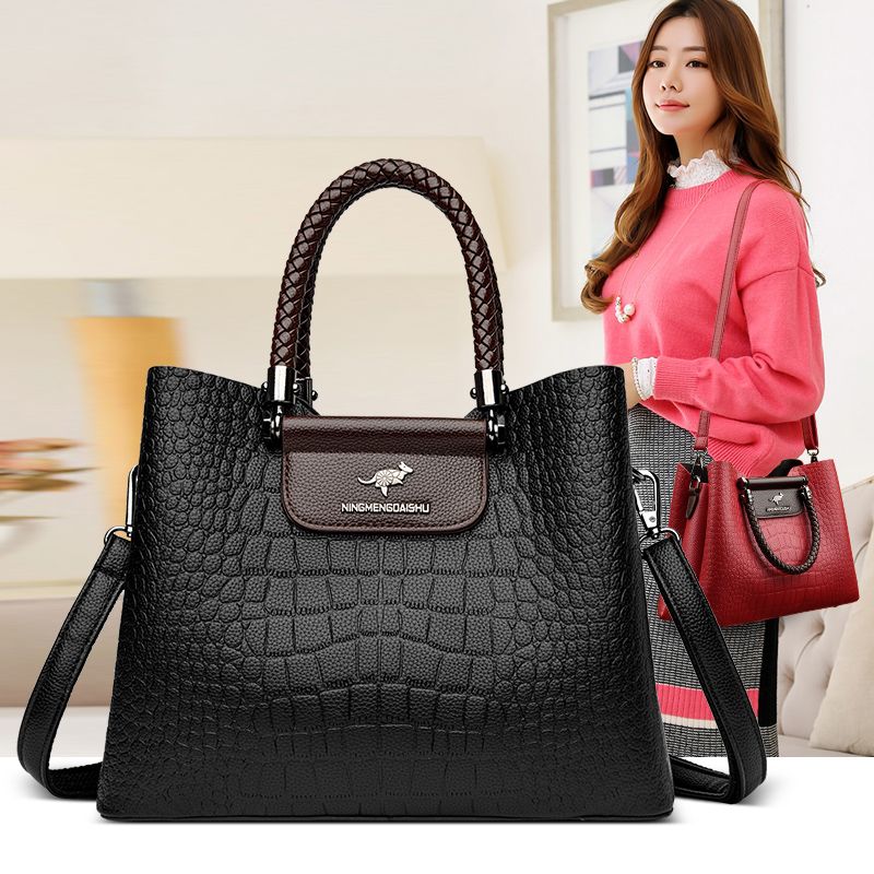 正品真皮手提包2023新款高级时尚中年女士妈妈大容量三层手提包包
