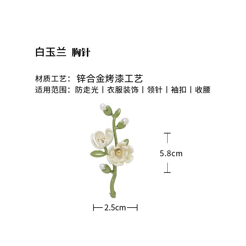 森系白玉兰植物胸针女高档小众复古气质胸花防走光别针旗袍装饰品