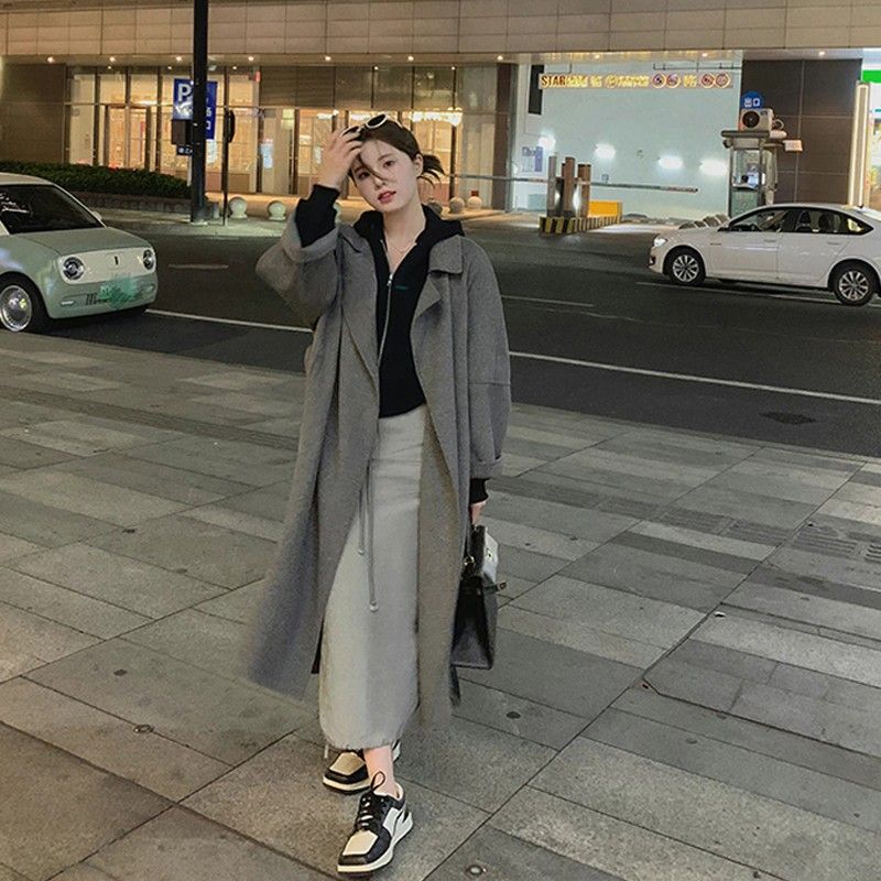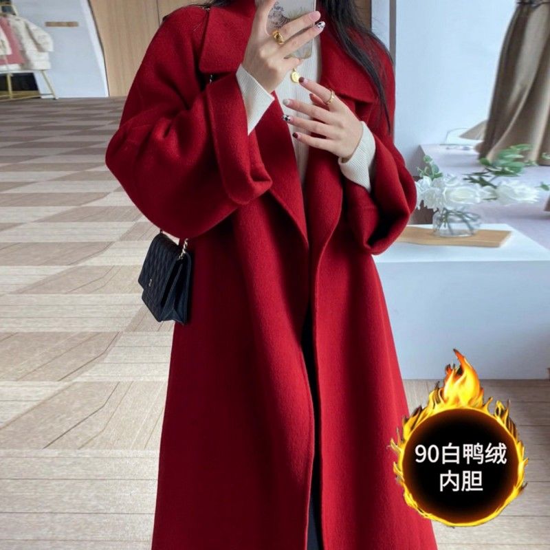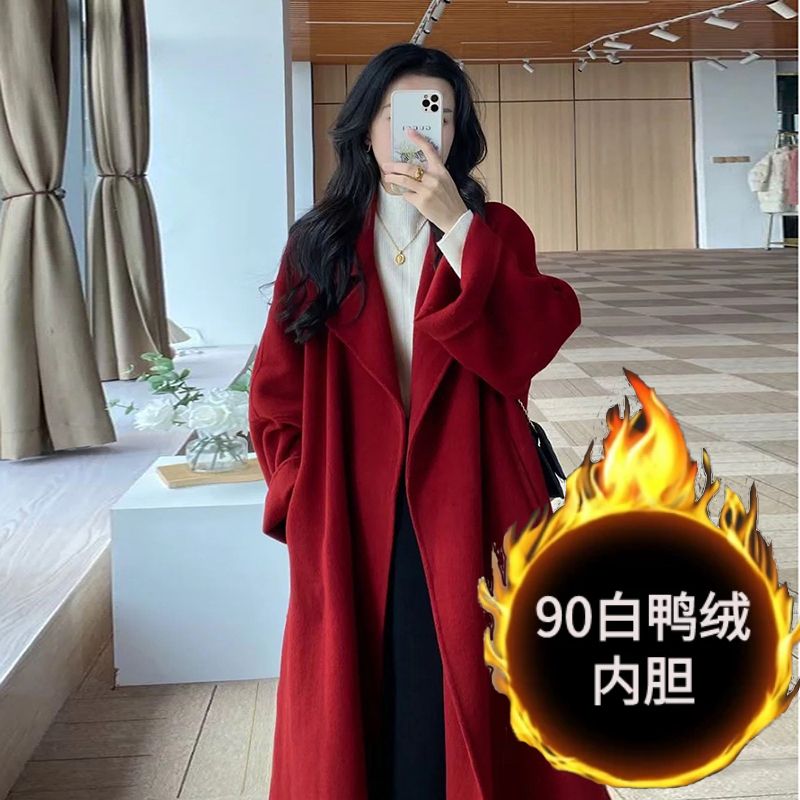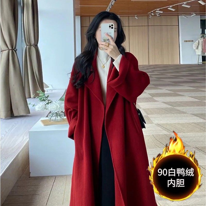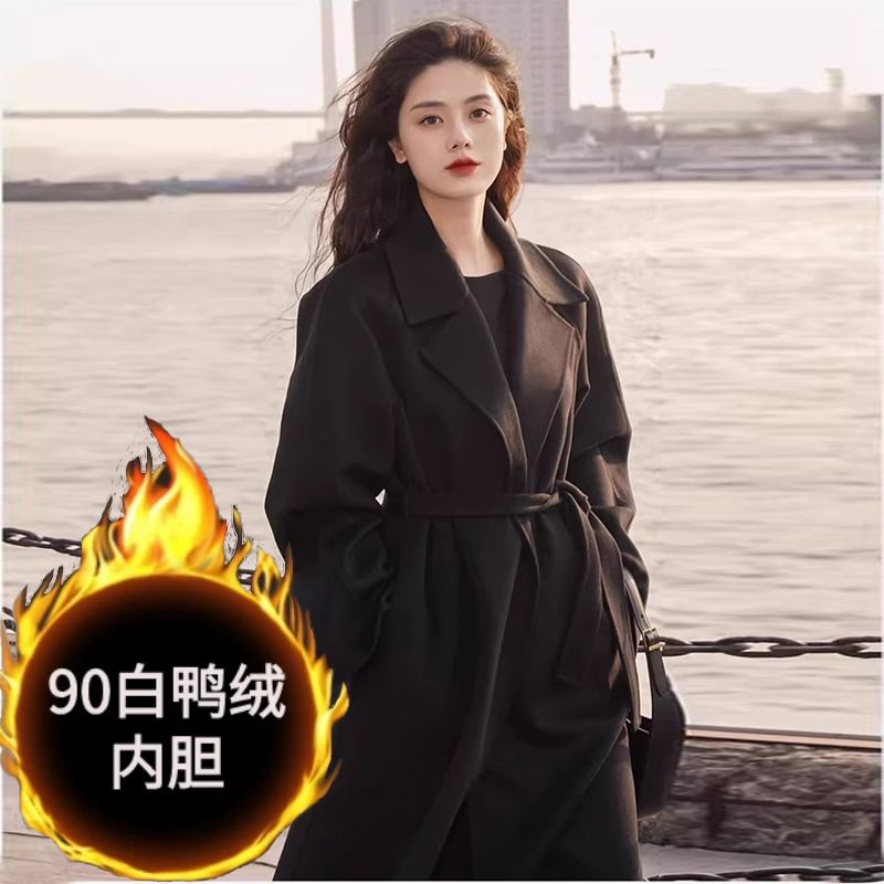 羽绒服毛呢外套女2024冬季宽松港风可拆卸内胆加厚双面绒呢子大衣