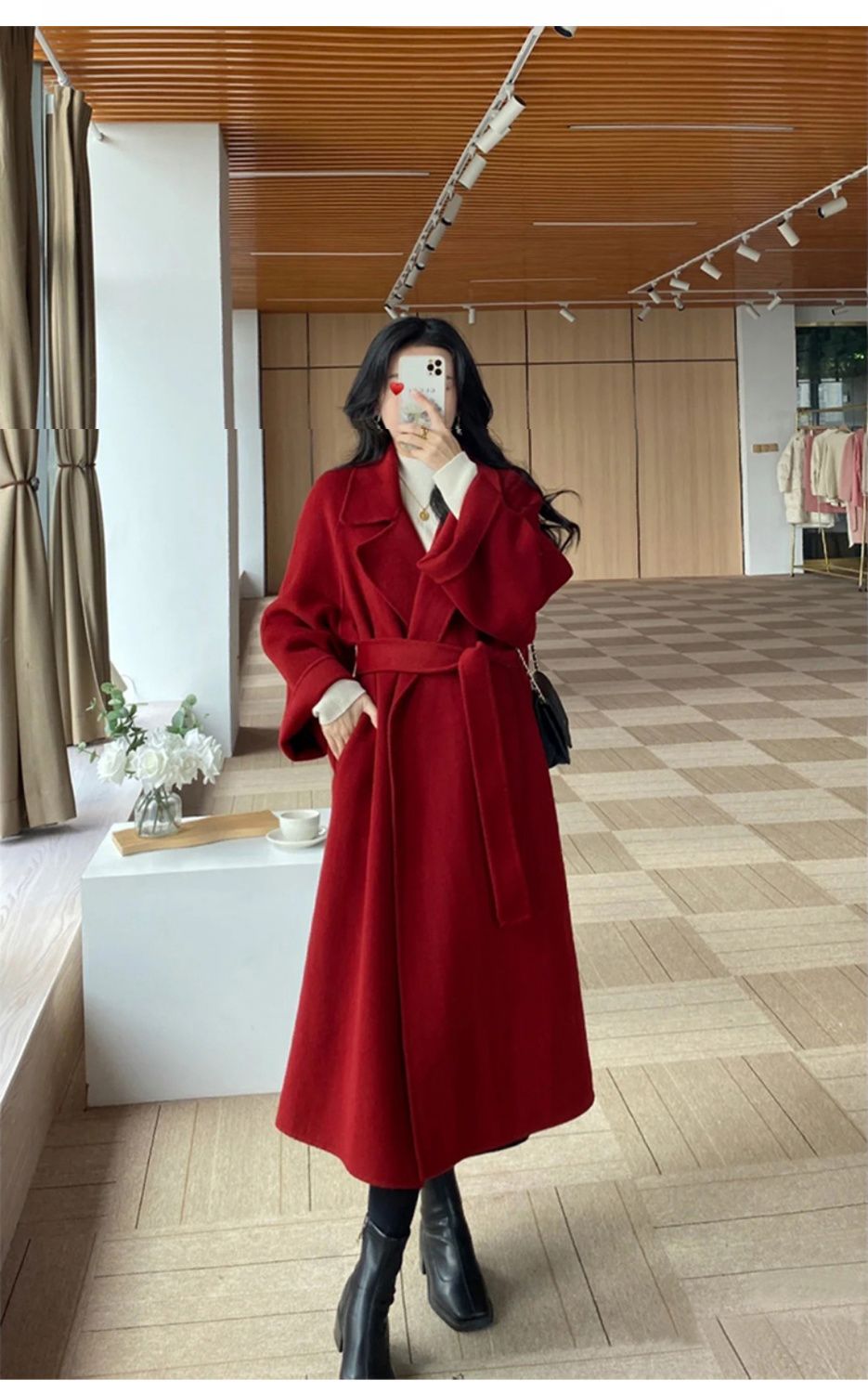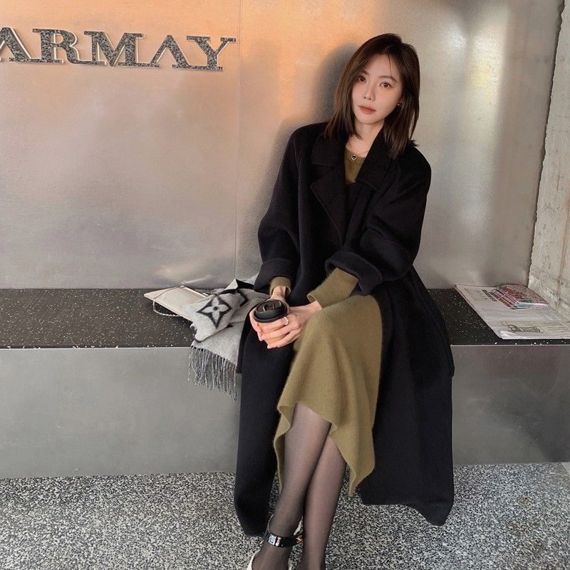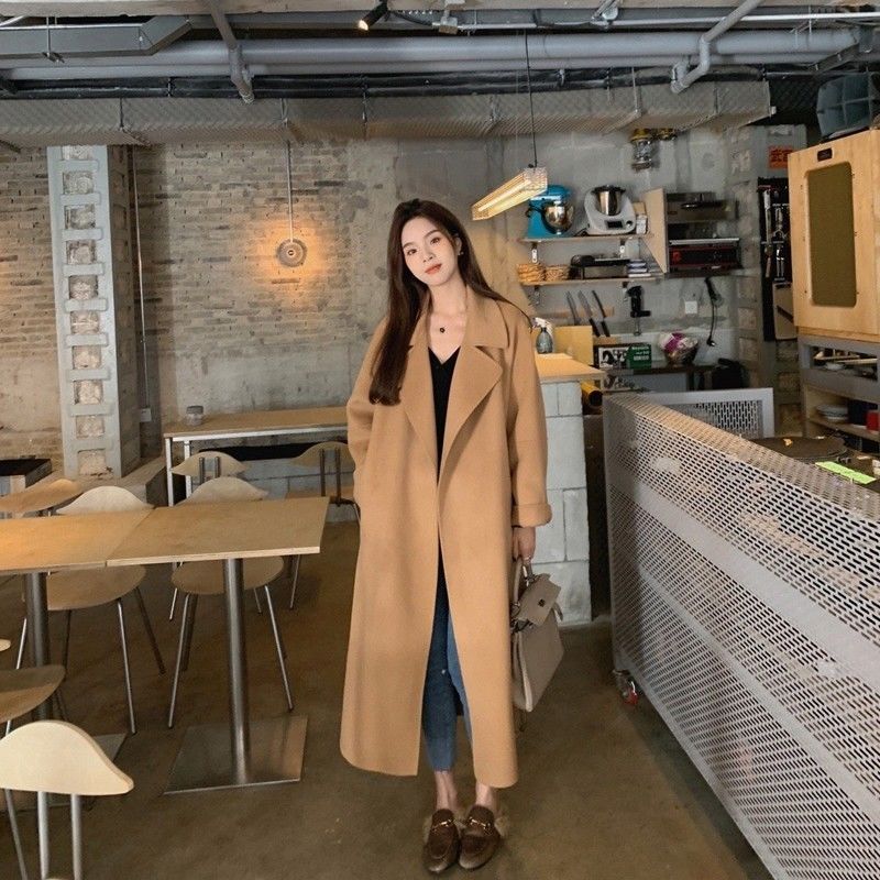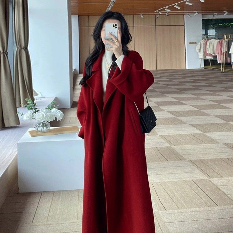 羽绒服毛呢外套女2024冬季宽松港风可拆卸内胆加厚双面绒呢子大衣