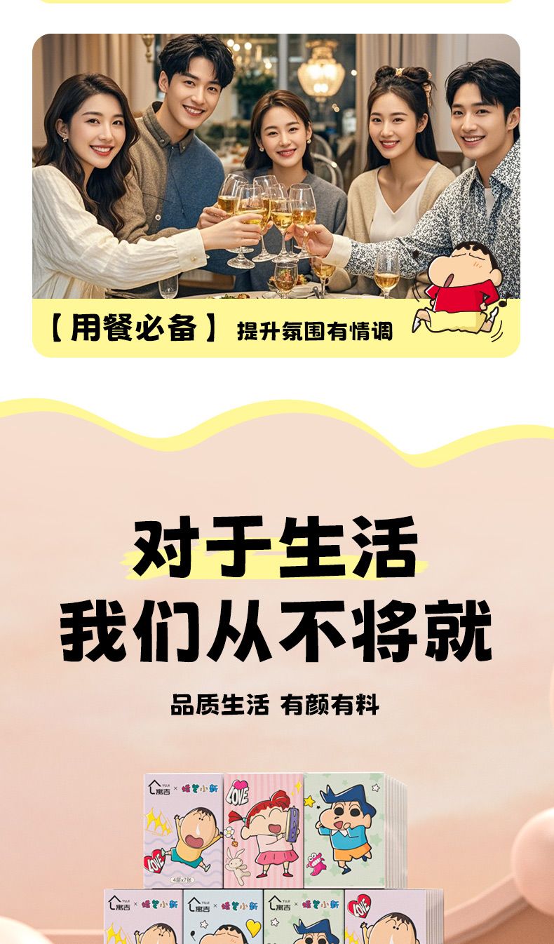 | [crayon xiaoxin] joint name 4 layers 7 pieces 48 packs(【蜡笔小新】联名4层7片48包) | USD $10.12 | 999999 piece available |
