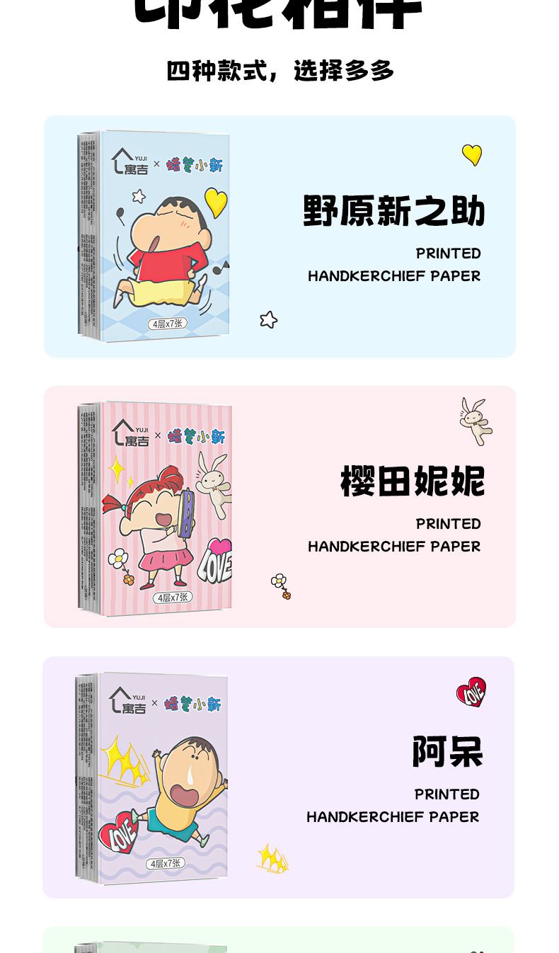 | [crayon xiaoxin] joint name 4 layers 7 pieces 32 packs(【蜡笔小新】联名4层7片32包) | USD $6.87 | 999999 piece available |