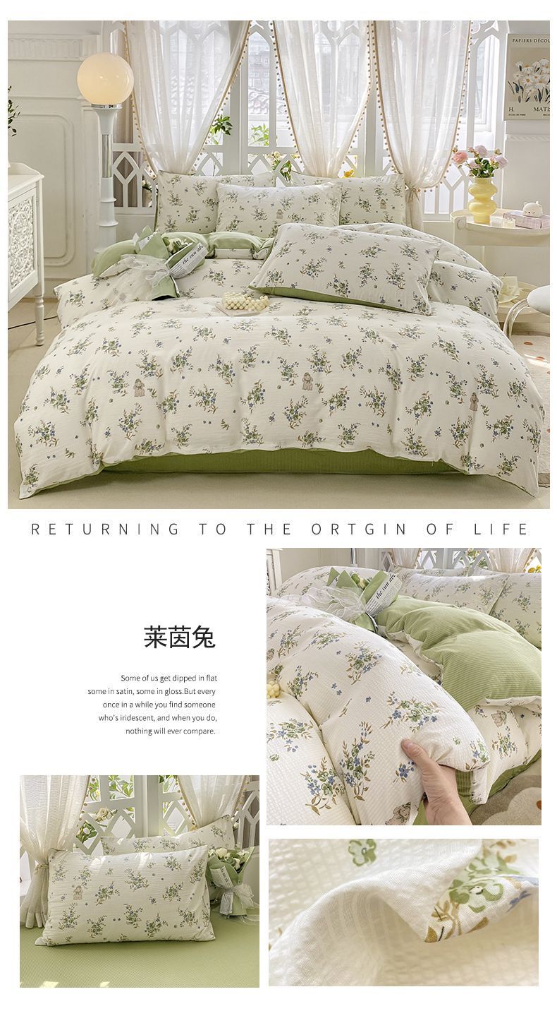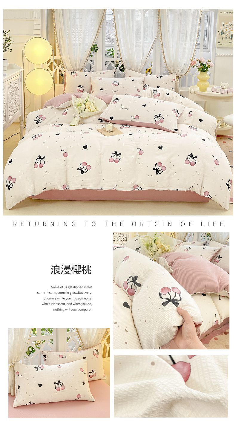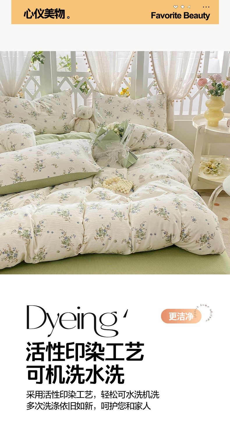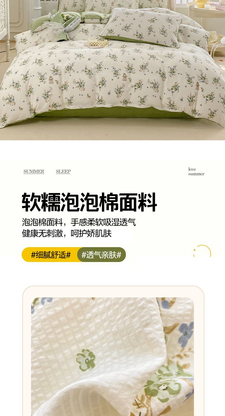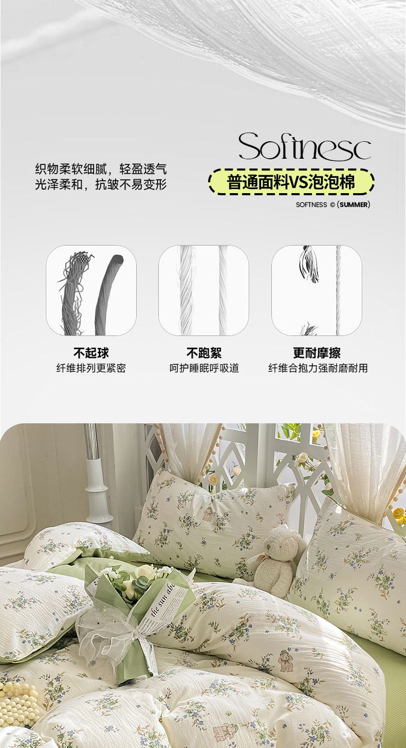 A类母婴级小清新超柔泡泡棉四件套水洗棉被套床单宿舍三件套床笠