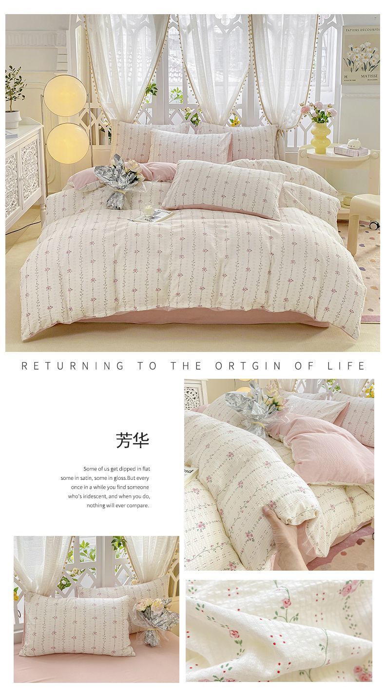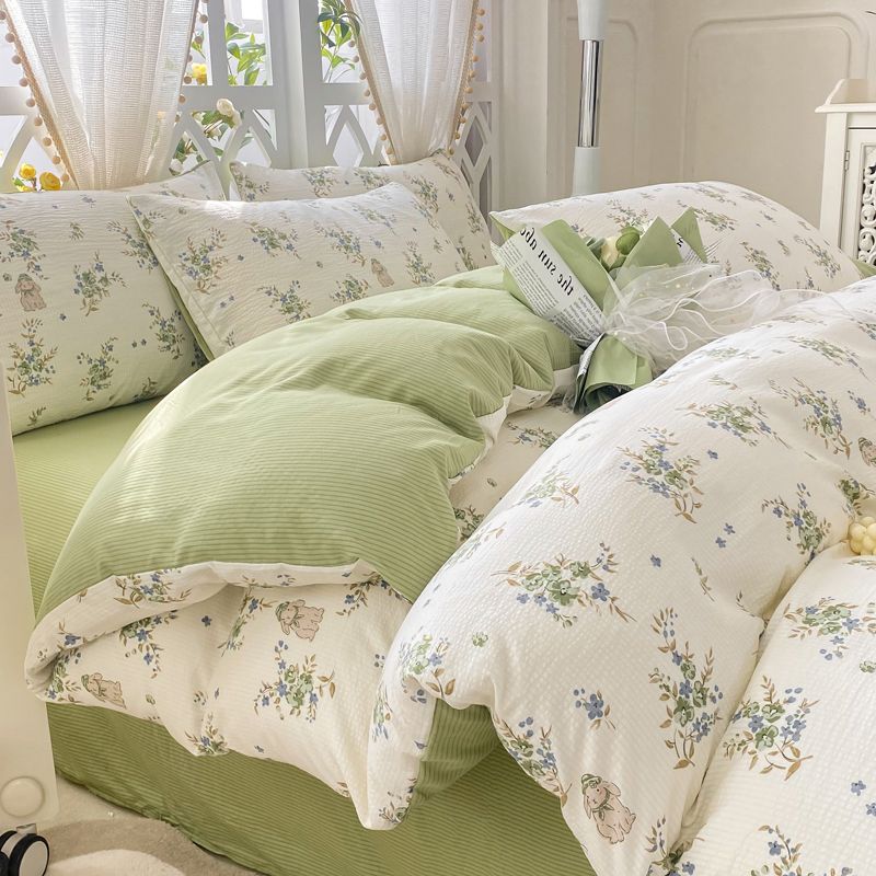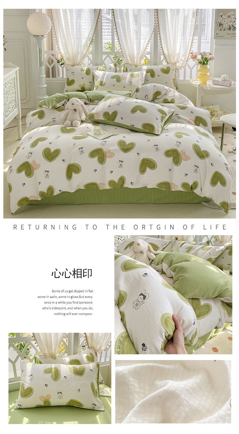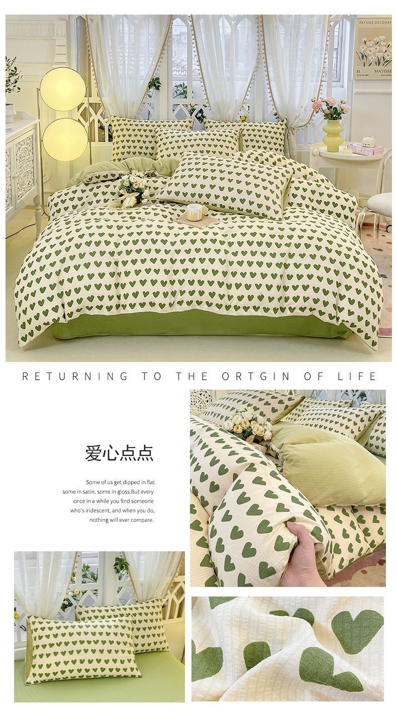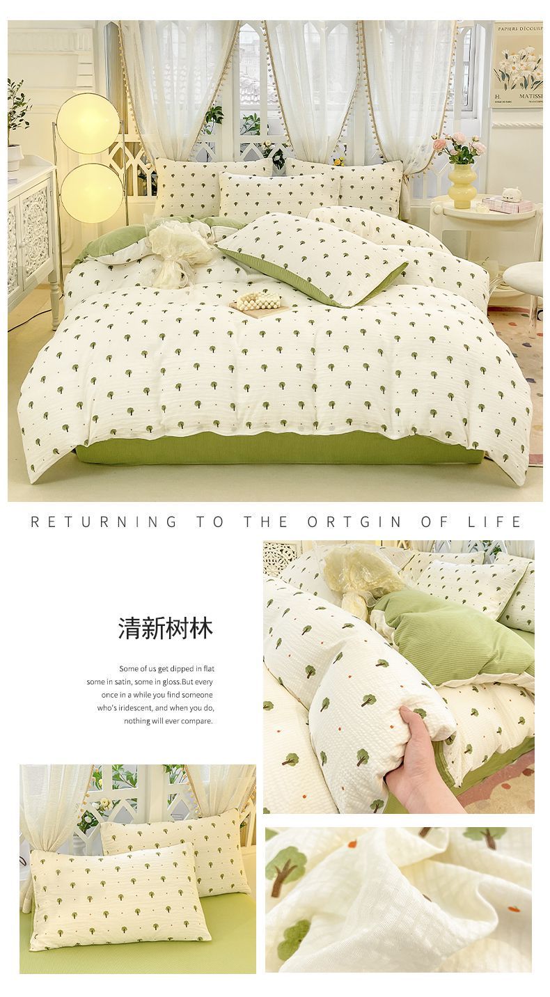 A类母婴级小清新超柔泡泡棉四件套水洗棉被套床单宿舍三件套床笠