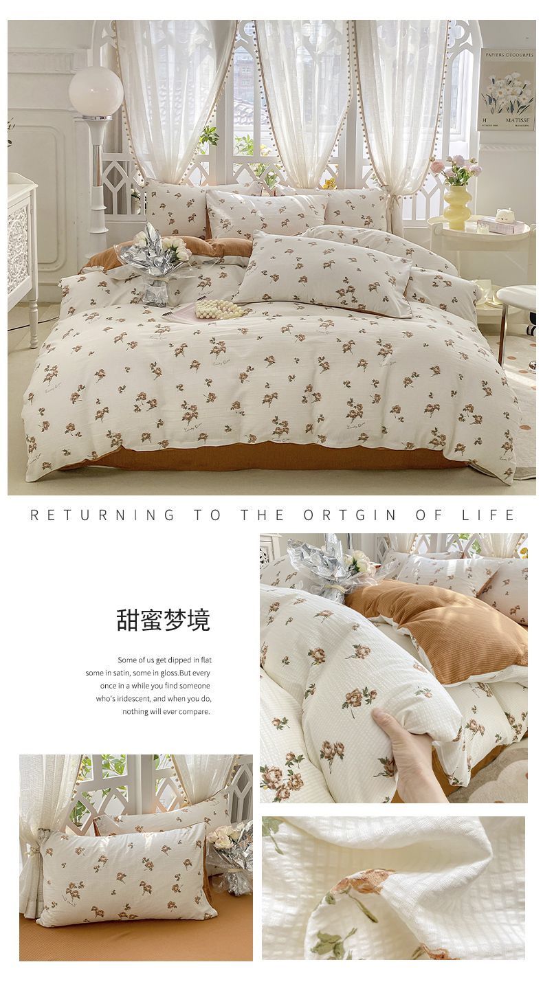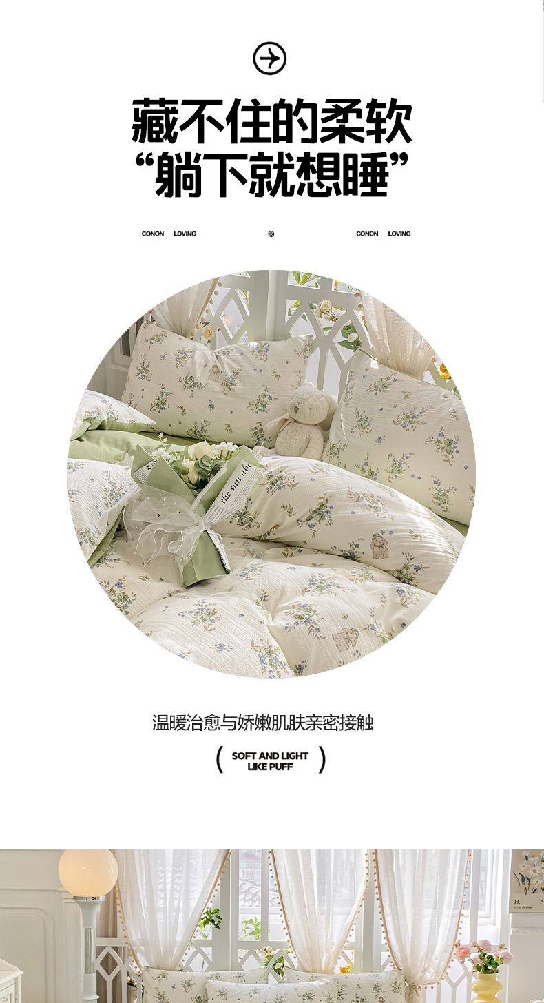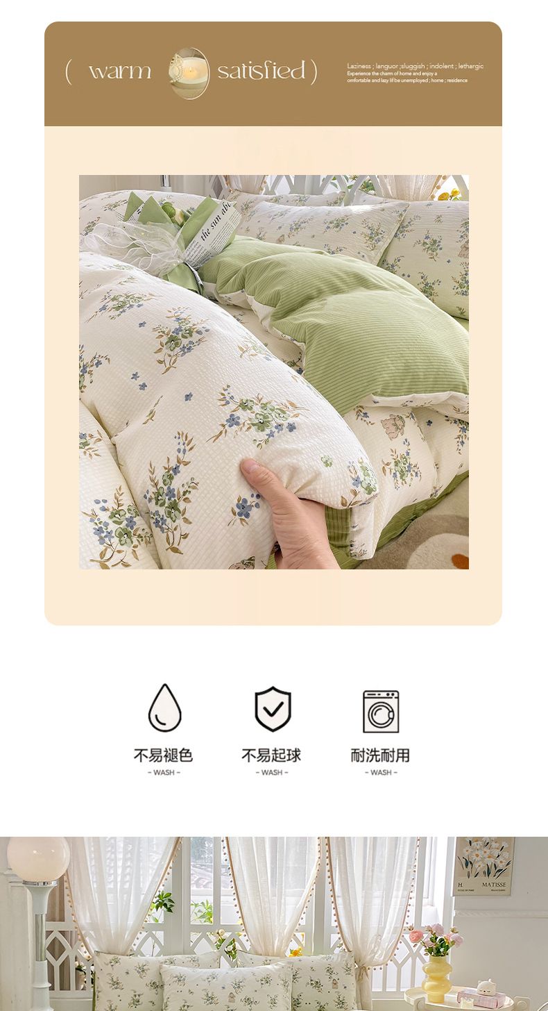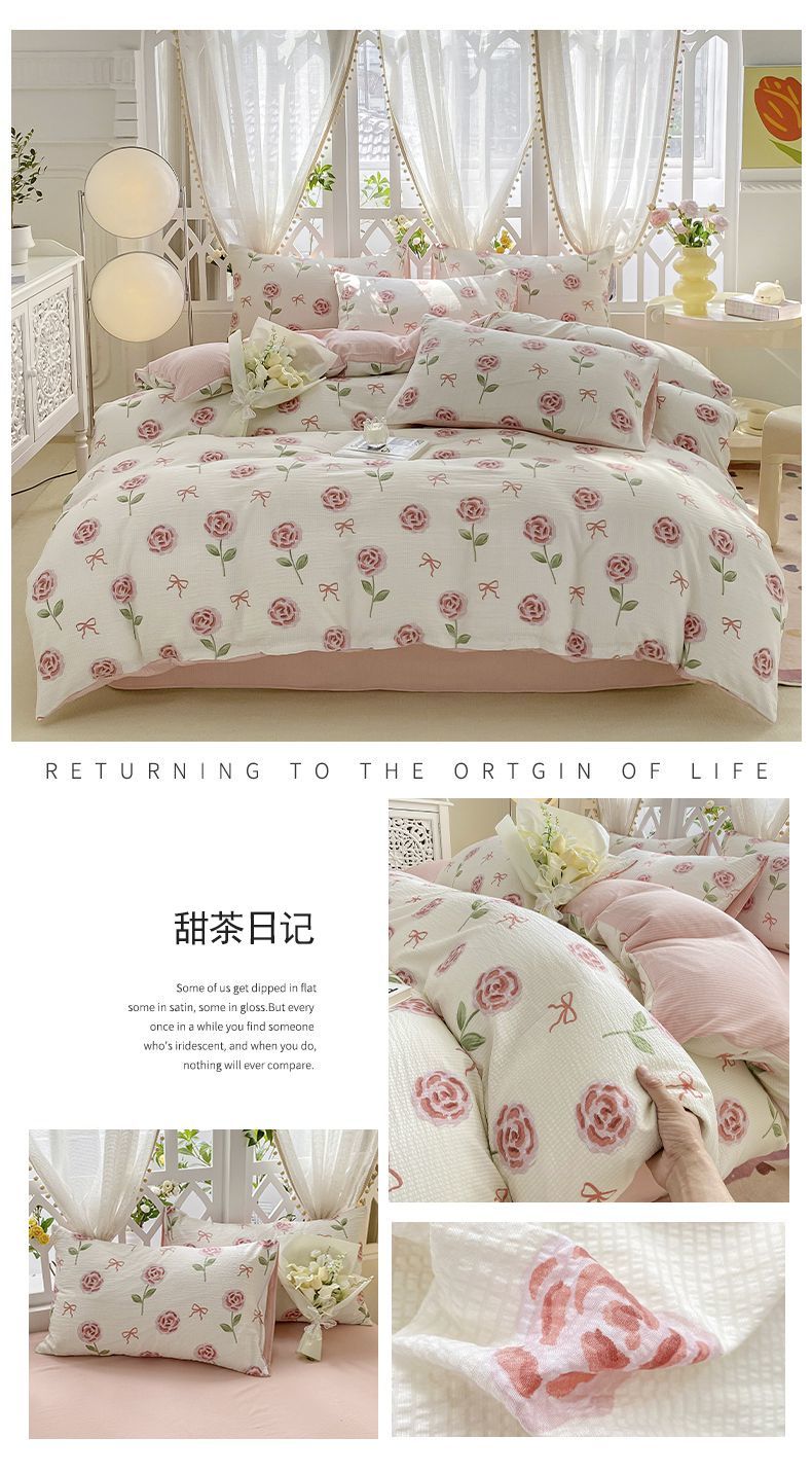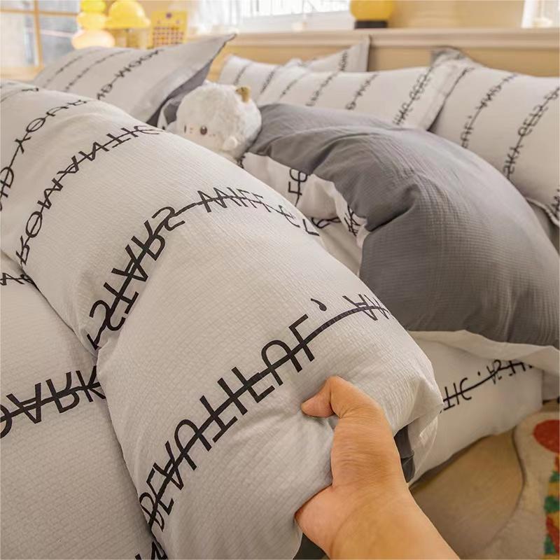 A类母婴级小清新超柔泡泡棉四件套水洗棉被套床单宿舍三件套床笠
