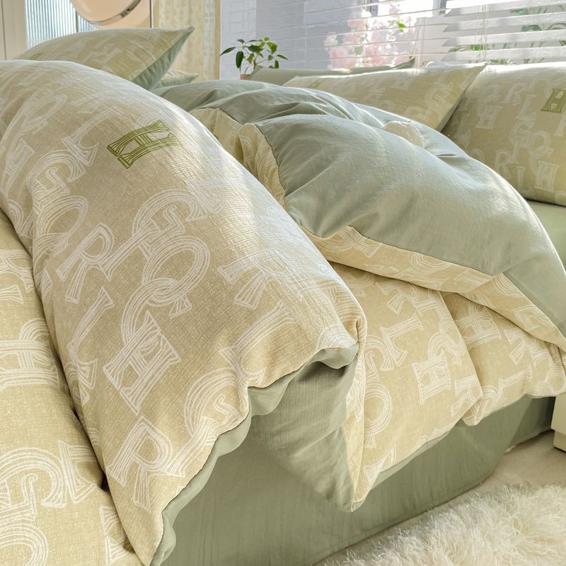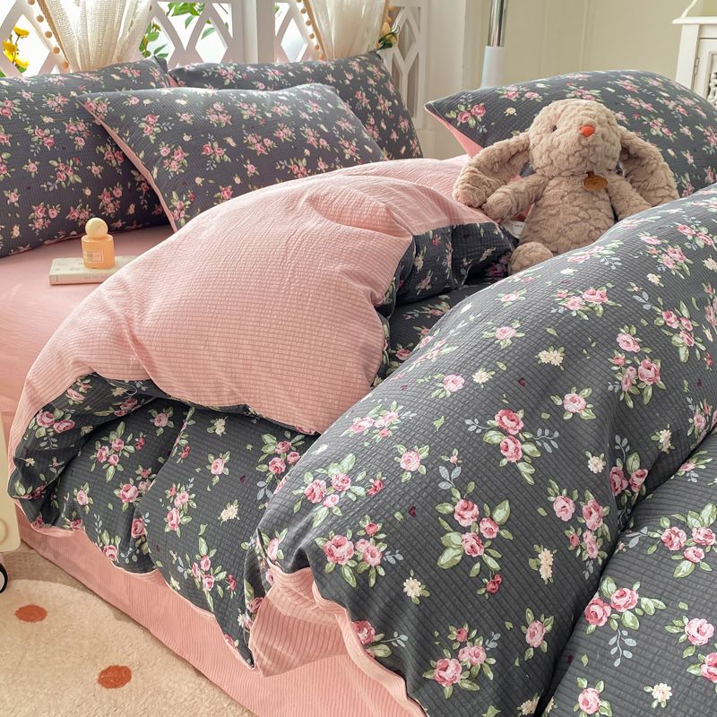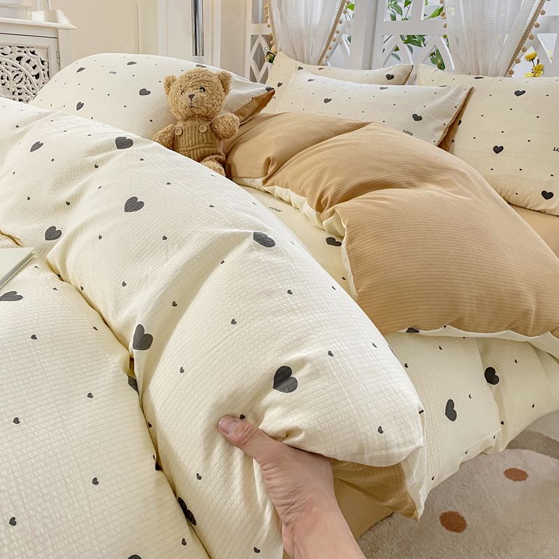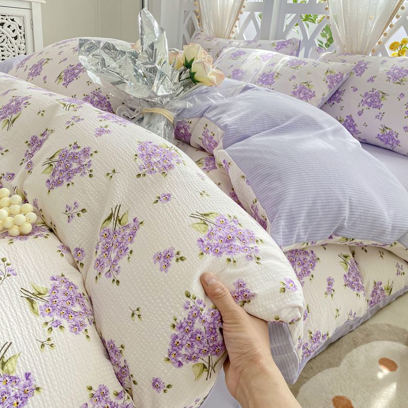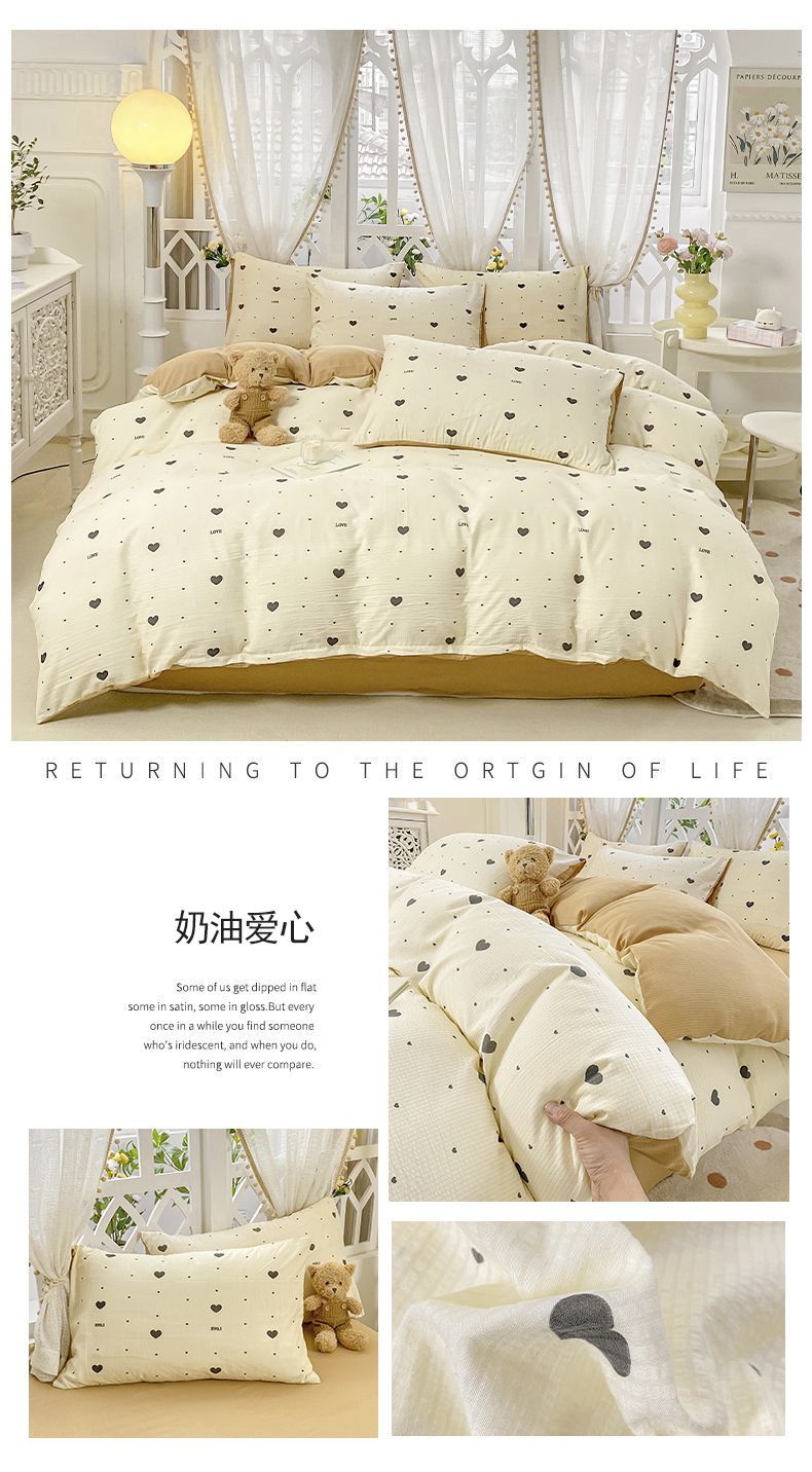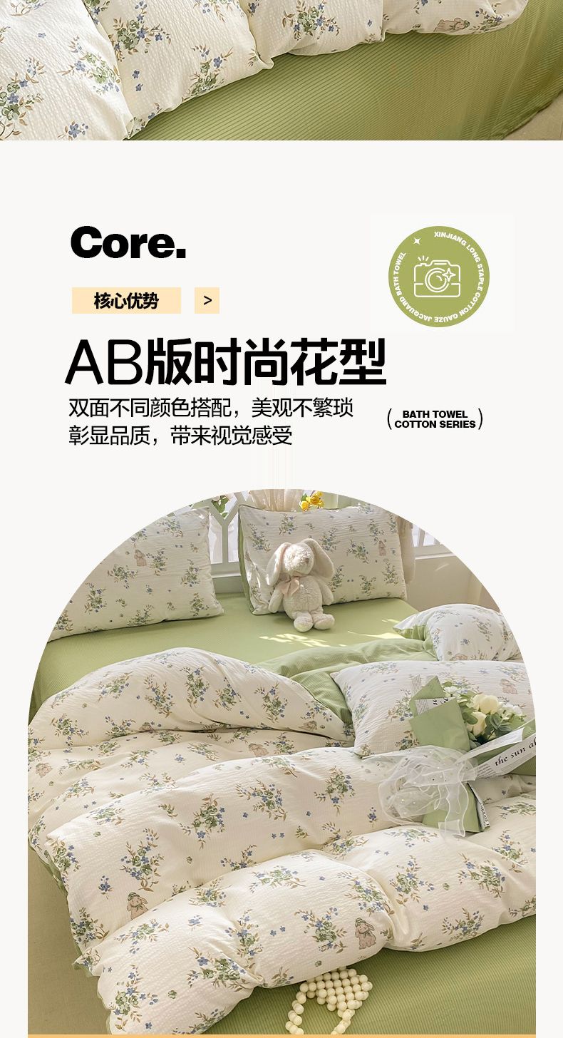 A类母婴级小清新超柔泡泡棉四件套水洗棉被套床单宿舍三件套床笠