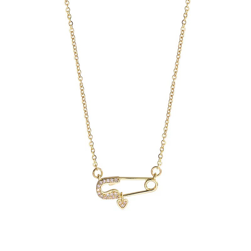 项链不掉色女夏季轻奢锆石别针钛钢项链个性小众设计感锁骨链