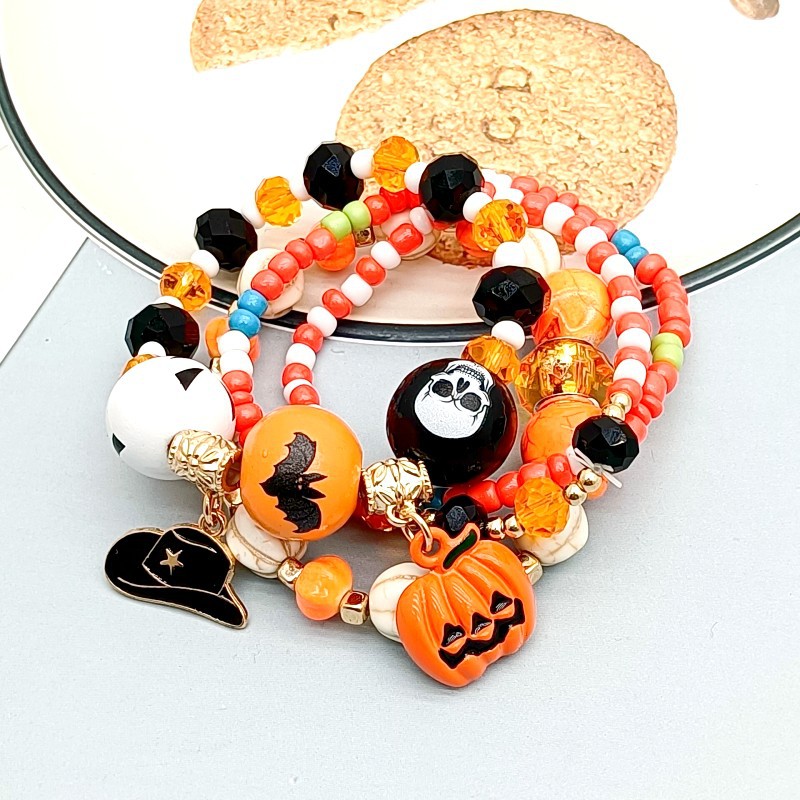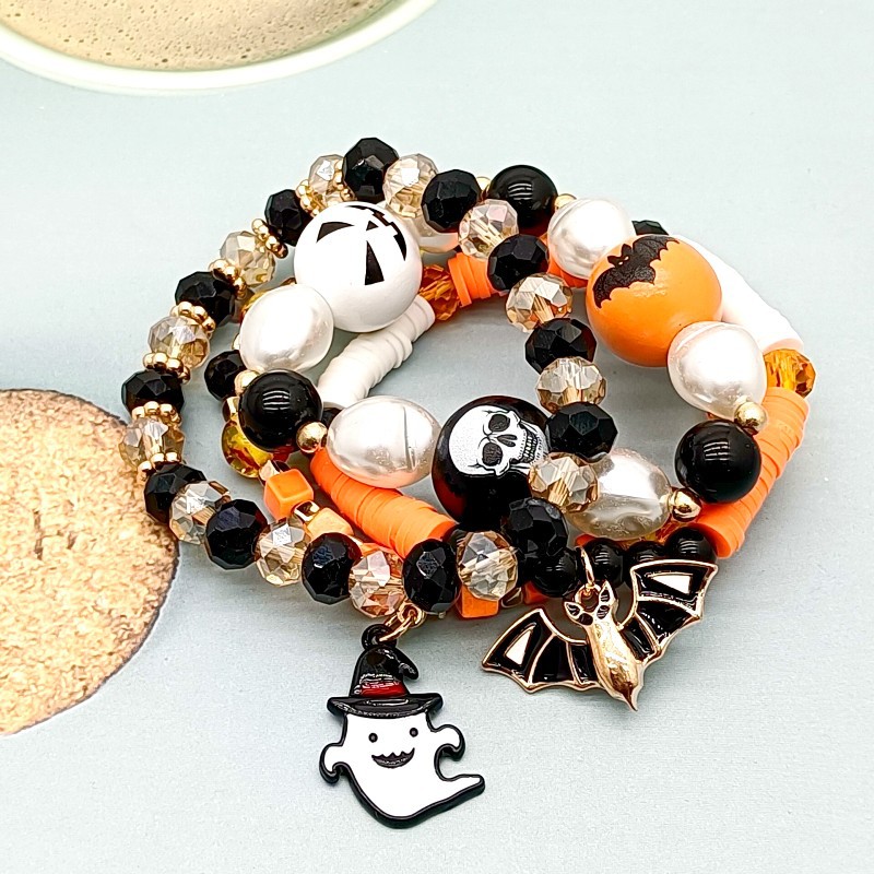 跨境欧美万圣节搞怪骷颅头米珠手链 个性恶魔之眼滴油蝙蝠手饰 女