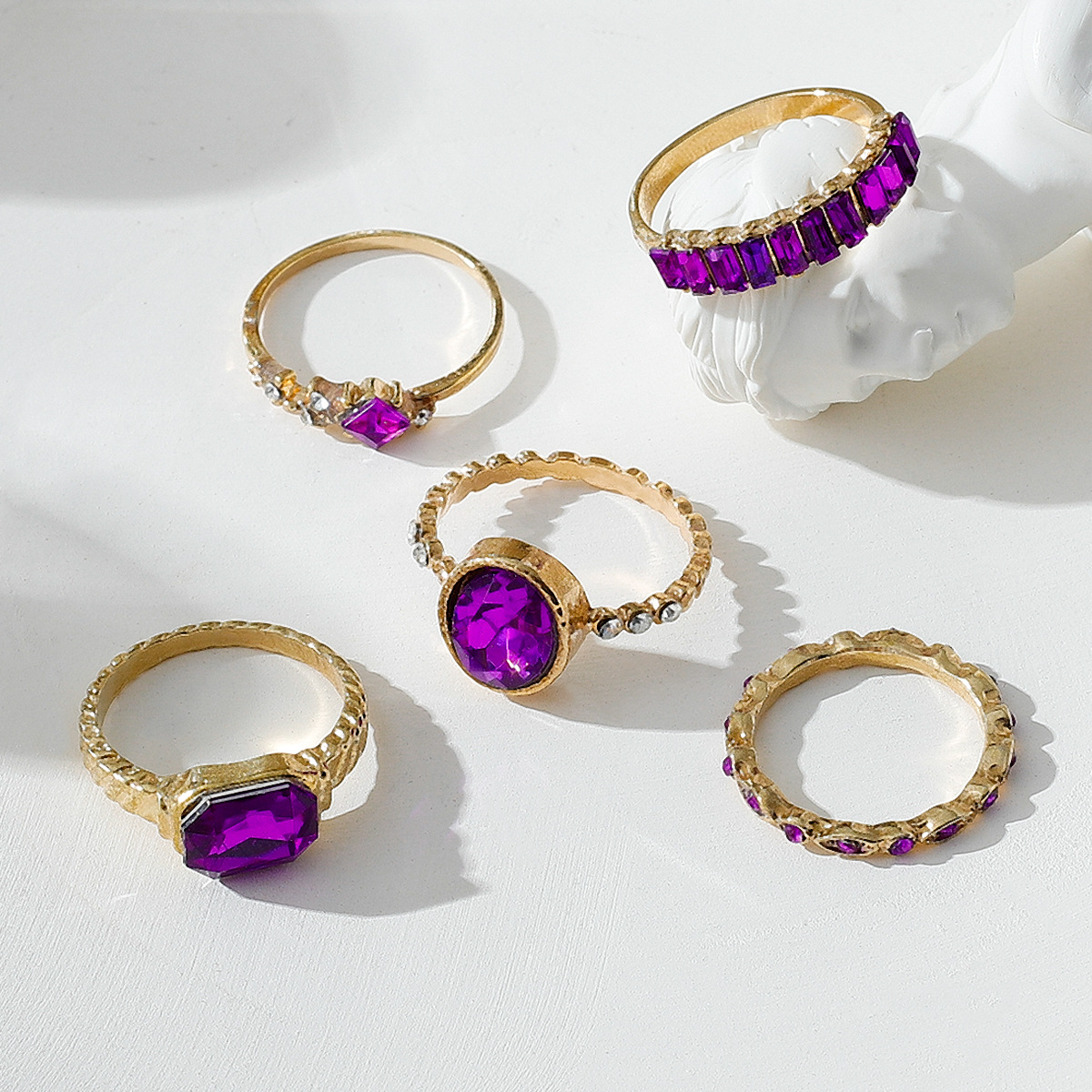 新款ins跨境欧美个性时尚关节戒小众设计简约几何镶钻戒指5件套