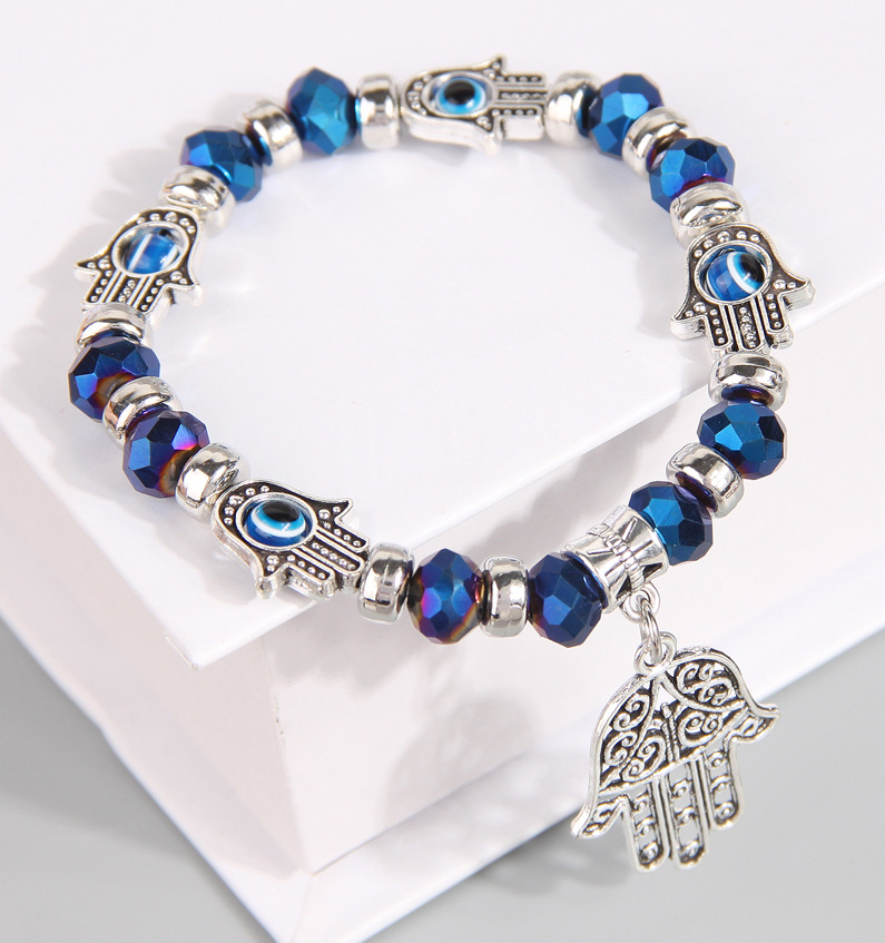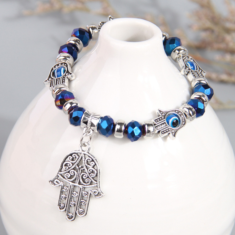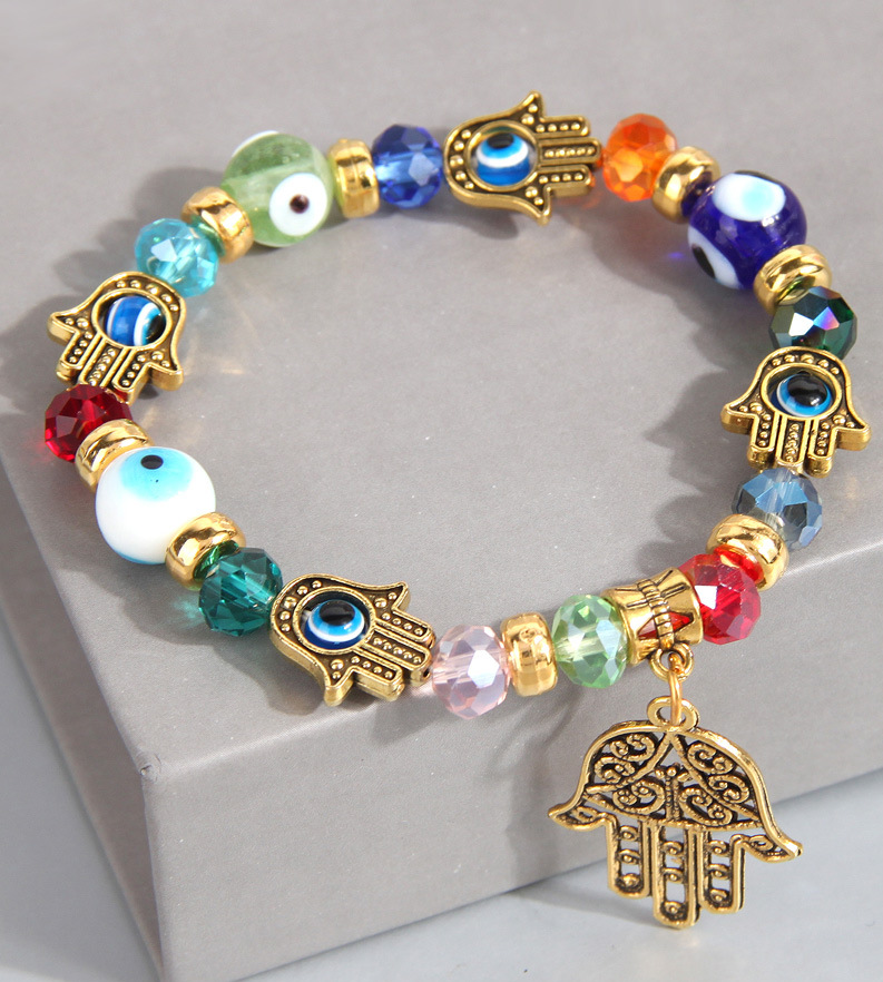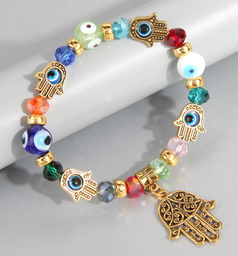 欧美时尚金色配饰恶魔之眼眼睛水晶百搭金属手掌坠个性手链手串