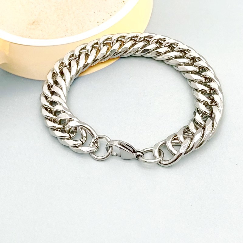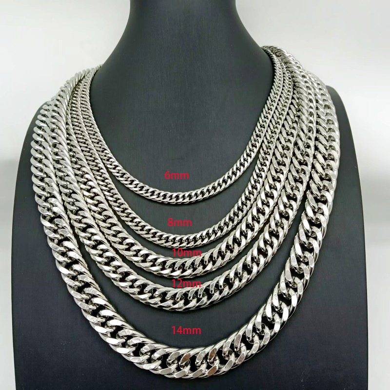 亚马逊爆款古巴比不掉色钛钢饰品不锈钢加宽超厚男士手链项链批发