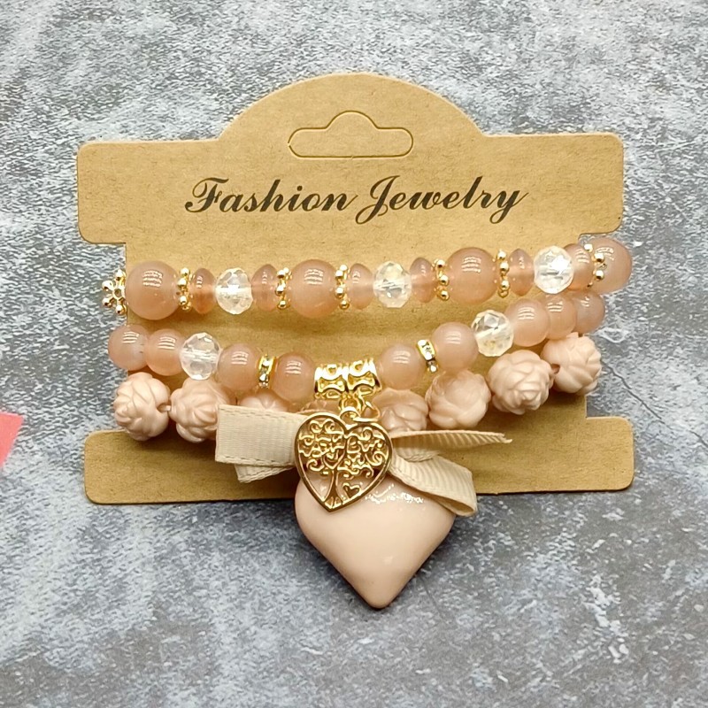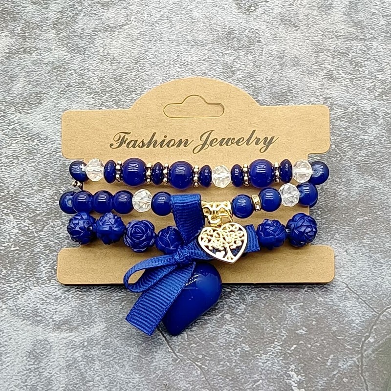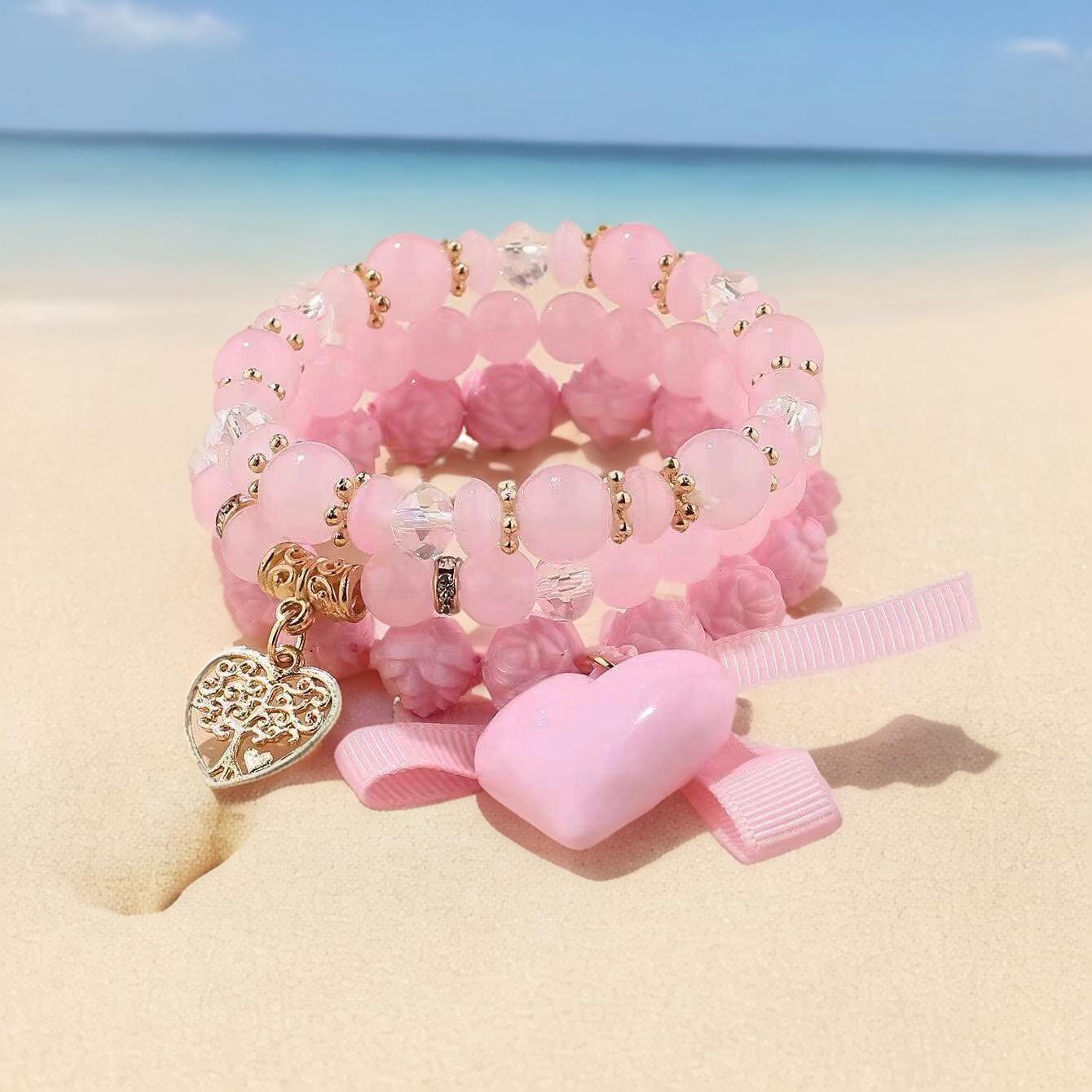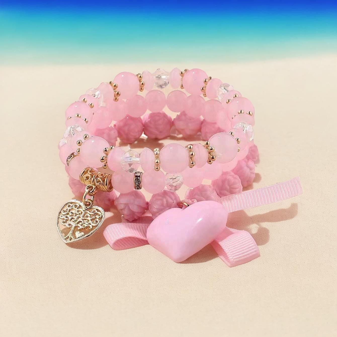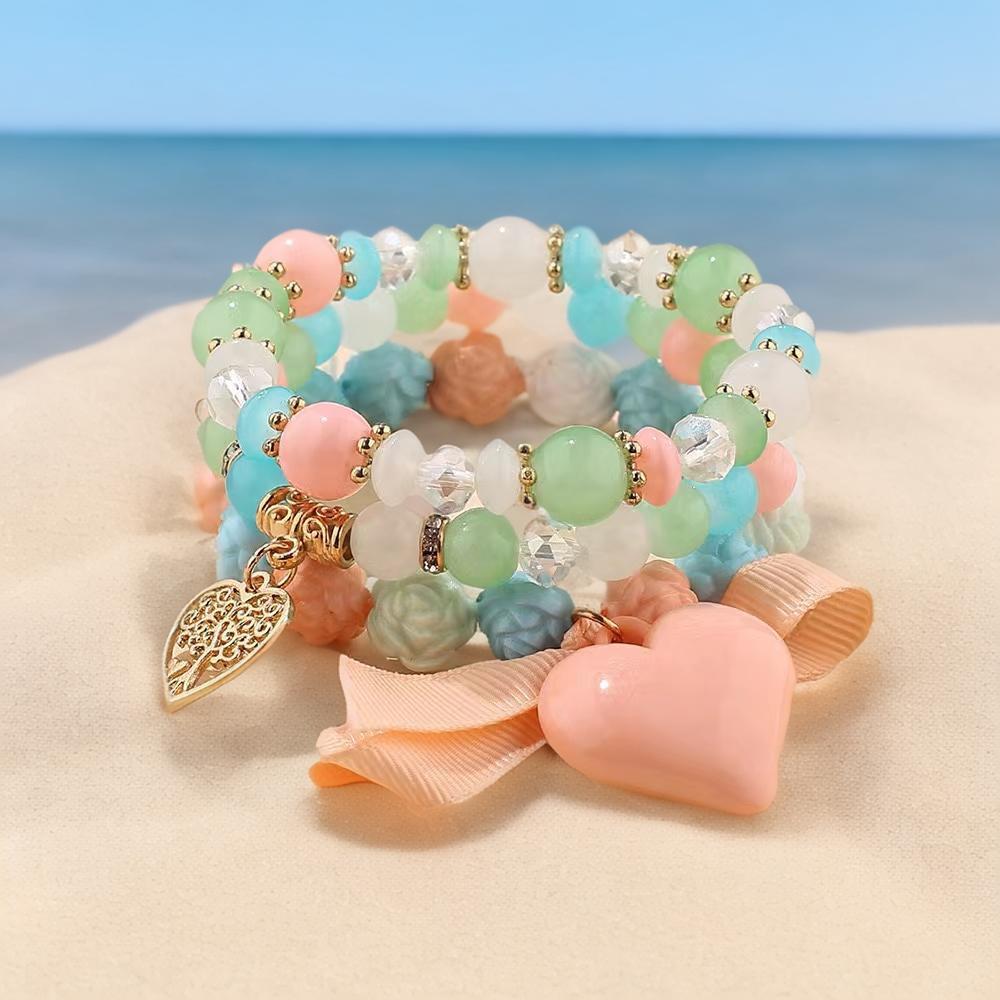 欧美新款波西米亚手饰 爱心蝴蝶结甜玫瑰花女珠串女士多层手链