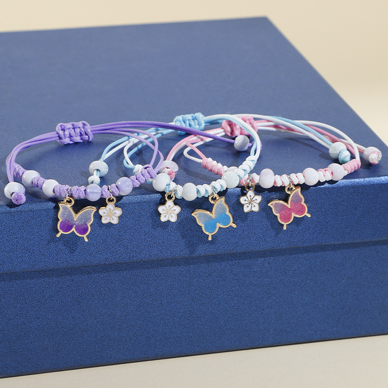 跨境热销流行卡通蝴蝶花朵吊坠编绳陶瓷手链女学生儿童闺蜜礼物