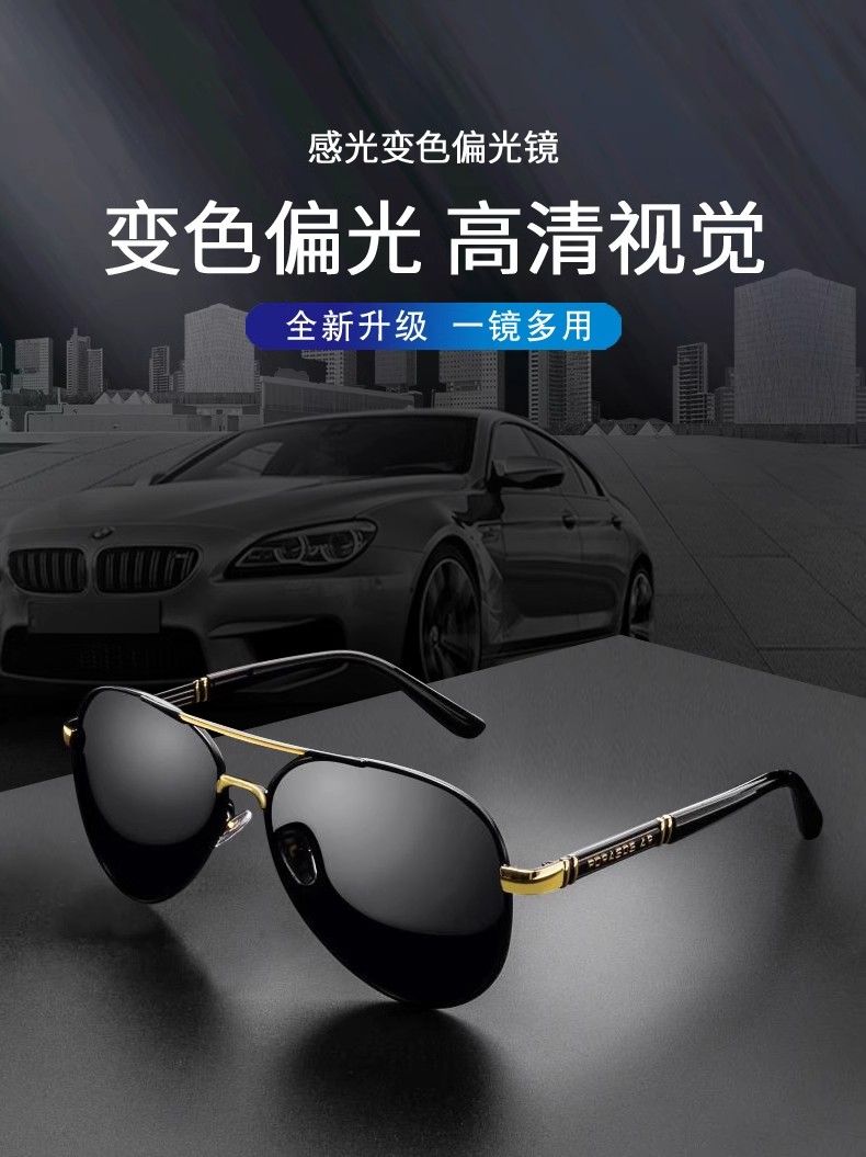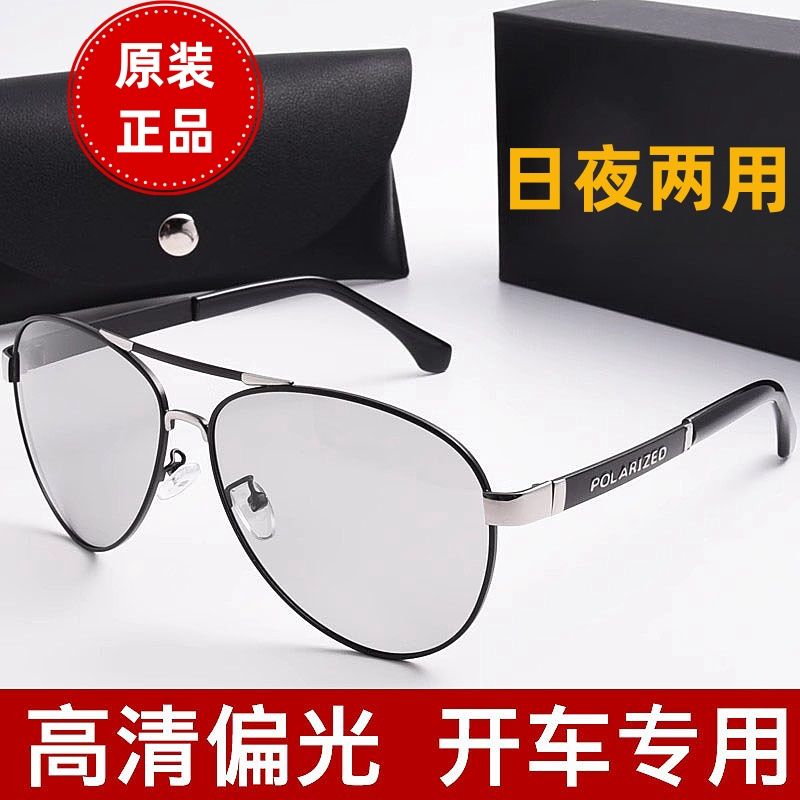 开车变色墨镜男款偏光太阳镜男士驾驶眼镜大框眼睛防紫外线强光潮