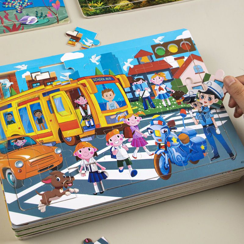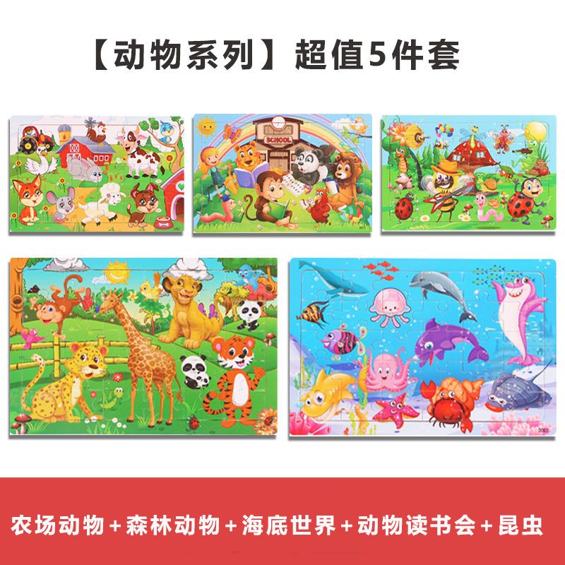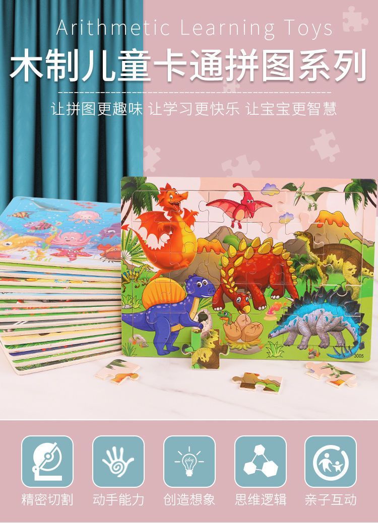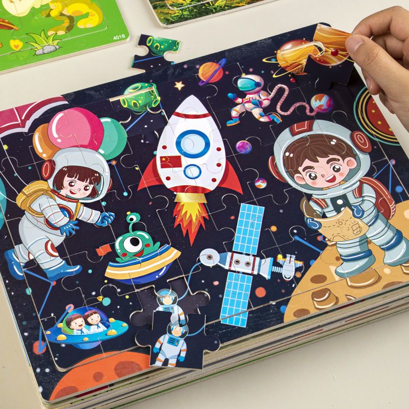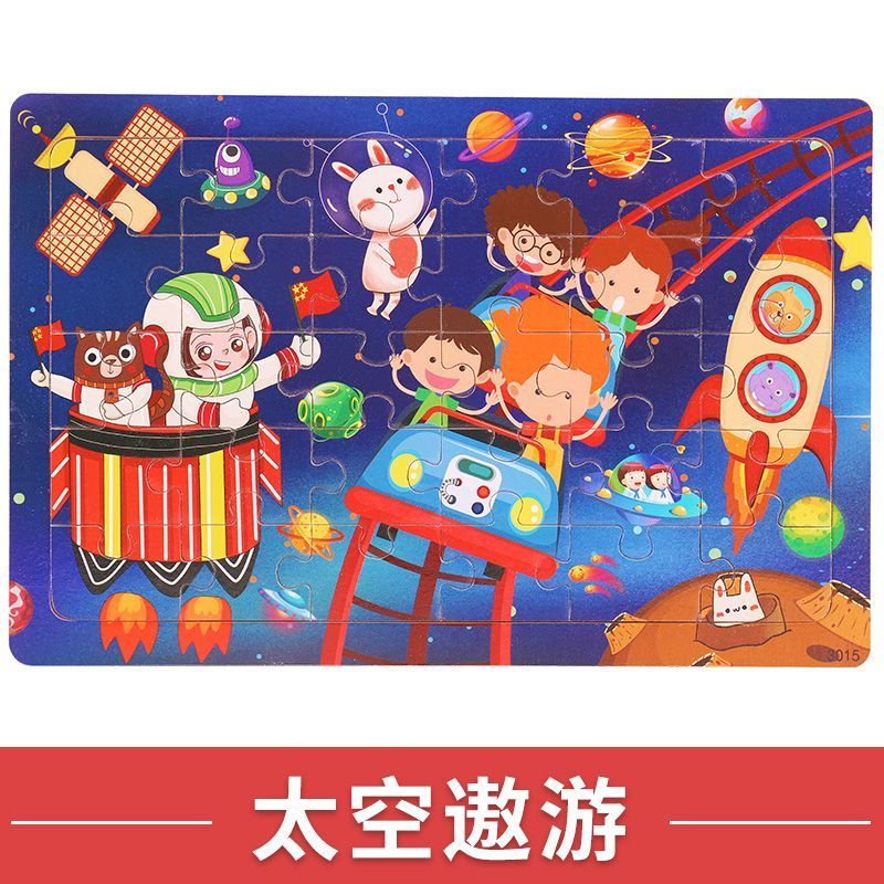 太空系列30片木质拼图儿童益智类玩具3到6岁幼儿智力开发卡通拼图