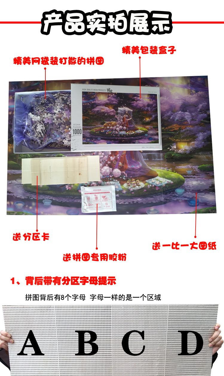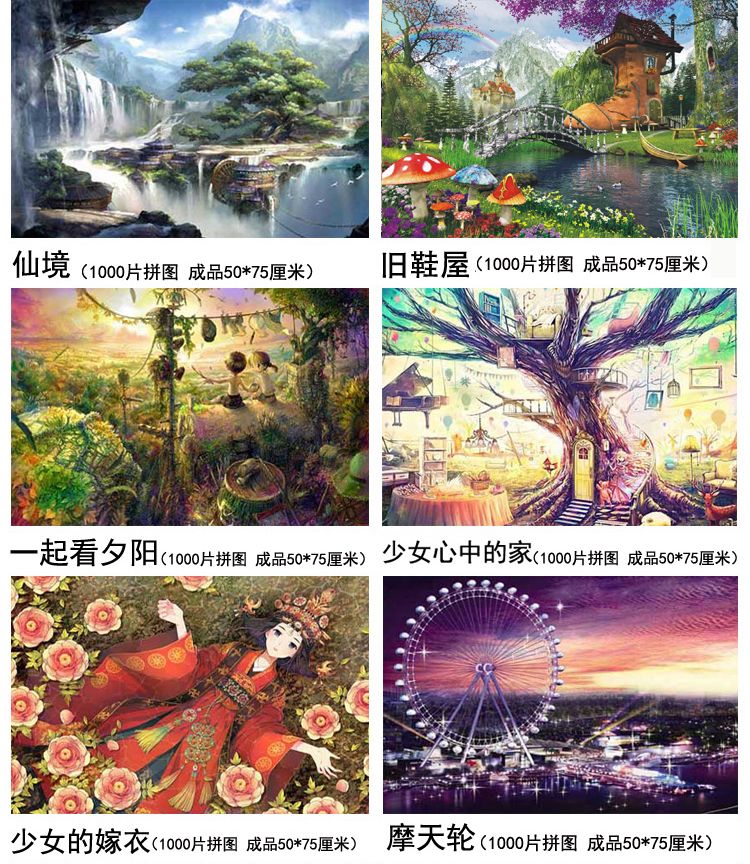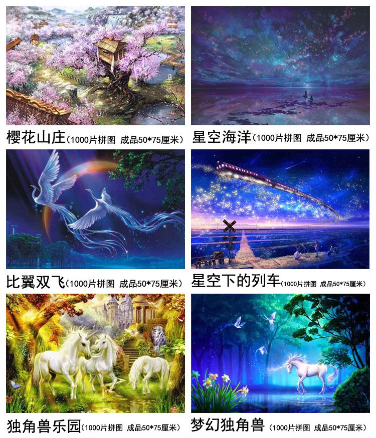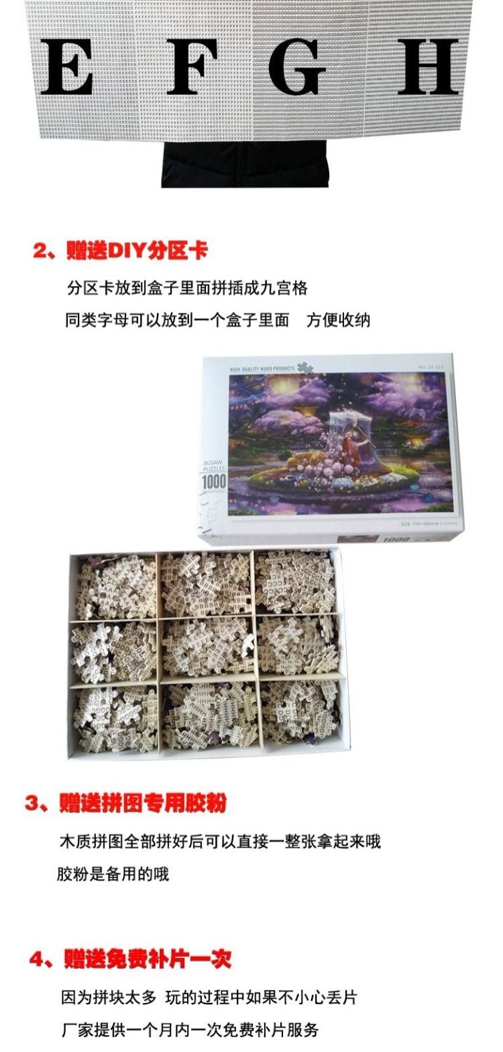 1000片木质夜光拼图成人卡通动漫平图风景定制礼物儿童益智力玩具