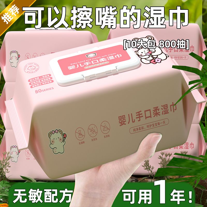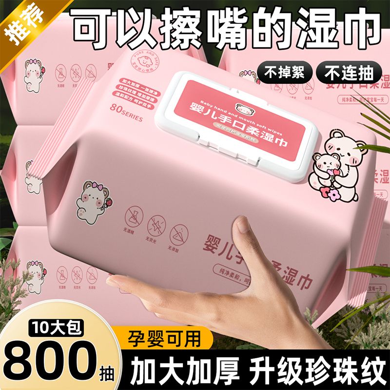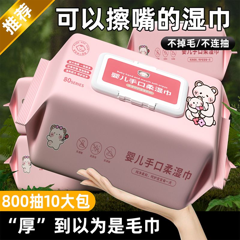 【10大包800 抽加大款】婴儿湿巾手口屁专用新生儿湿纸巾大包带盖