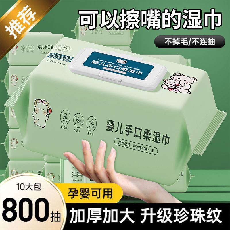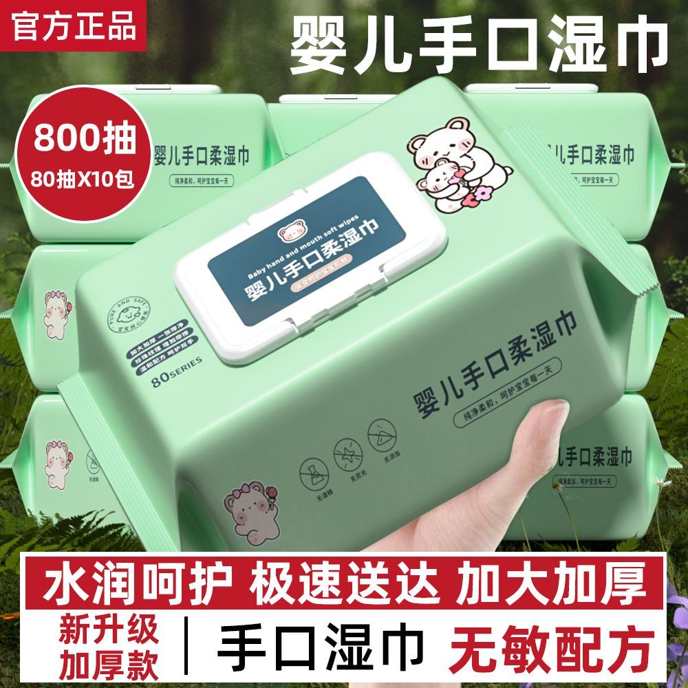 【10大包800 抽加大款】婴儿湿巾手口屁专用新生儿湿纸巾大包带盖