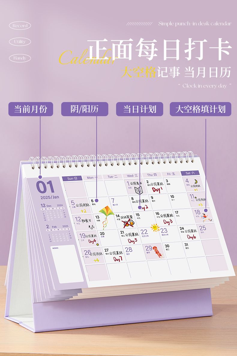 日历2025年新款2024台历记事办公室桌面学生摆件简约ins计划月历