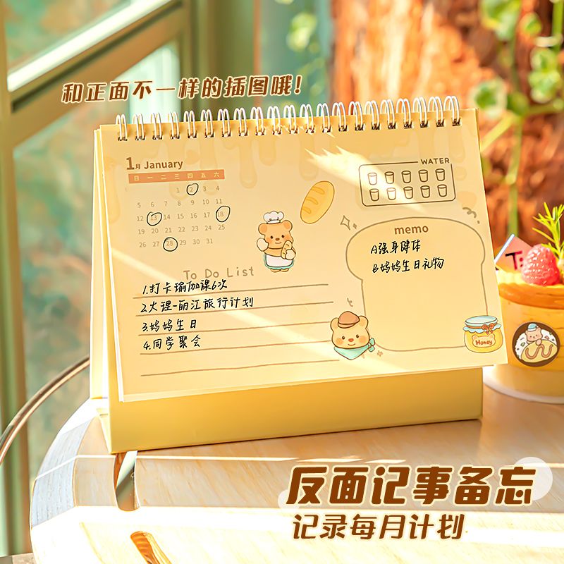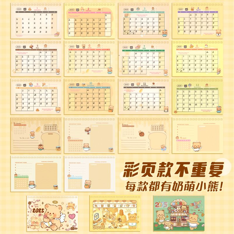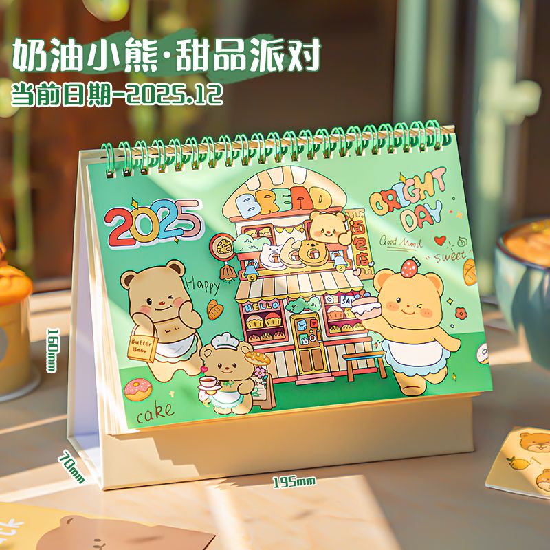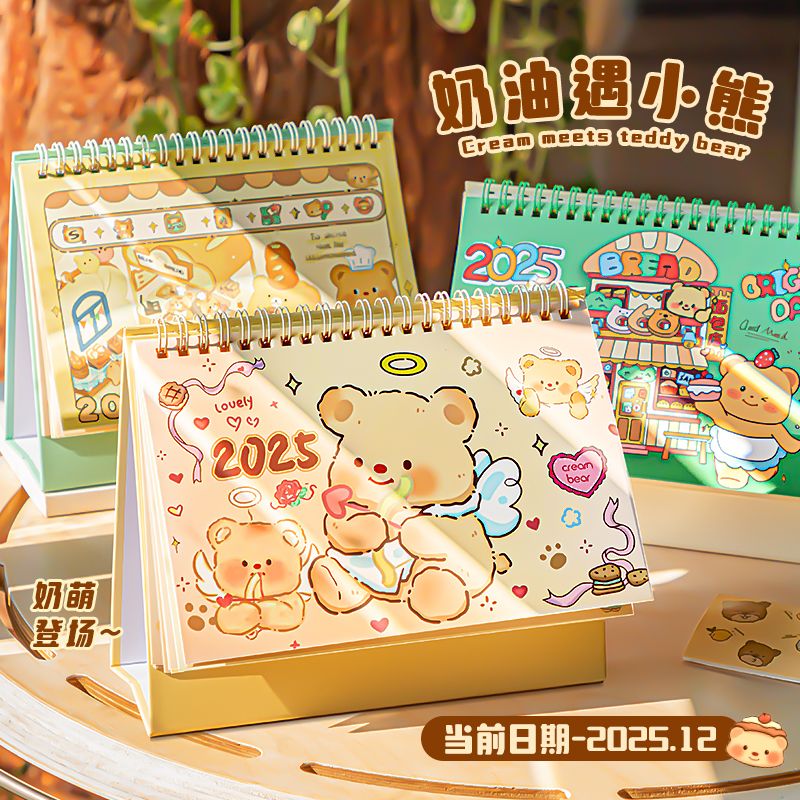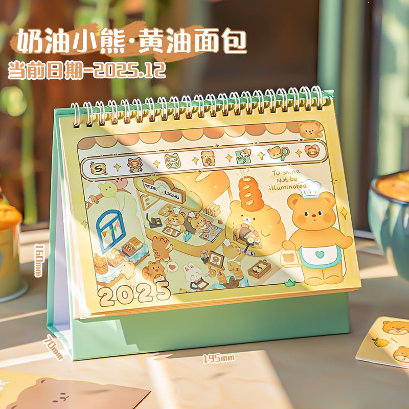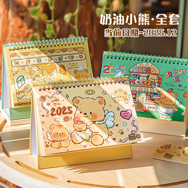 黄油小熊台历2025年蛇年日历创意桌面日历学生办公室桌面摆件月历