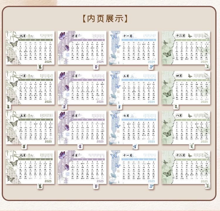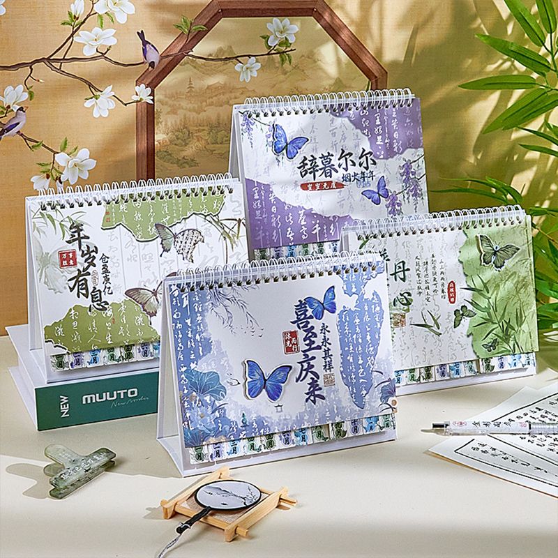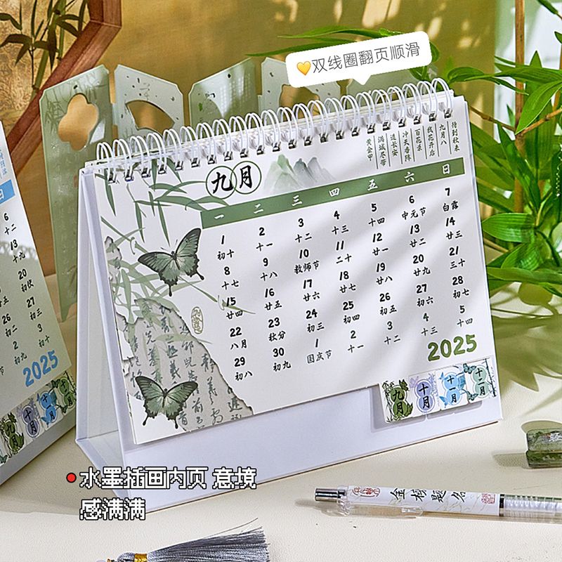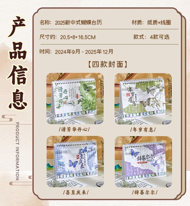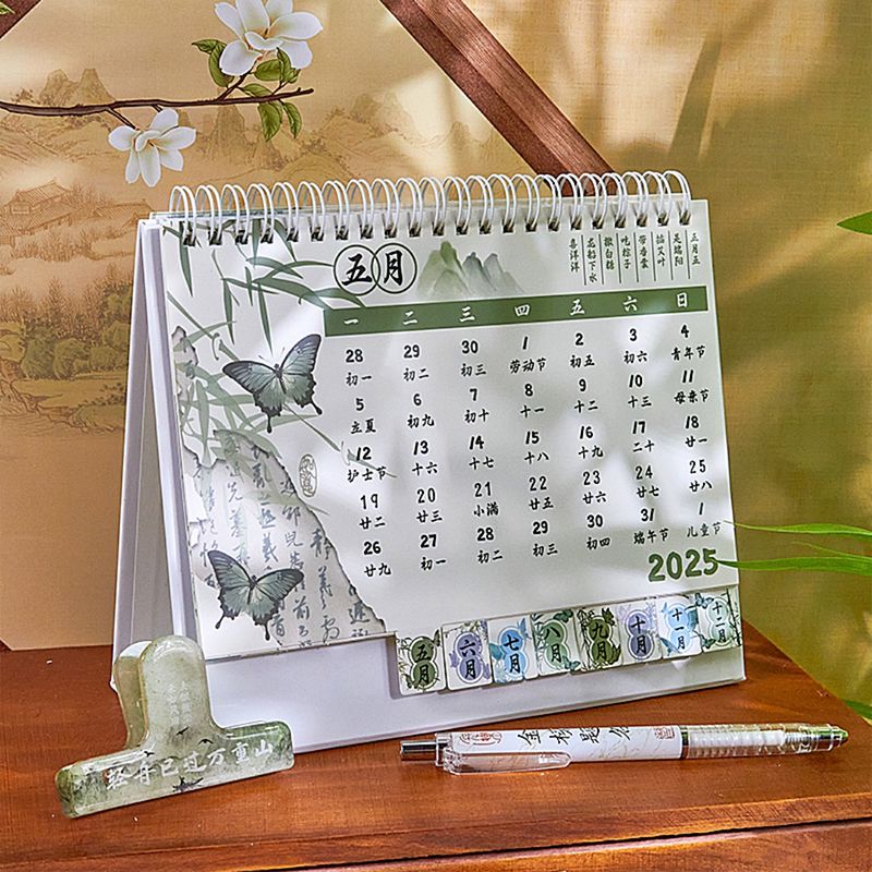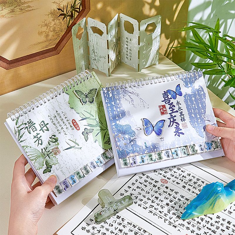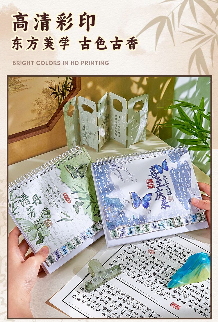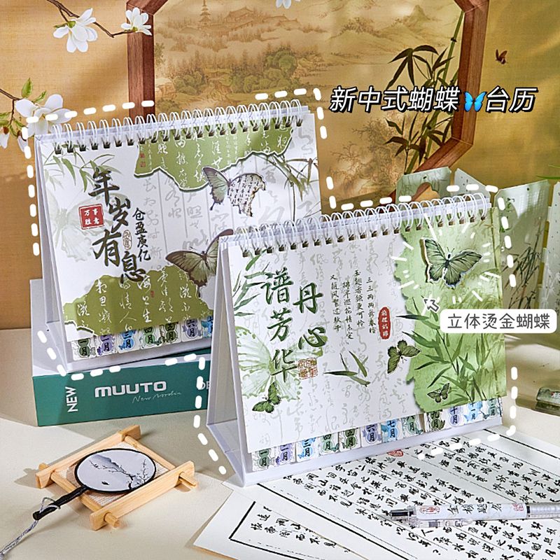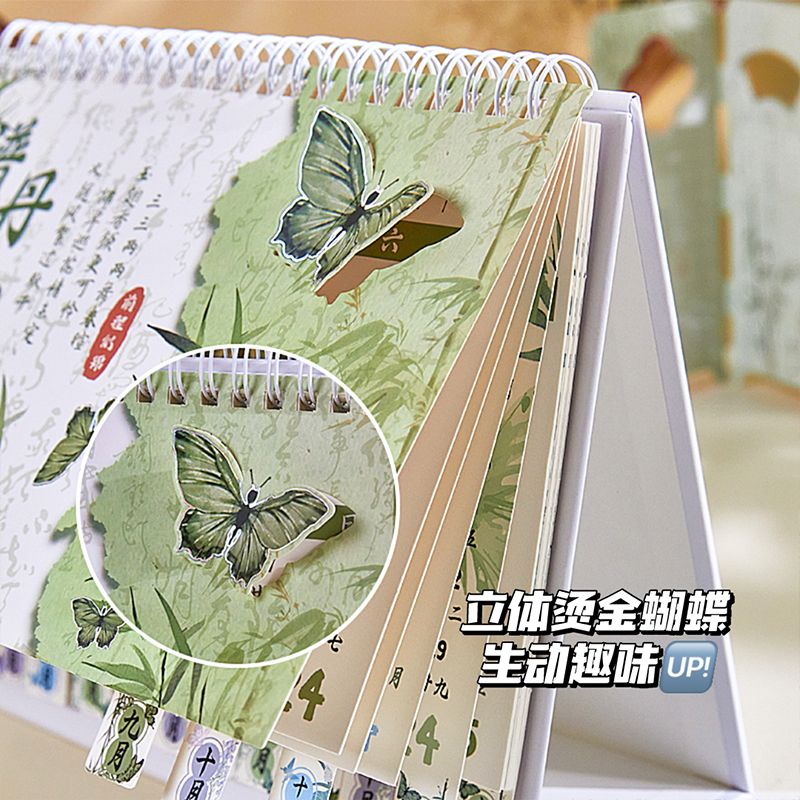 新中式蝴蝶2025年日历办公室高颜值创意桌面摆件国风记事本台历