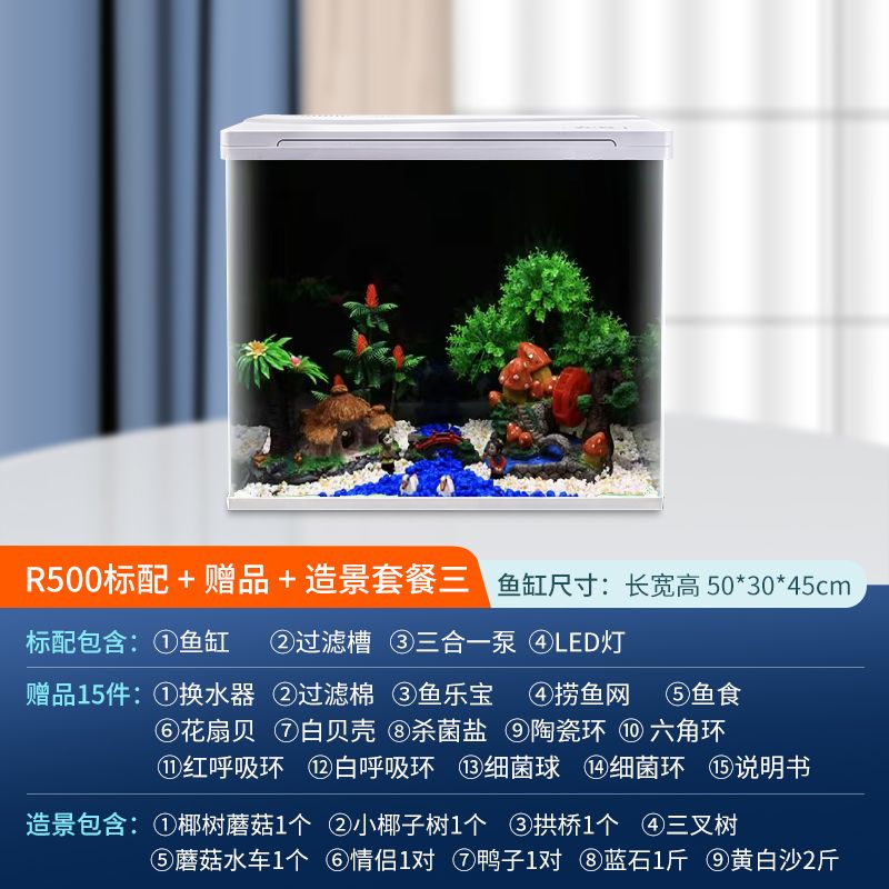 鱼缸水族箱小型家用桌面客厅玻璃鱼缸金鱼缸赖人鱼缸造景热带鱼缸