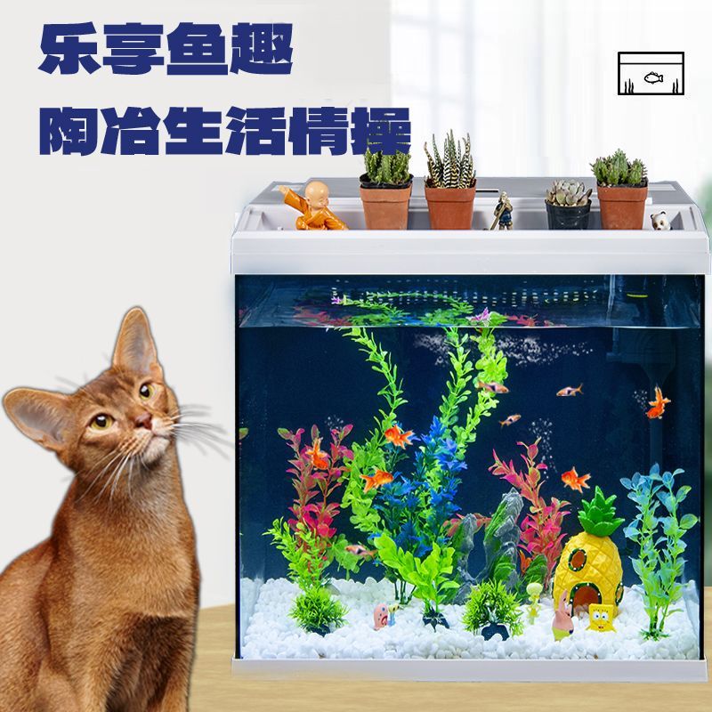 鱼缸免换水客厅金鱼缸家用懒人桌面玻璃造景创意生态中小型水族箱