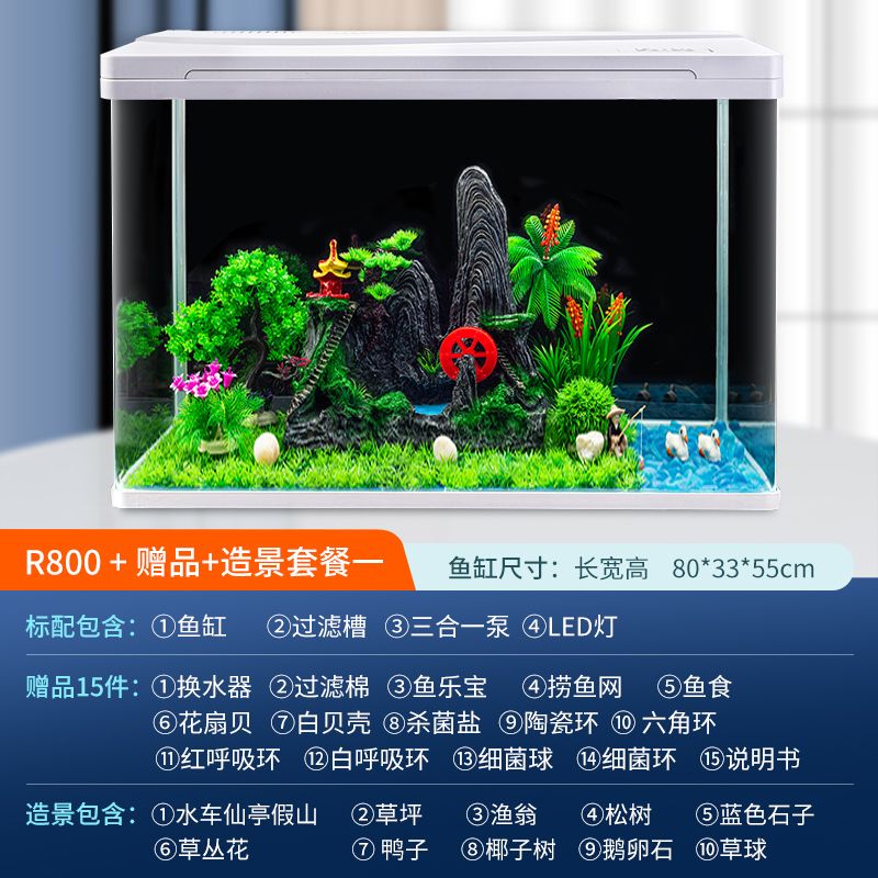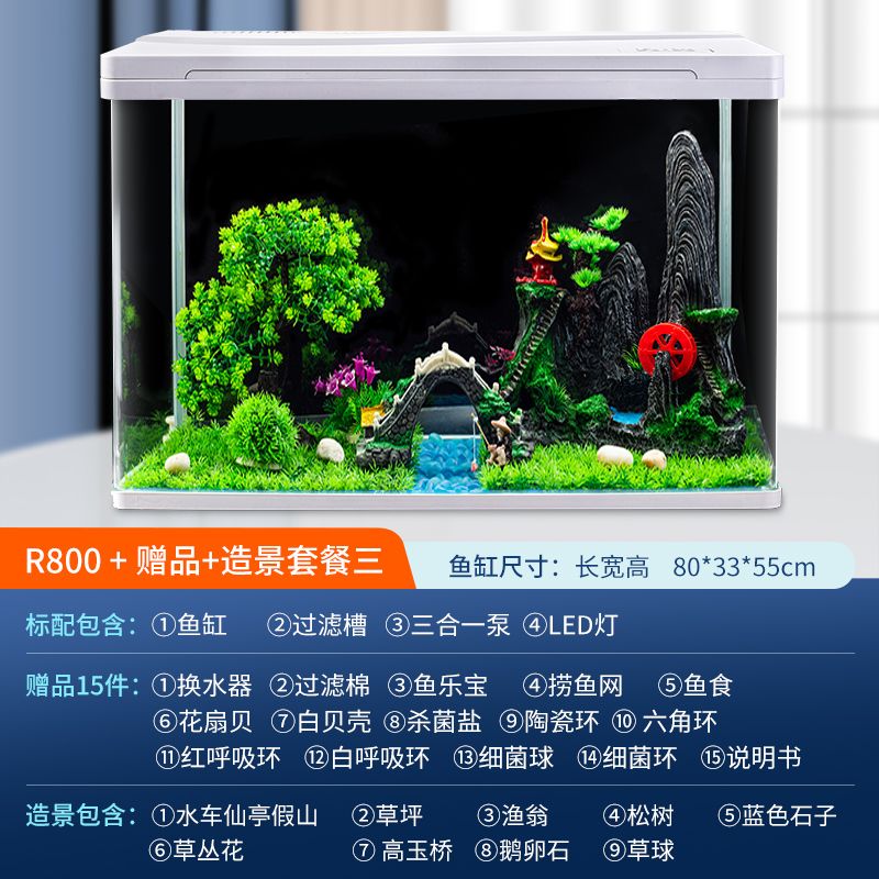 鱼缸水族箱小型桌面鱼缸玻璃鱼缸金鱼缸装饰造景客厅生态懒人鱼缸