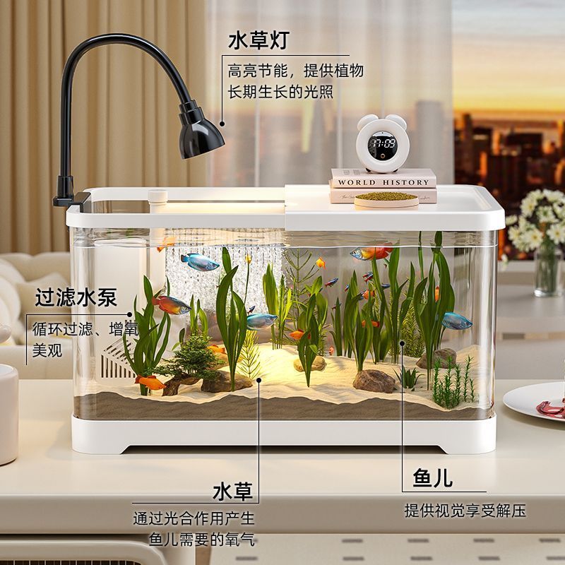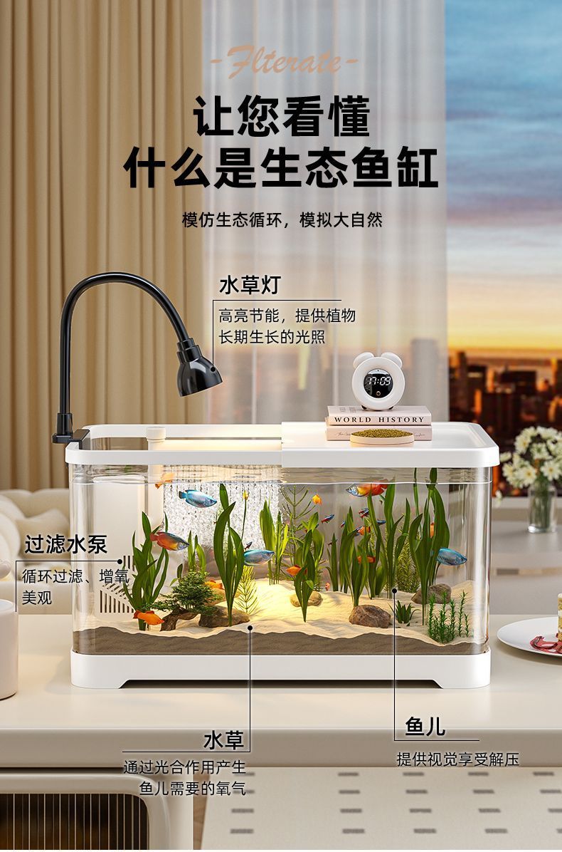 负压鱼缸悬浮中小型金鱼缸生态造景家用塑料客厅中小型桌面水族箱