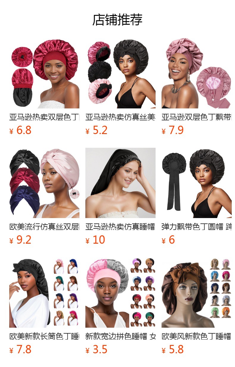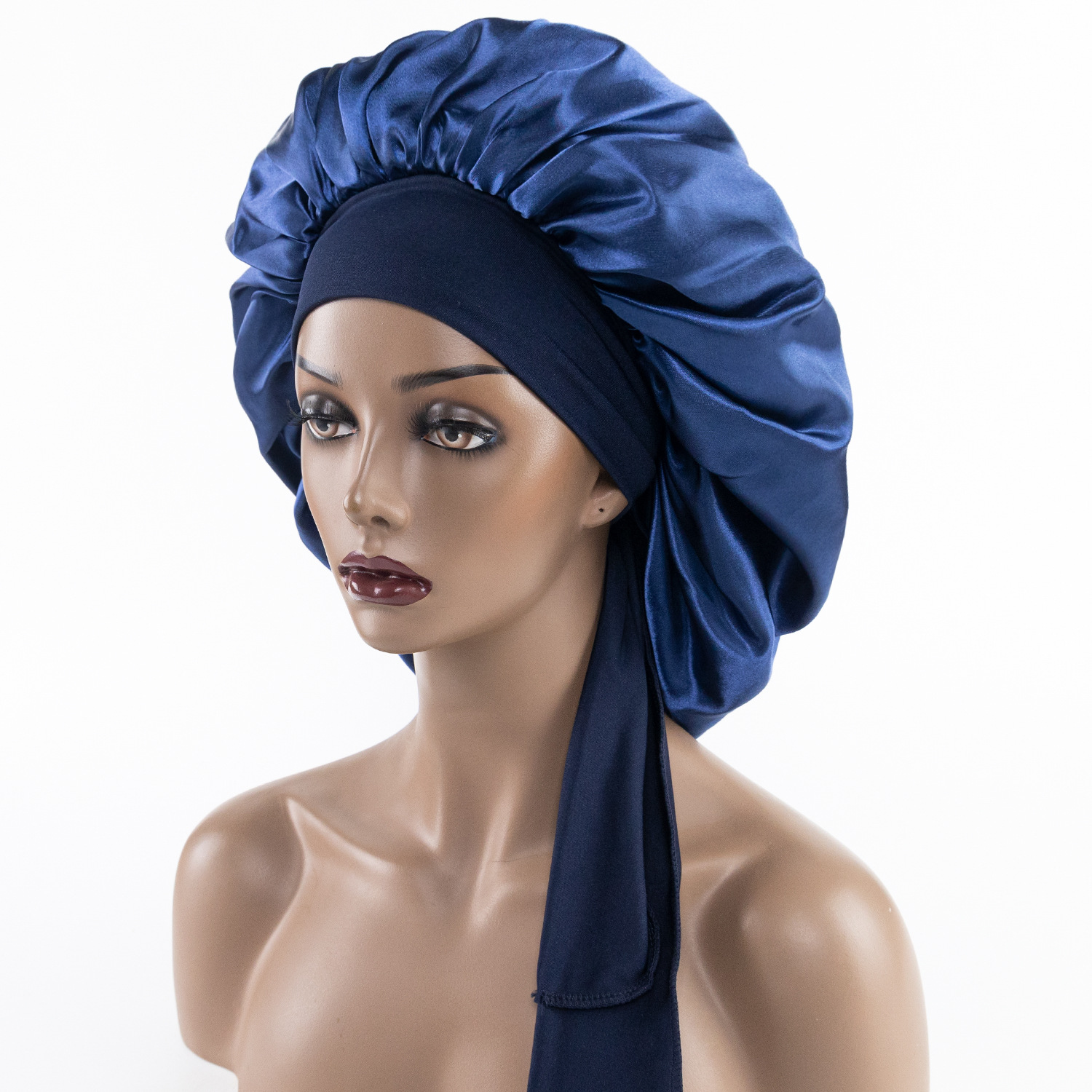 欧美风新款色丁睡帽 亚马逊热卖宽边长尾飘带大号圆帽一件代发
