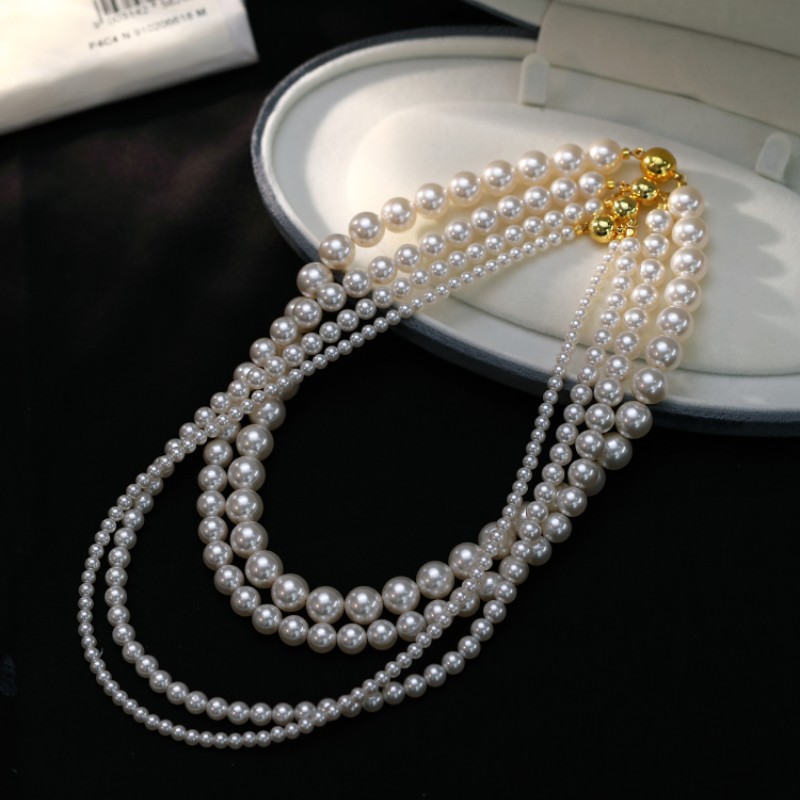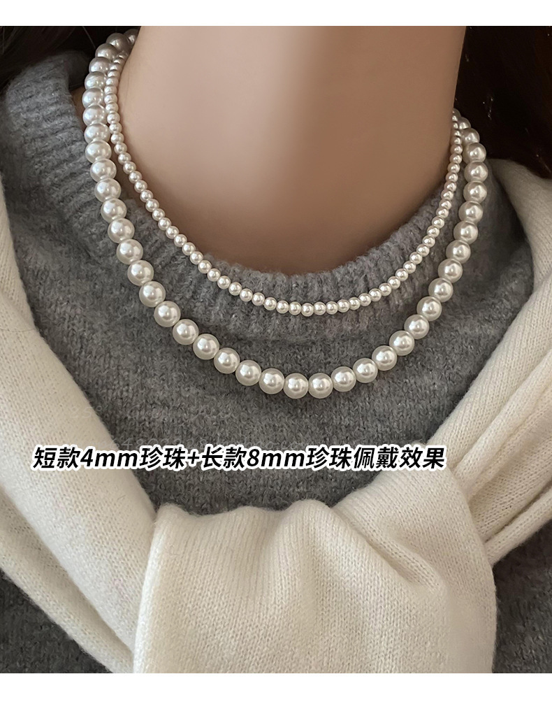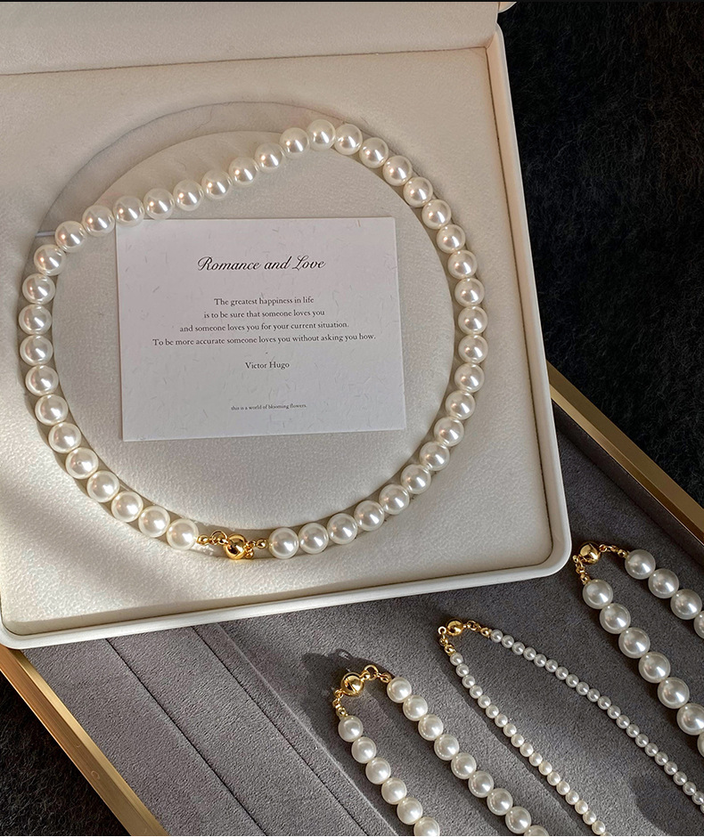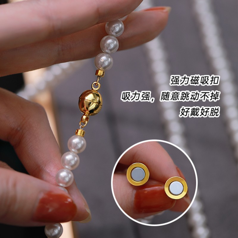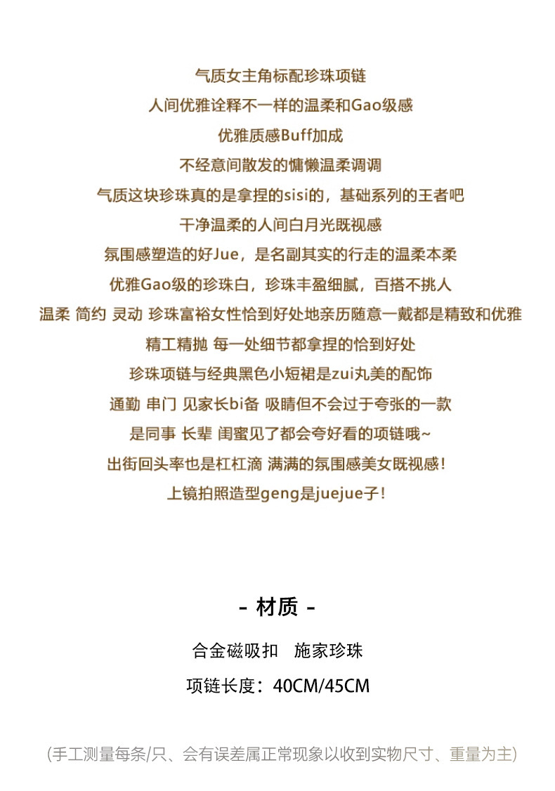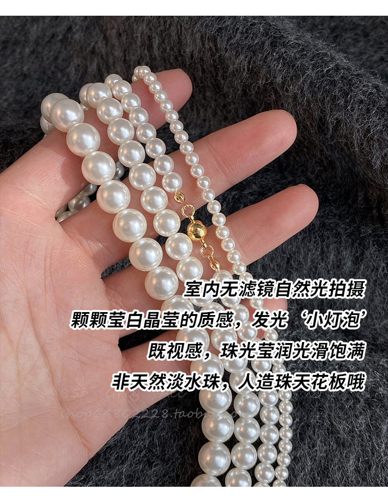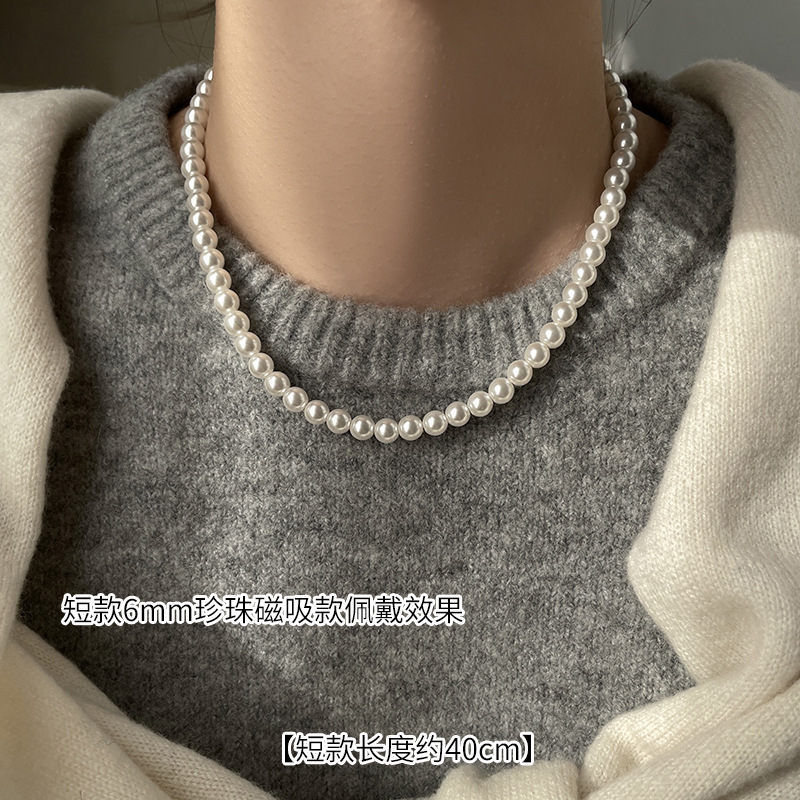 磁吸扣施家澳白色倪妮同款珍珠项链女毛衣链轻奢小众感颈链