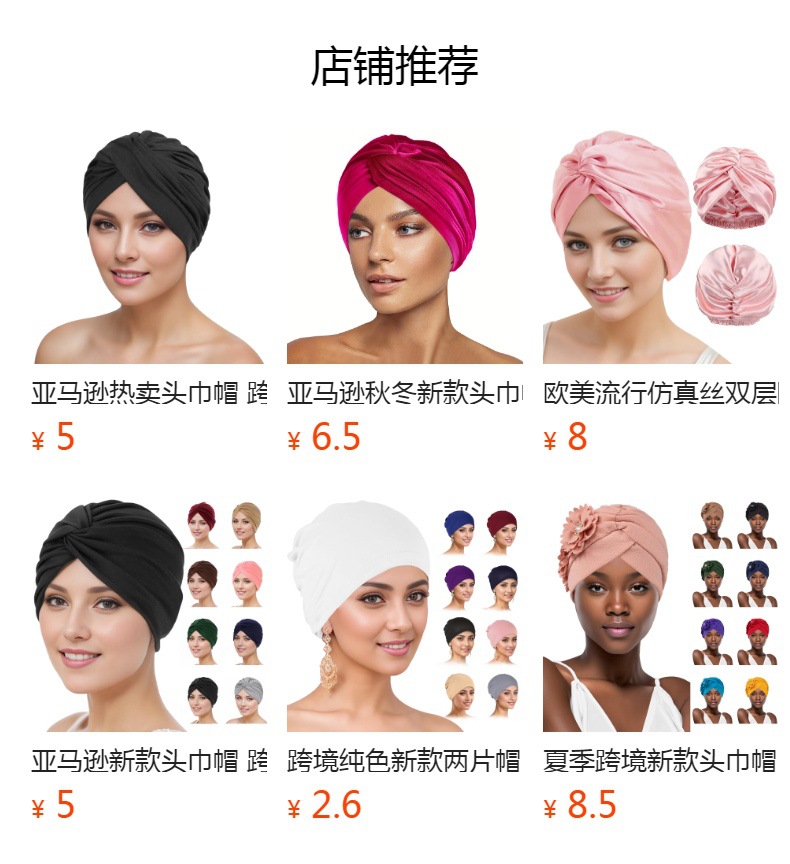 亚马逊新款头巾帽优质牛奶丝弹力百搭打底帽非洲多色发套一件代发