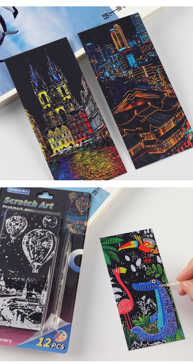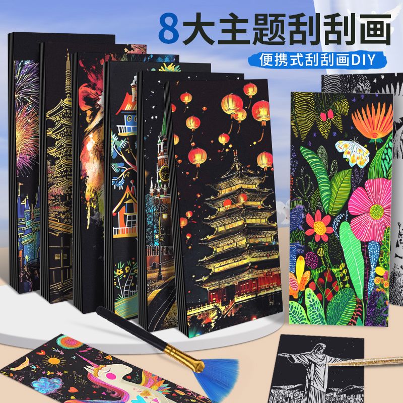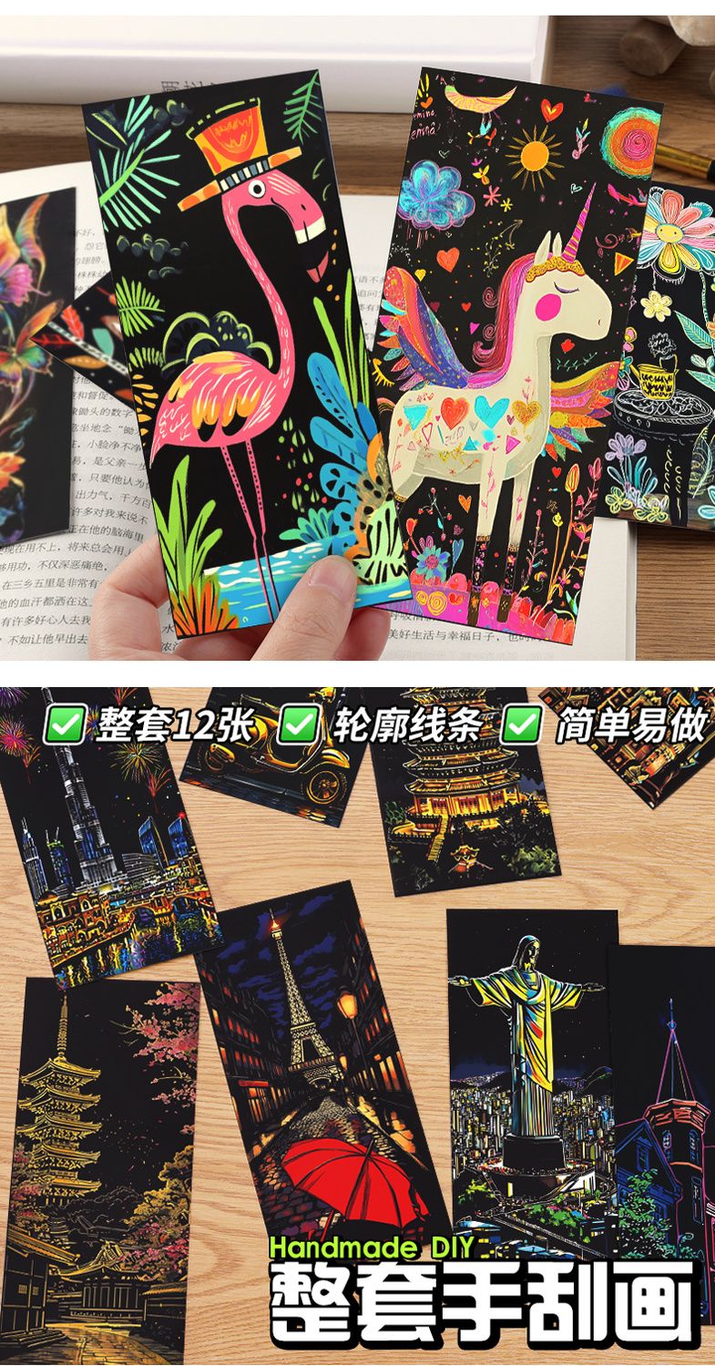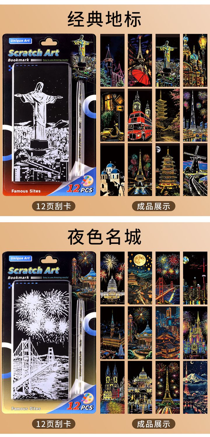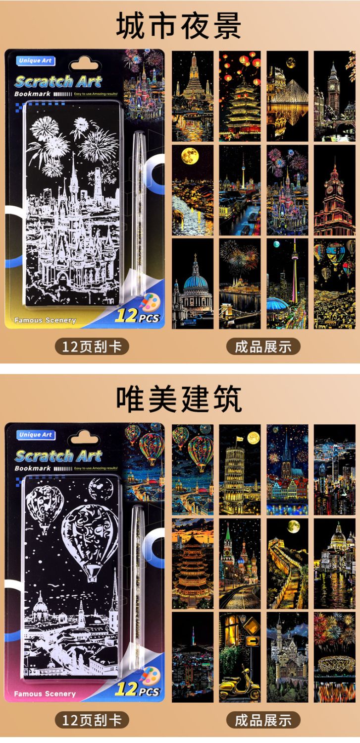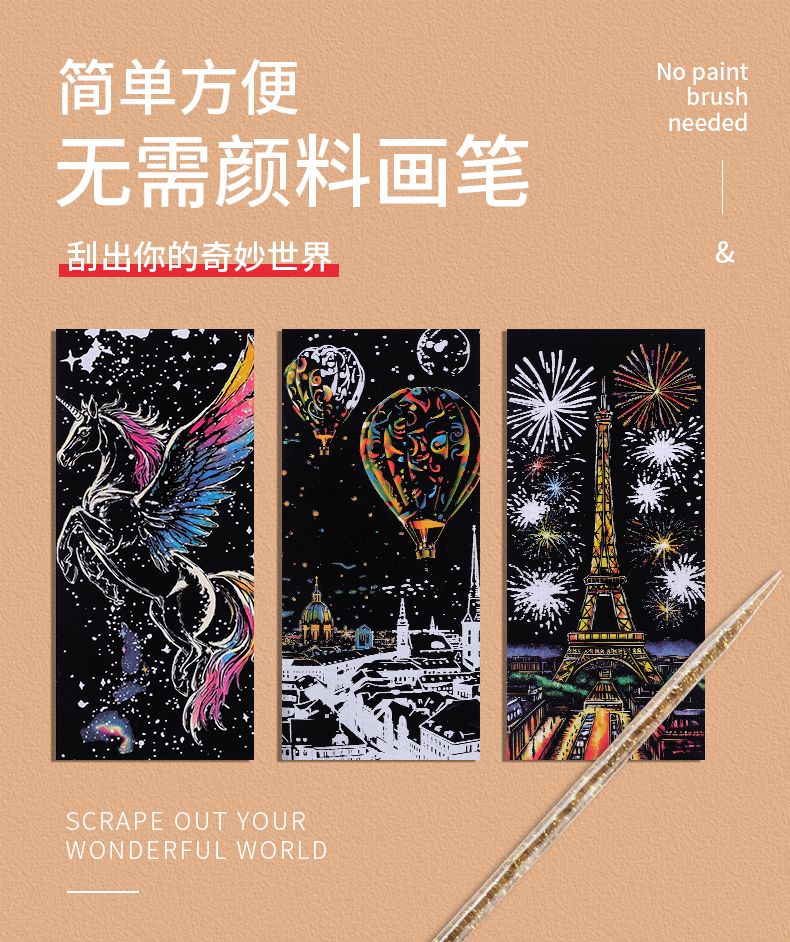 新款彩色刮画城市夜景炫彩画纸手工创意图案制作DIY礼物同款