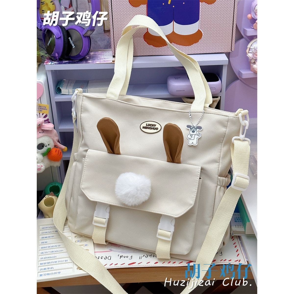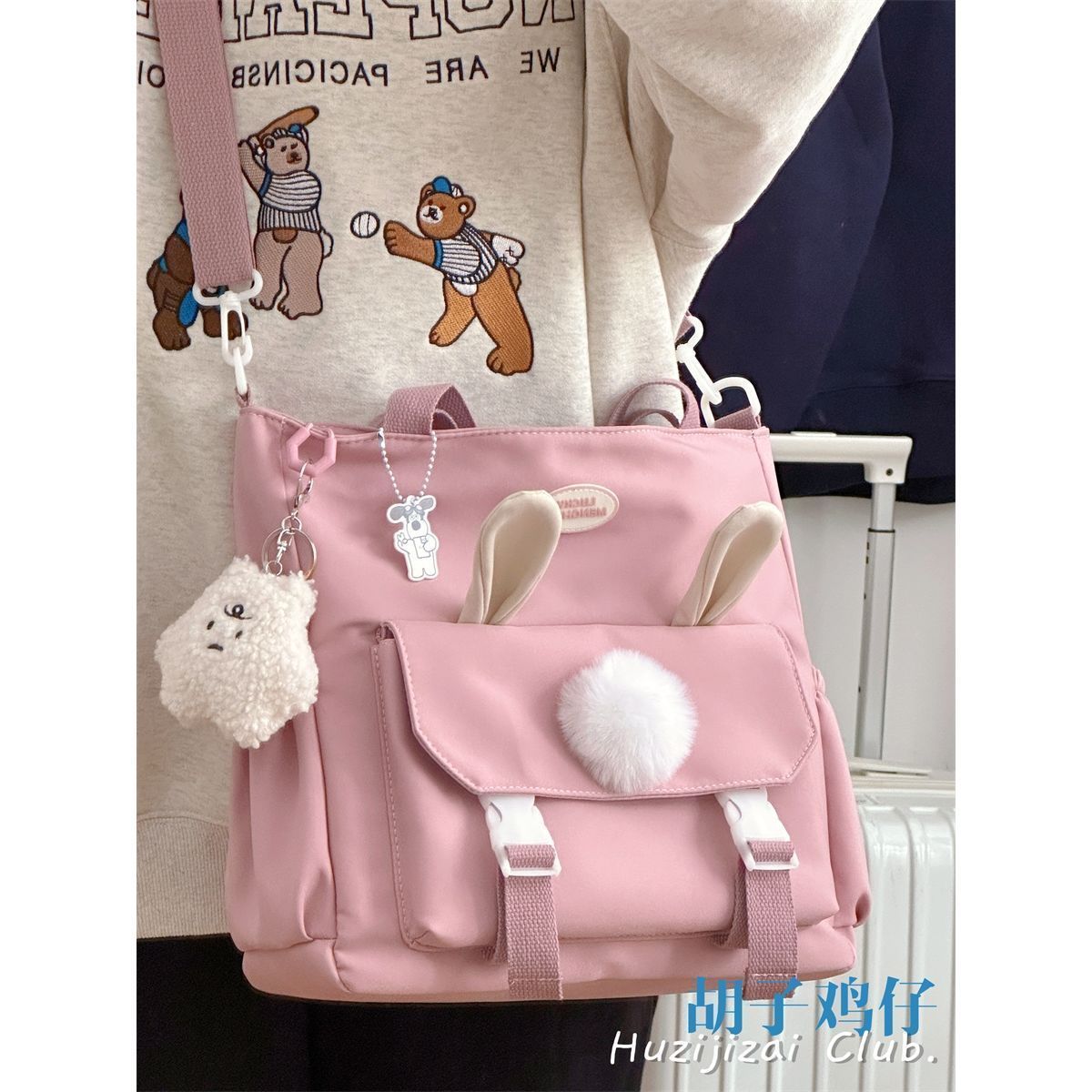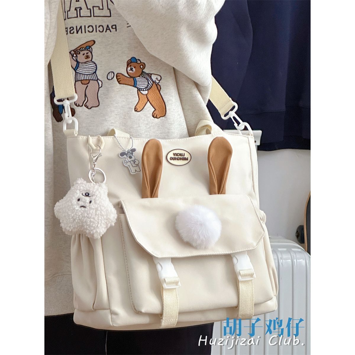 帆布包女斜跨包单肩手提原宿复古可爱ins学生布包女帆布袋斜跨潮