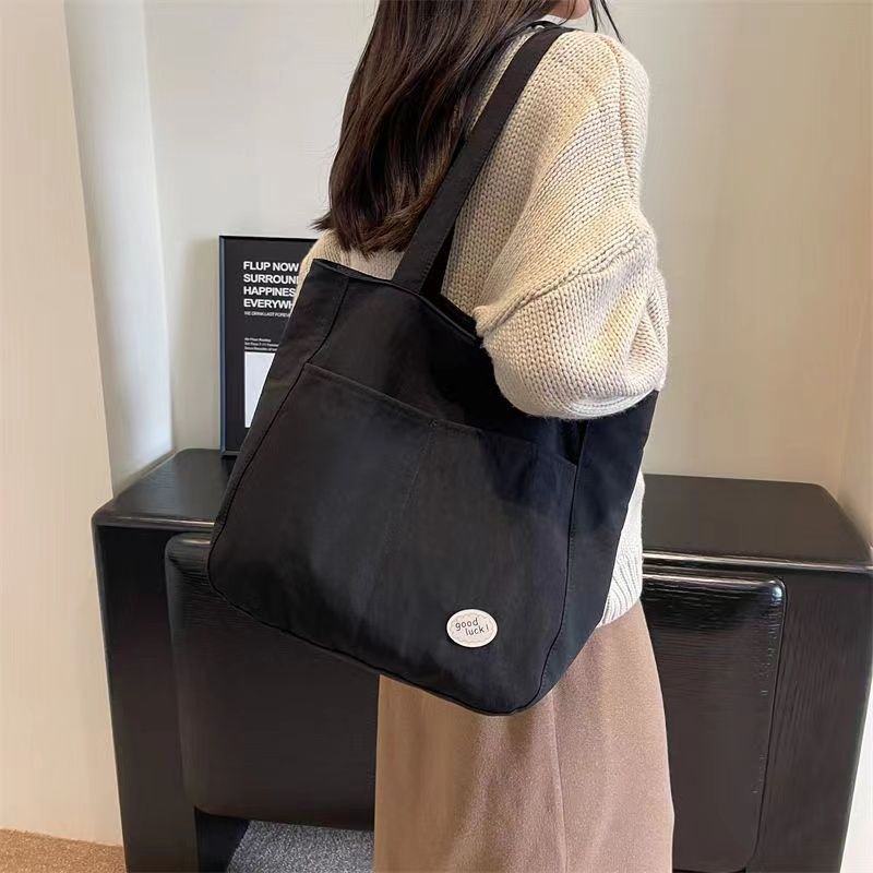 高级感帆布包包女大容量2024秋冬新款日系学生上课上班通勤单肩包