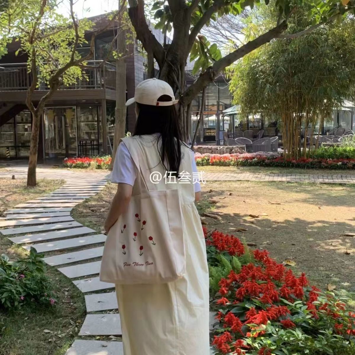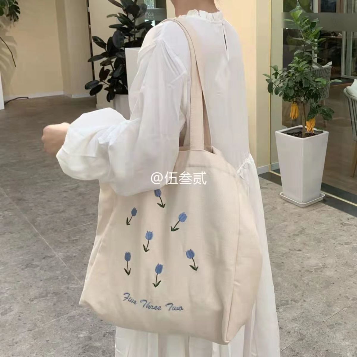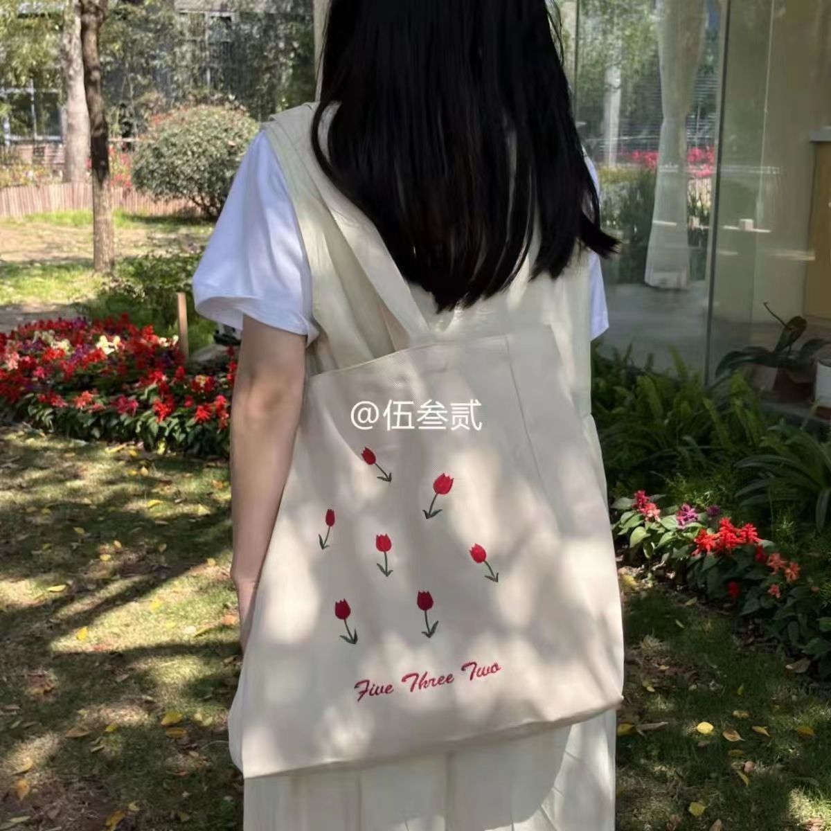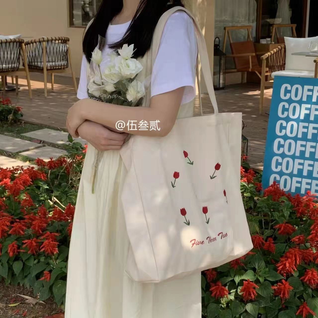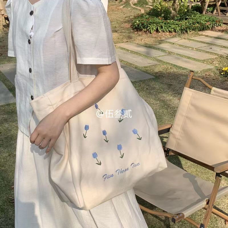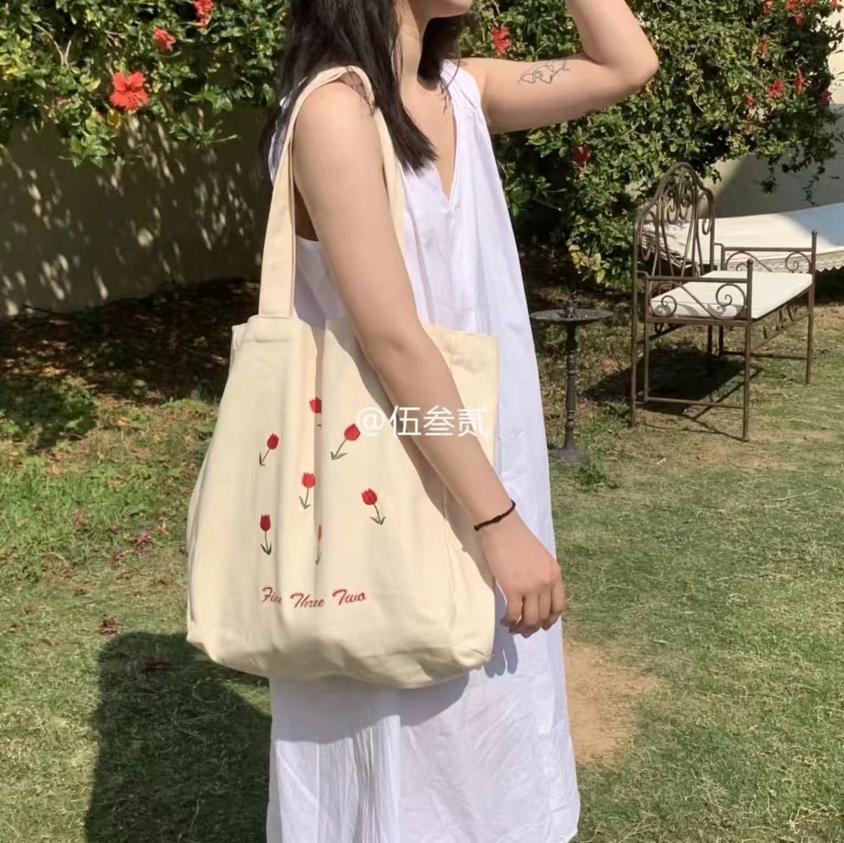 包包女2022新款ins百搭单肩文艺帆布包韩版大容量学生上课通勤包