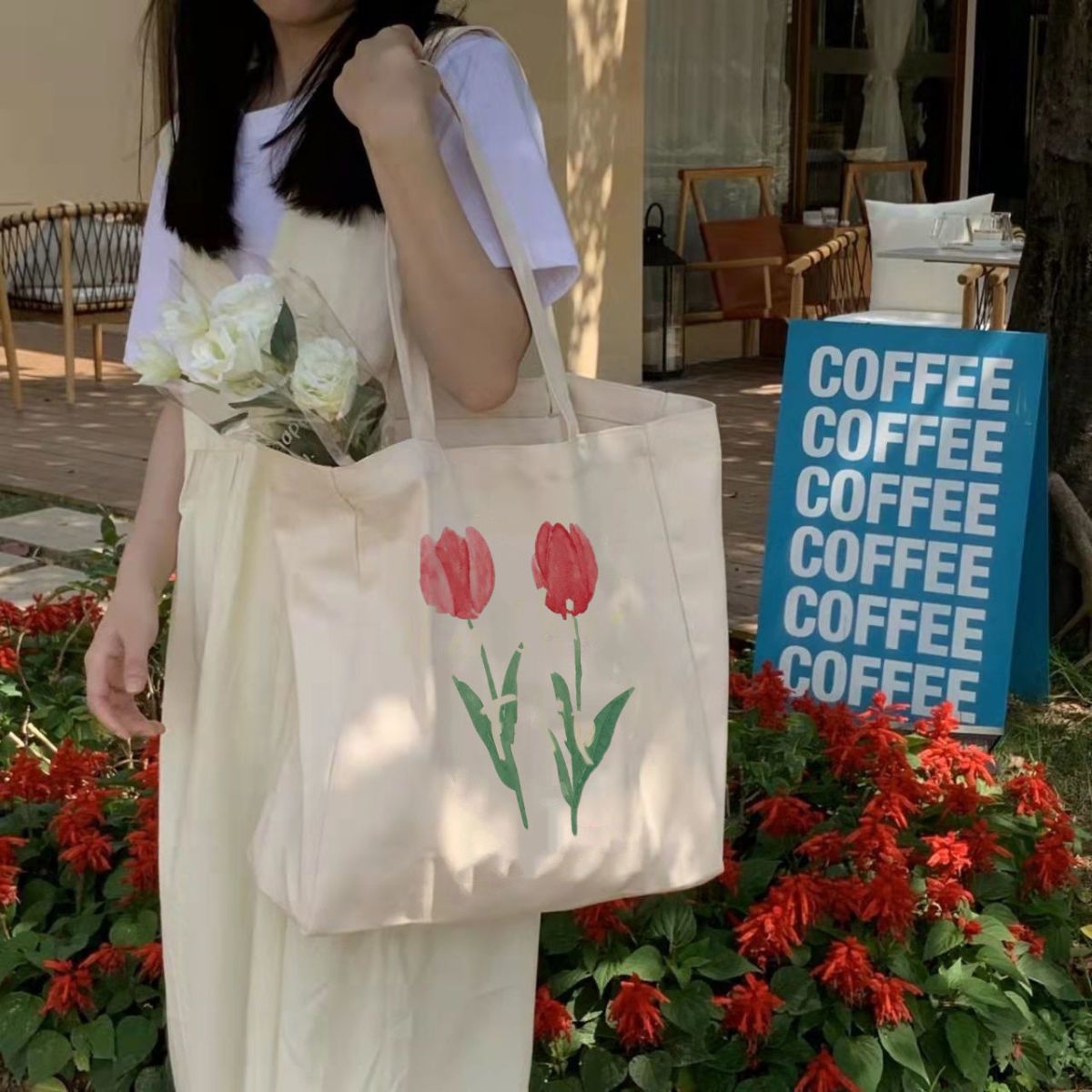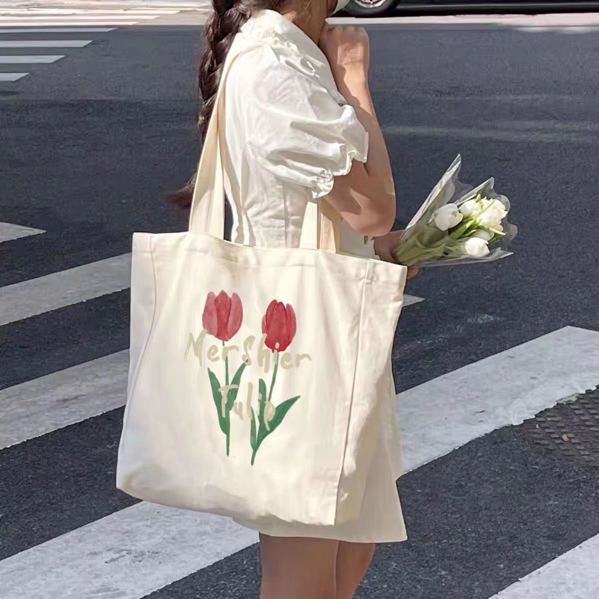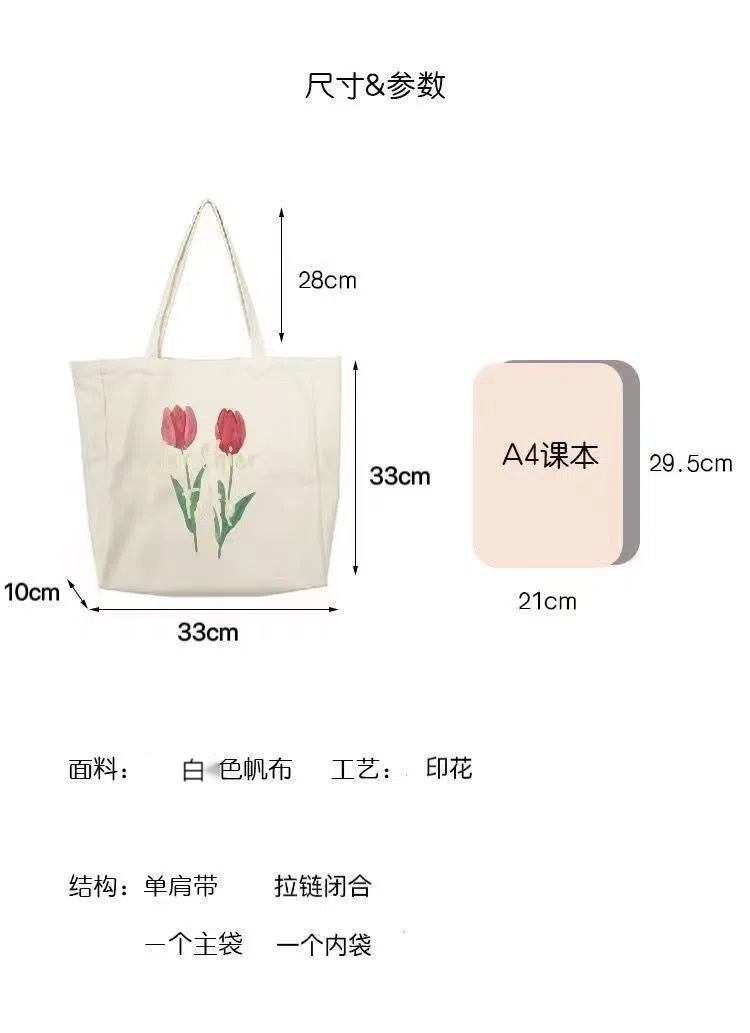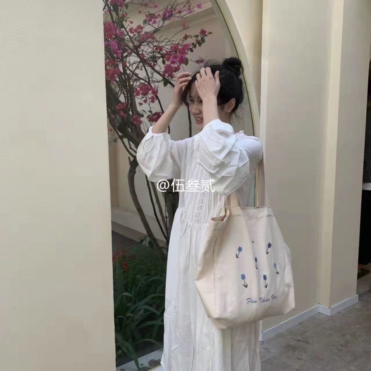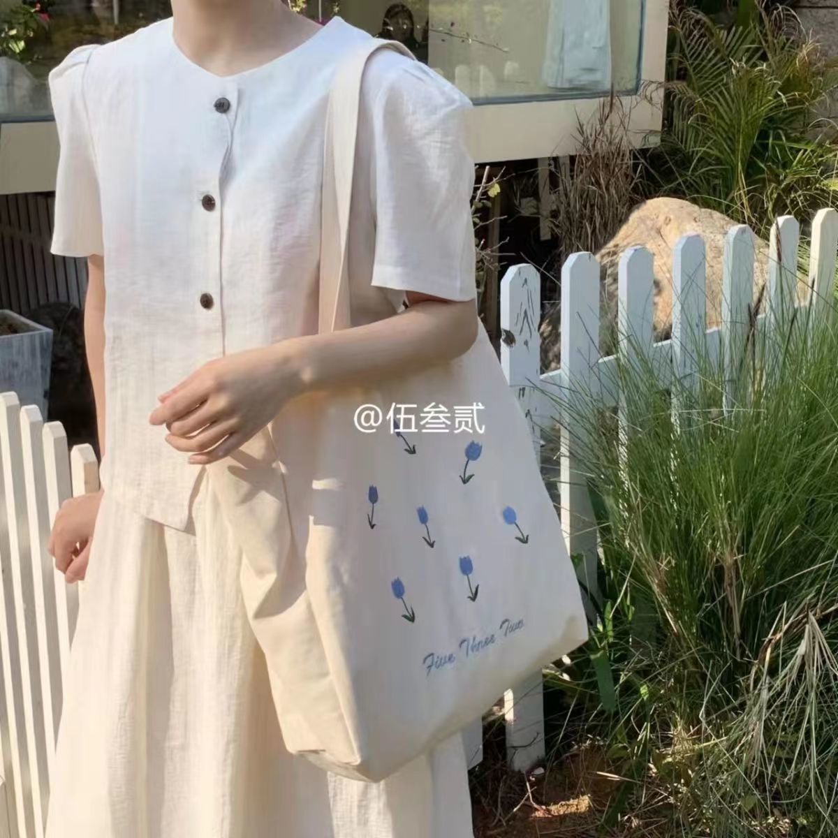 包包女2022新款ins百搭单肩文艺帆布包韩版大容量学生上课通勤包