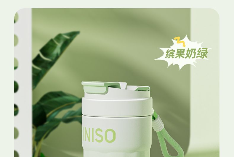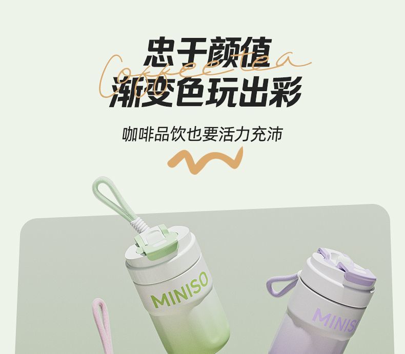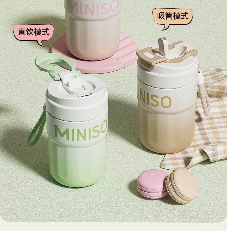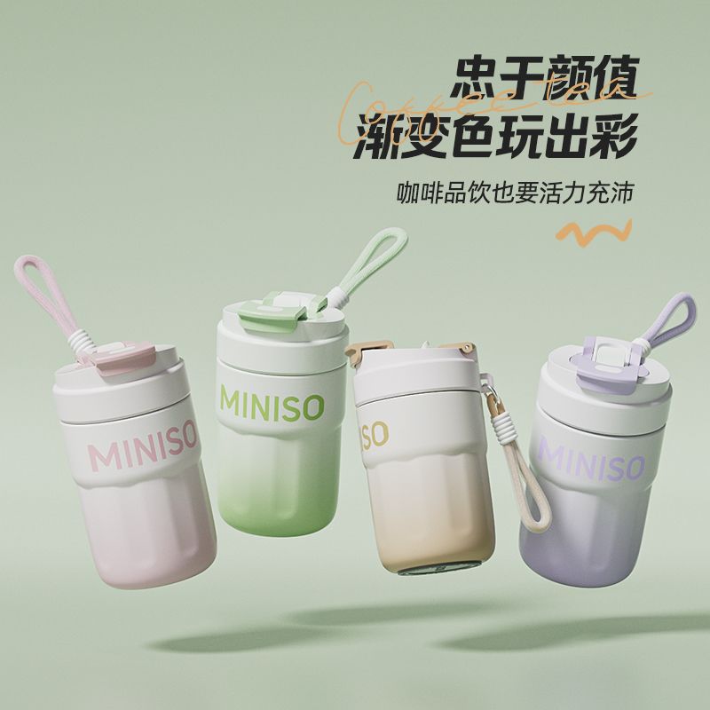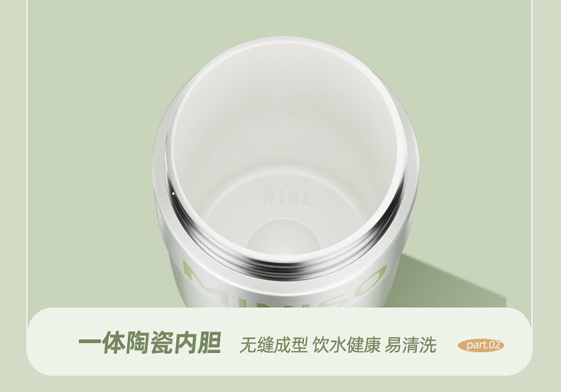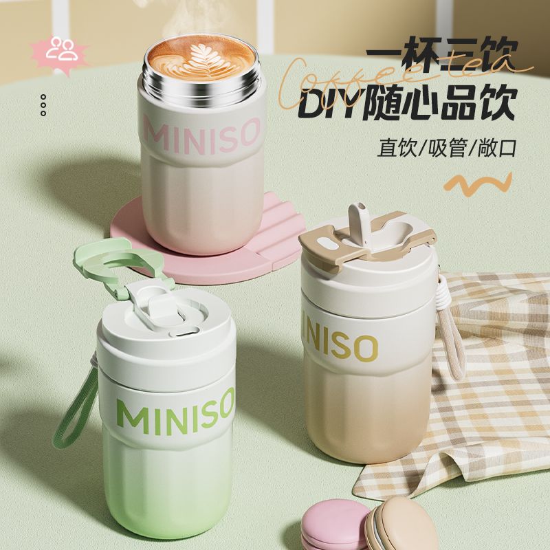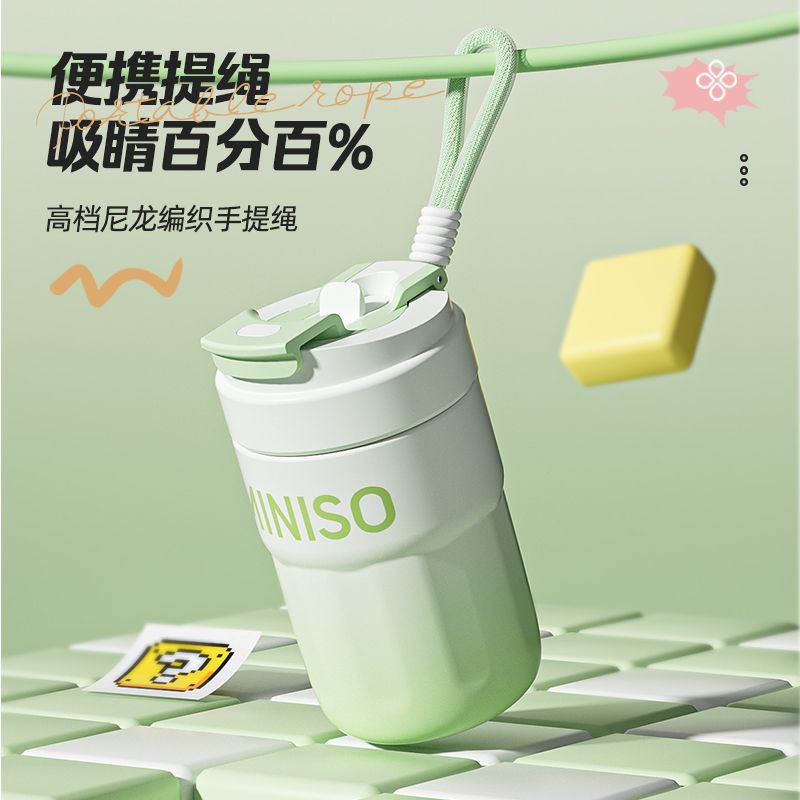 名创优品保温杯陶瓷内胆咖啡杯2024新款水杯女316L吸管杯子男便携