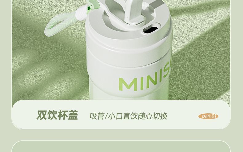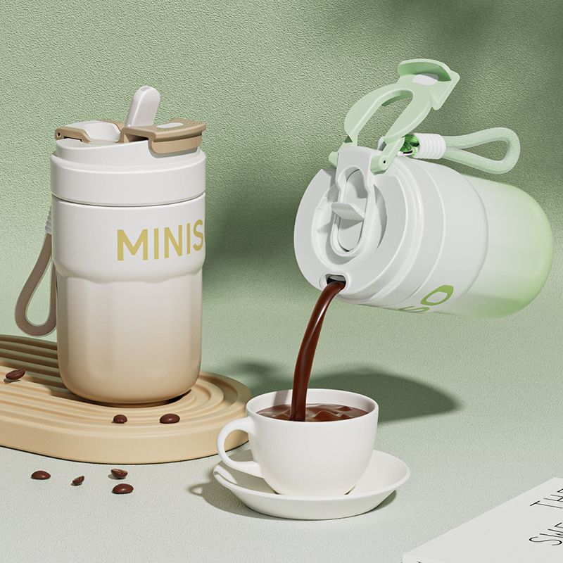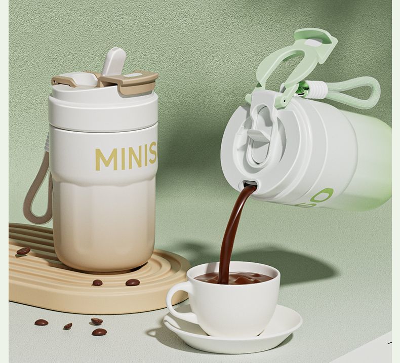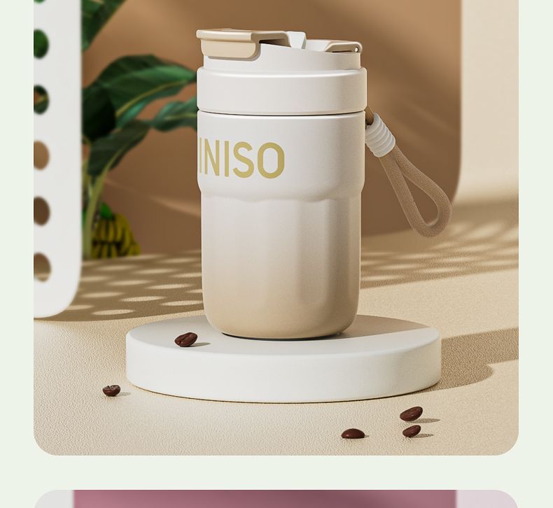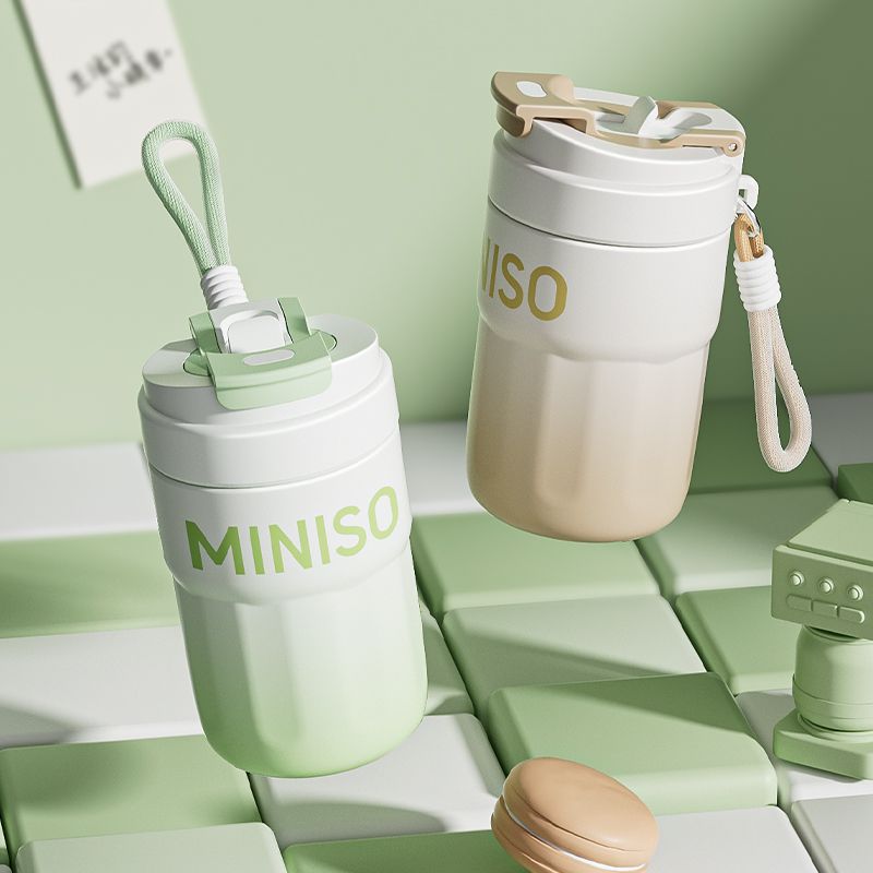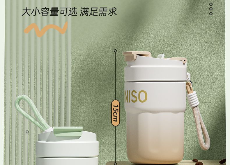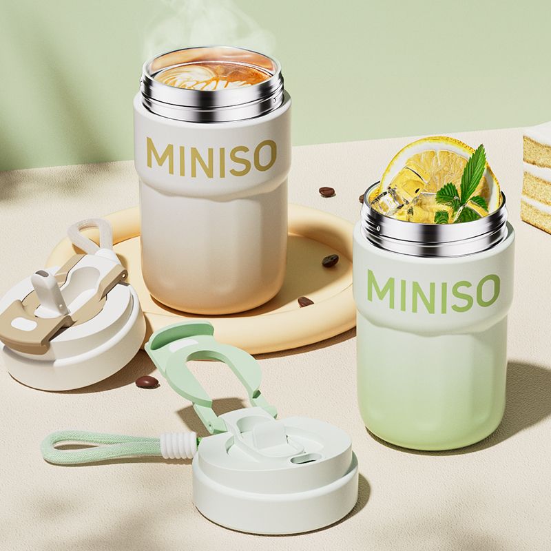 名创优品保温杯陶瓷内胆咖啡杯2024新款水杯女316L吸管杯子男便携