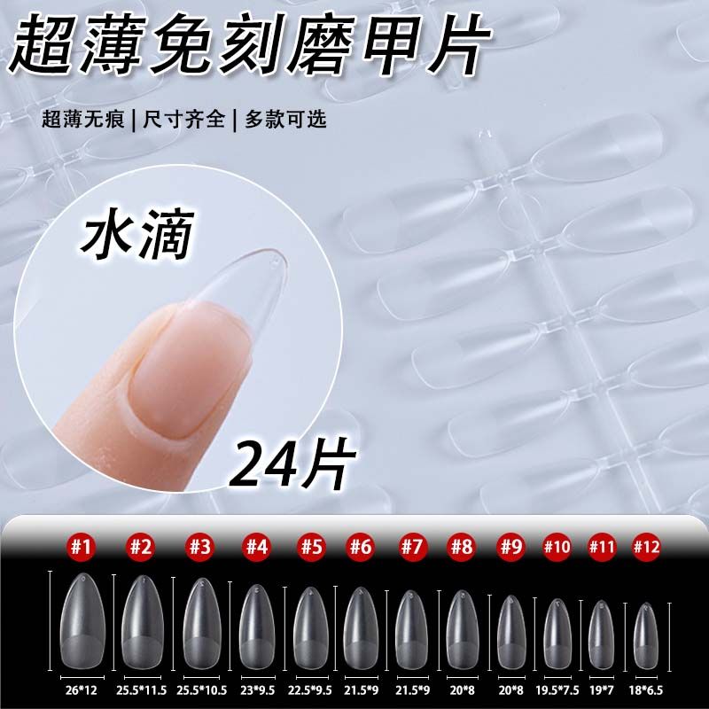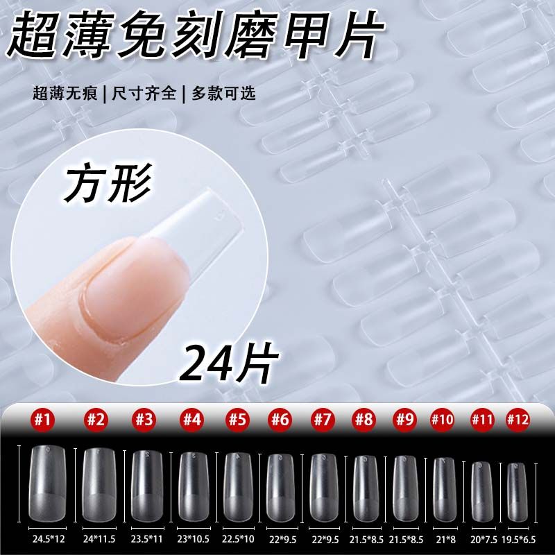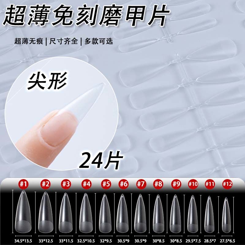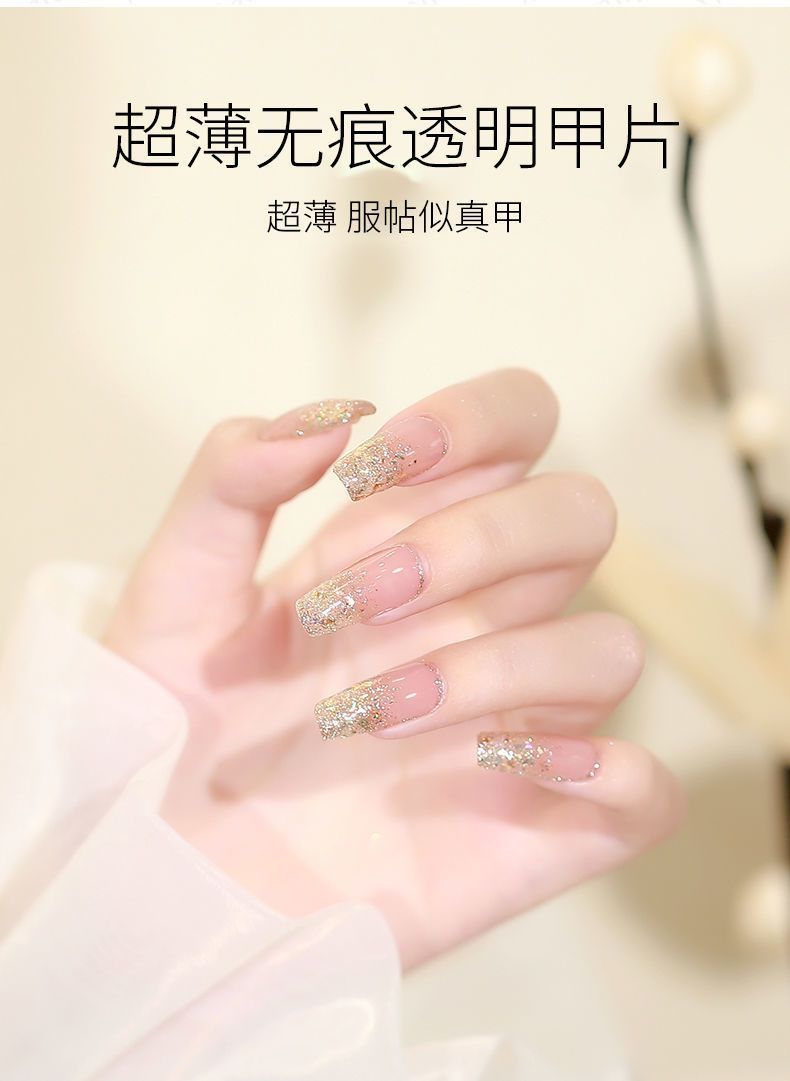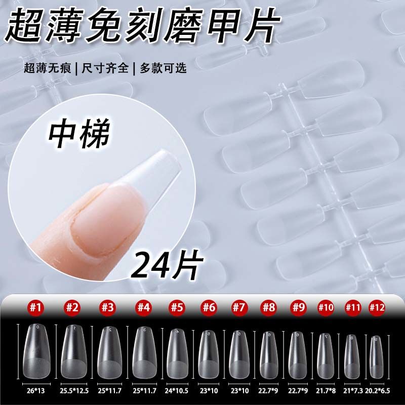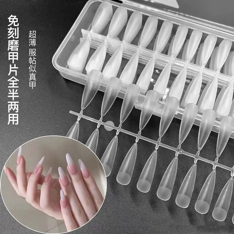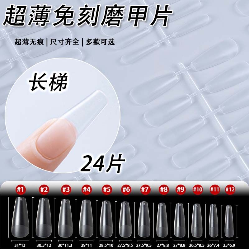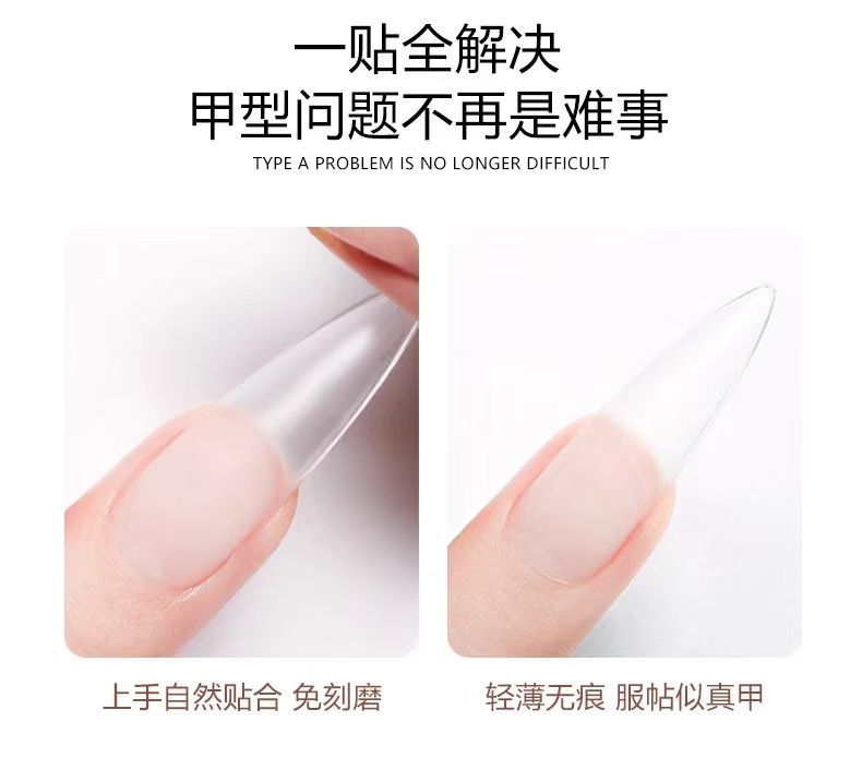 超轻薄美甲甲片延长甲中指甲长款超薄无痕透明磨砂免刻全贴半贴